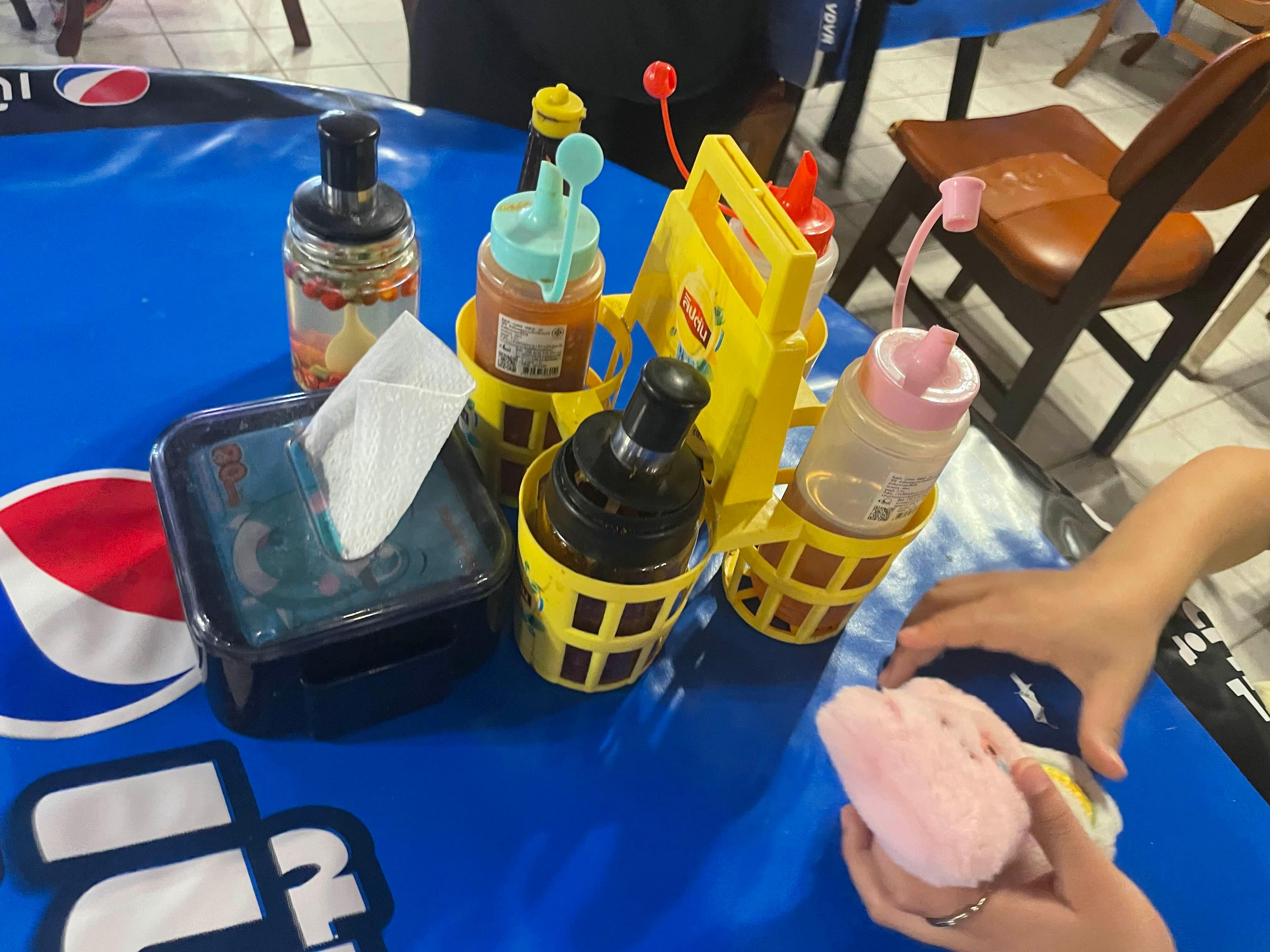 기본 25밧 주문하려고 했지만.... 거스름돈 5밧... 관리가 안되어서, 30밧(1,200원) 돼지고기가 들어있는 오믈렛으로 주문!