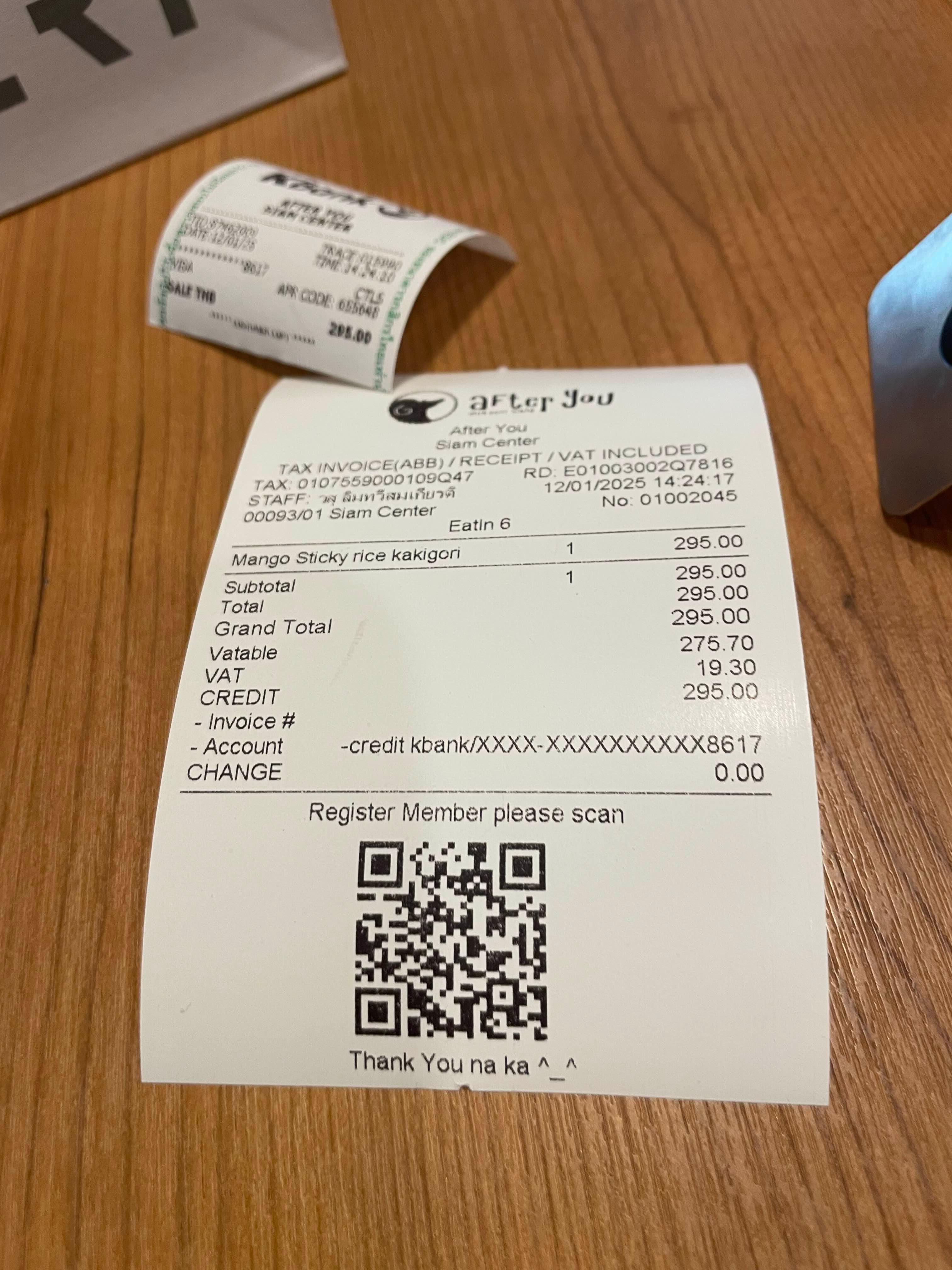 음.... 망꼬빙수 가격이.. 아기사이즈가 205바트, 기본 사이즈가 285바트!! 아따 비싸네