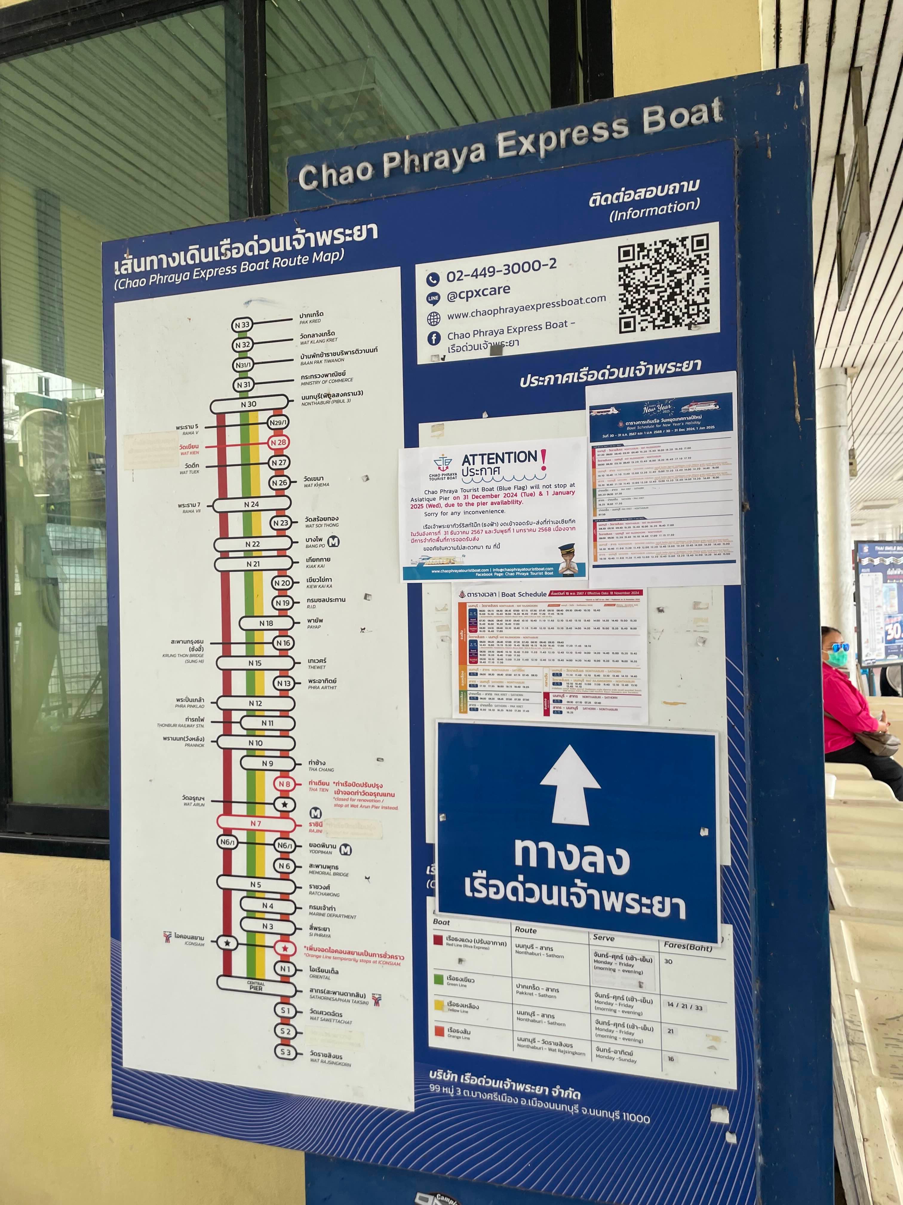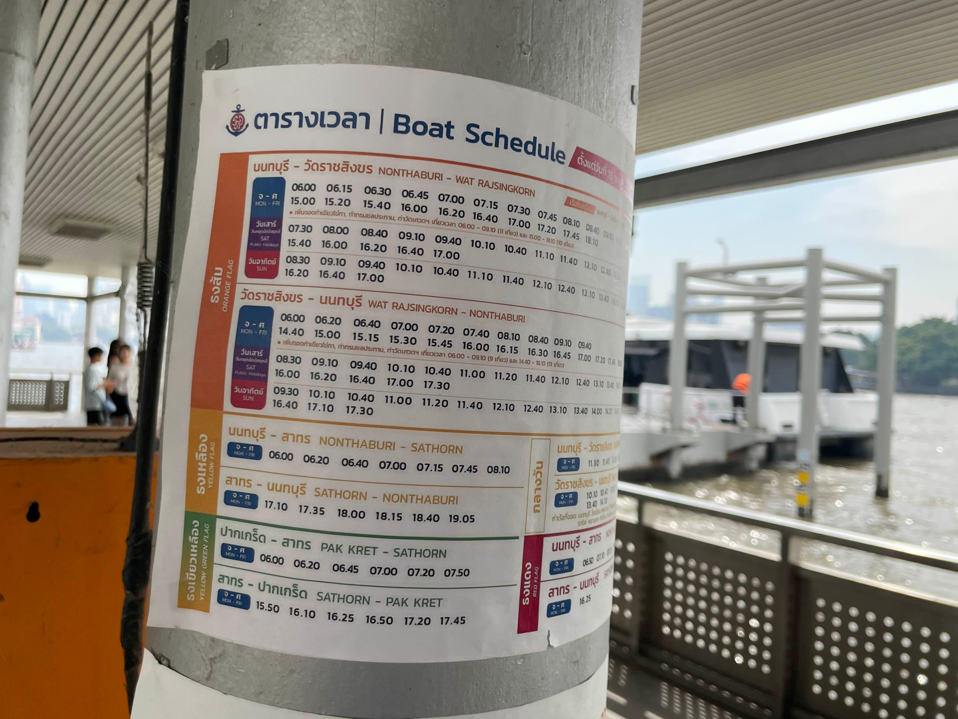 Chao Phraya Express Boat operates daily in different lines including Orange, Yellow, Green, and Red Lines.