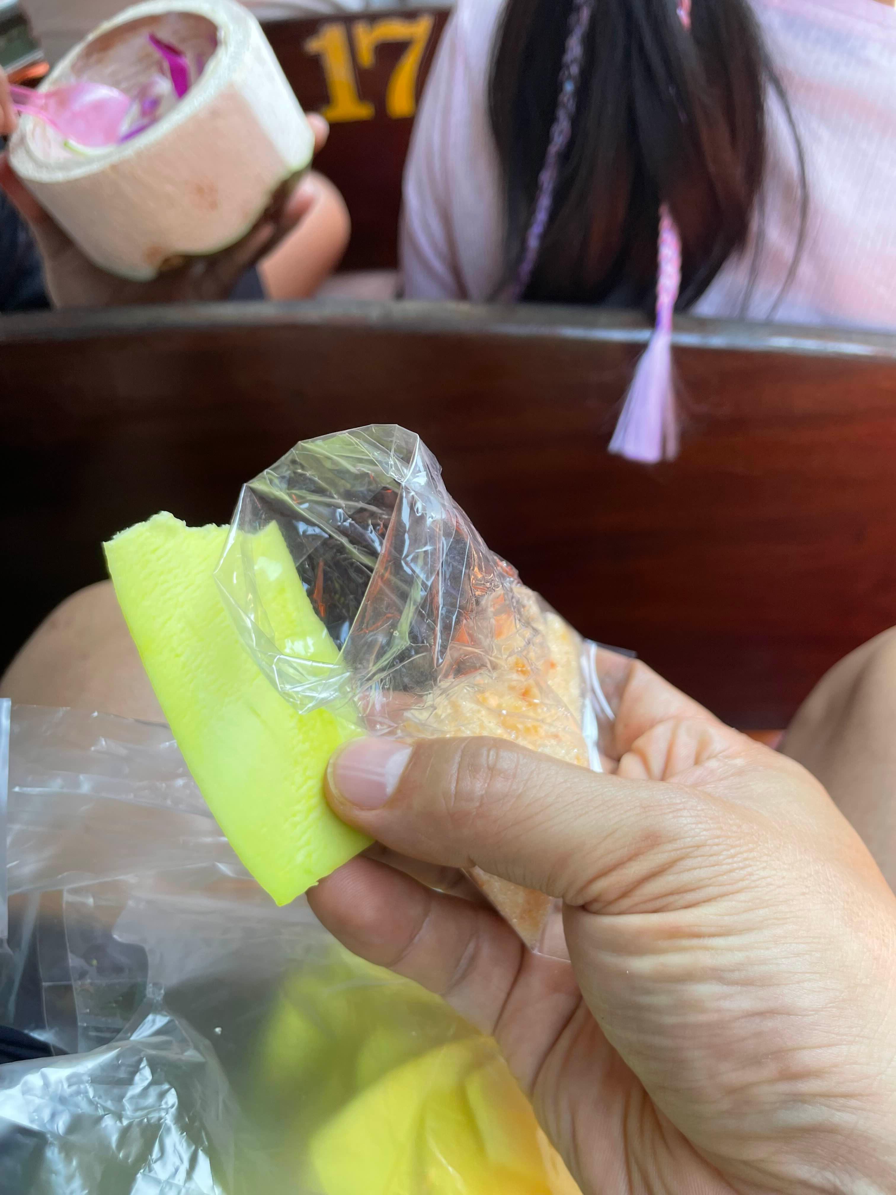 익은 망고가 아닌, 푸른 망고를 소스(설탕+소금)에 찍어 먹는 스타일!!
