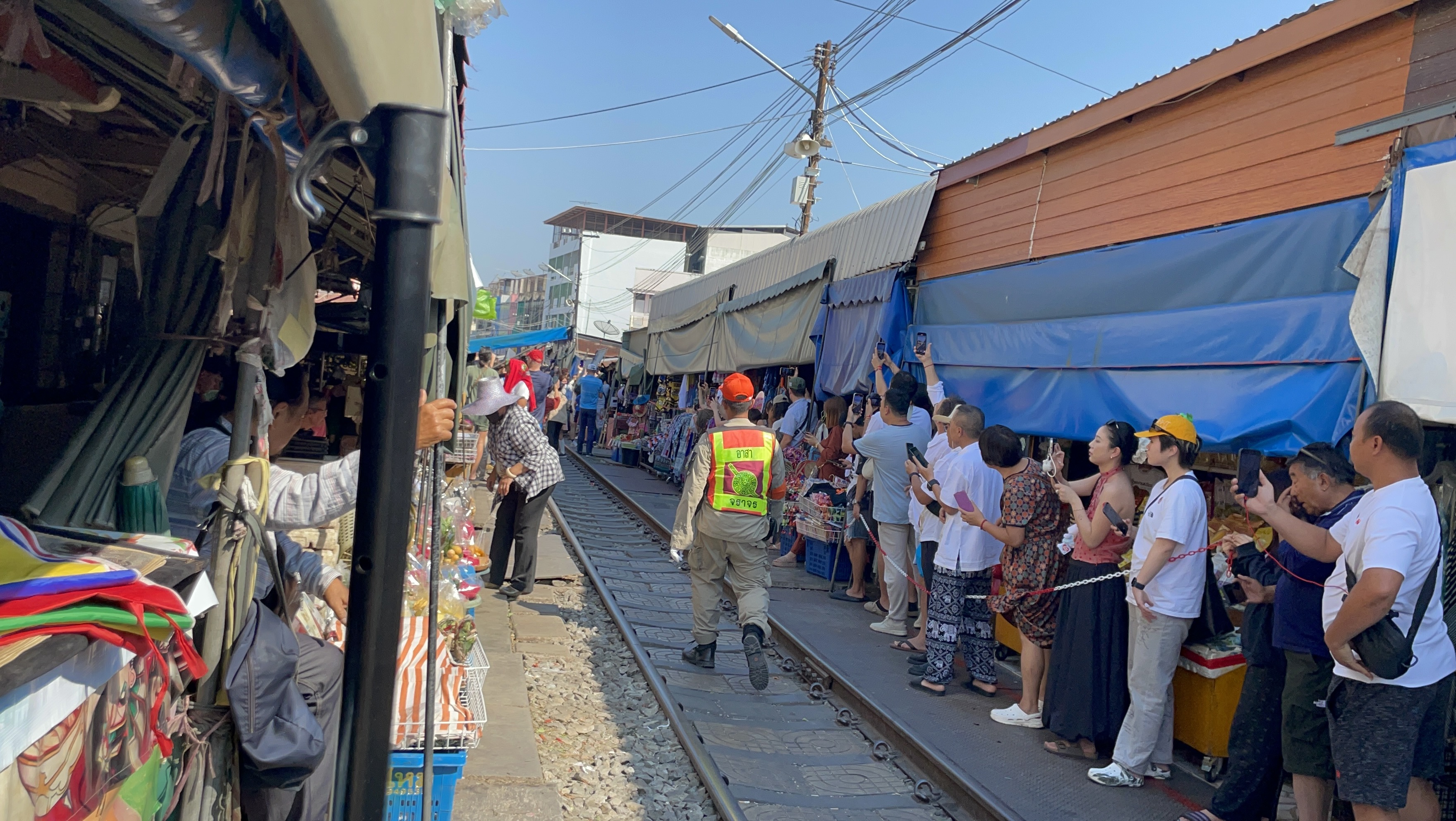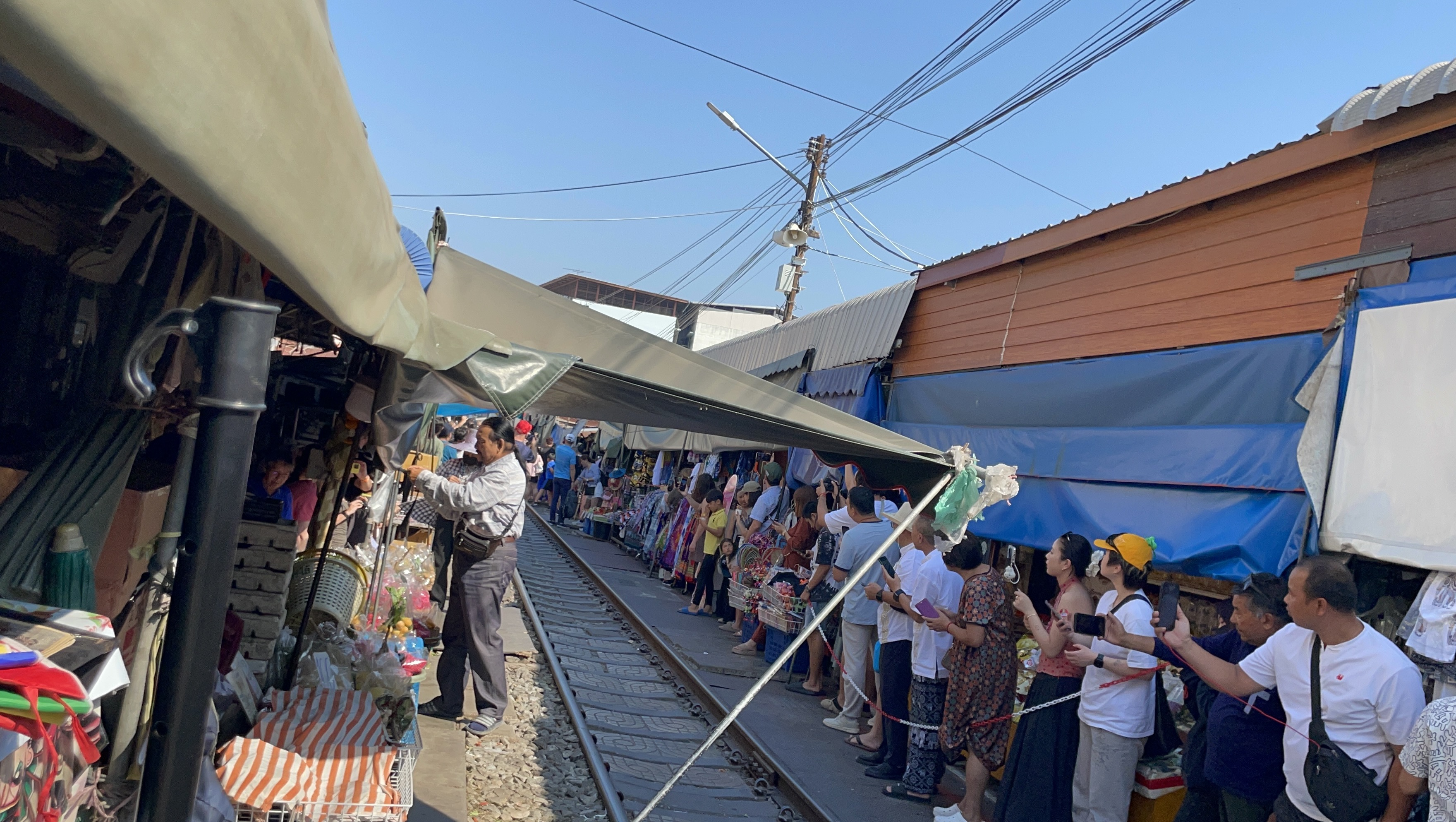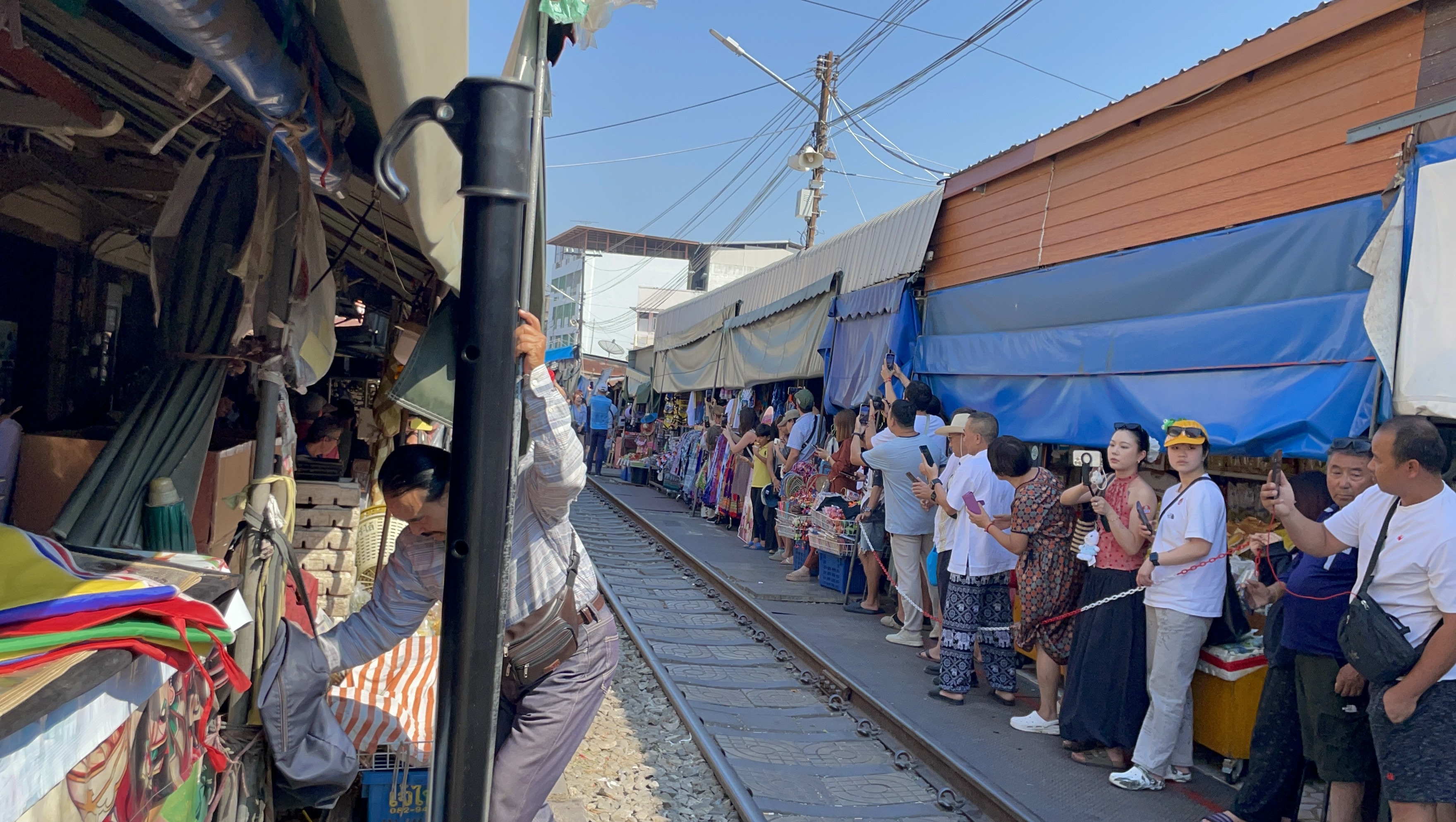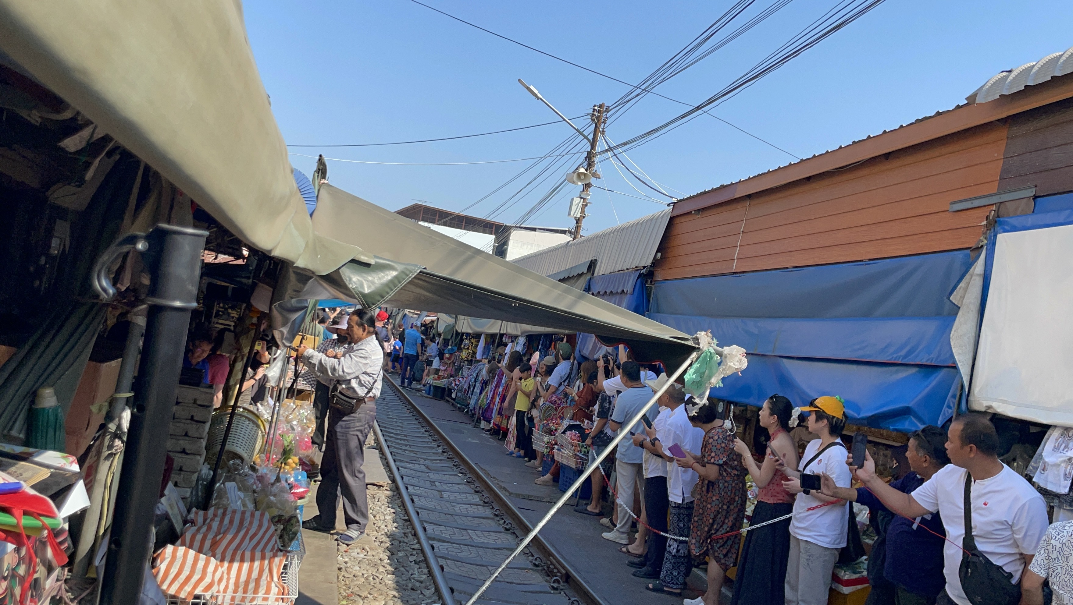기찻길에 도착하면.... 기차가 지나가는 양쪽으로 대기하는 사람들이 많다.