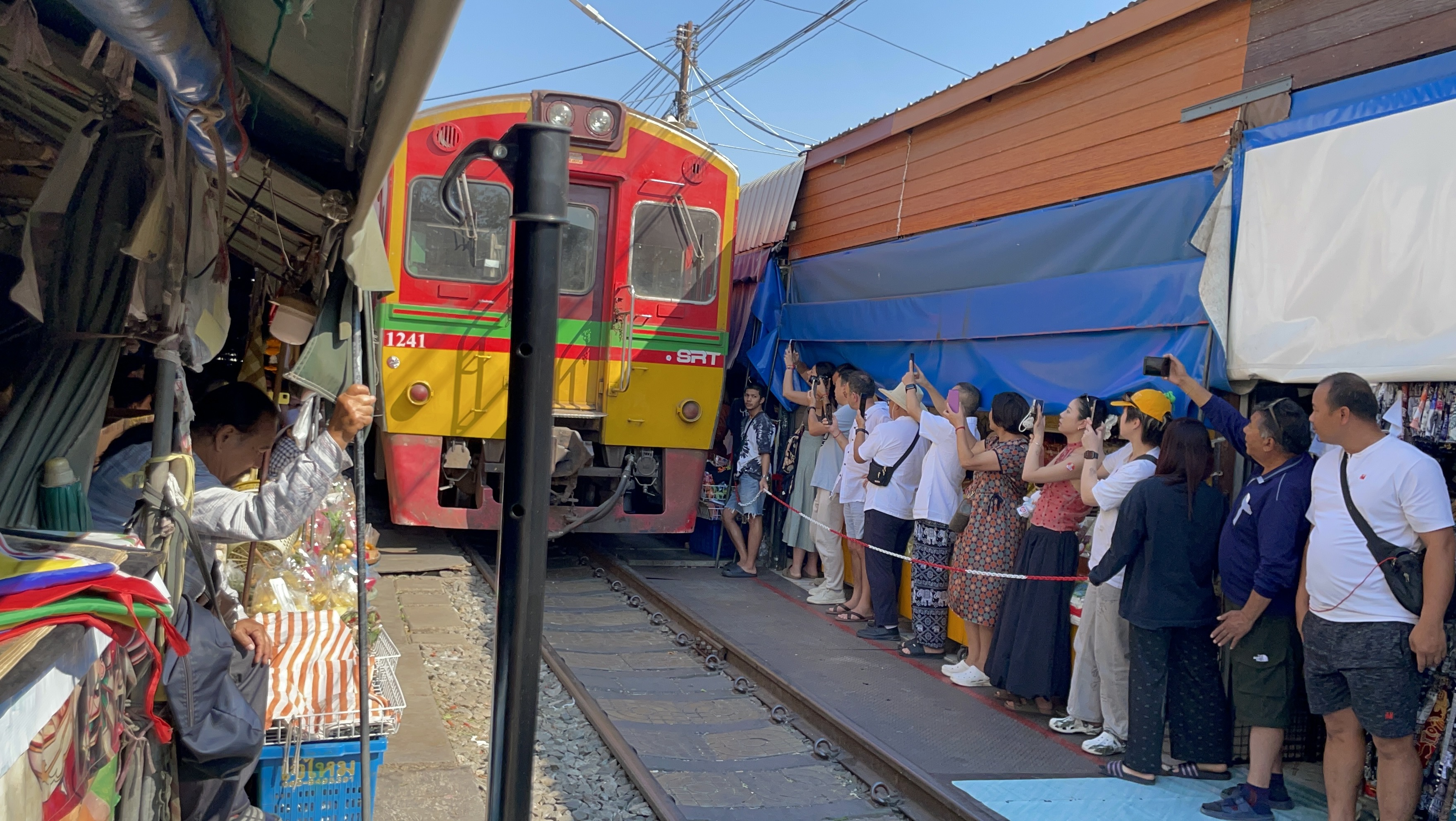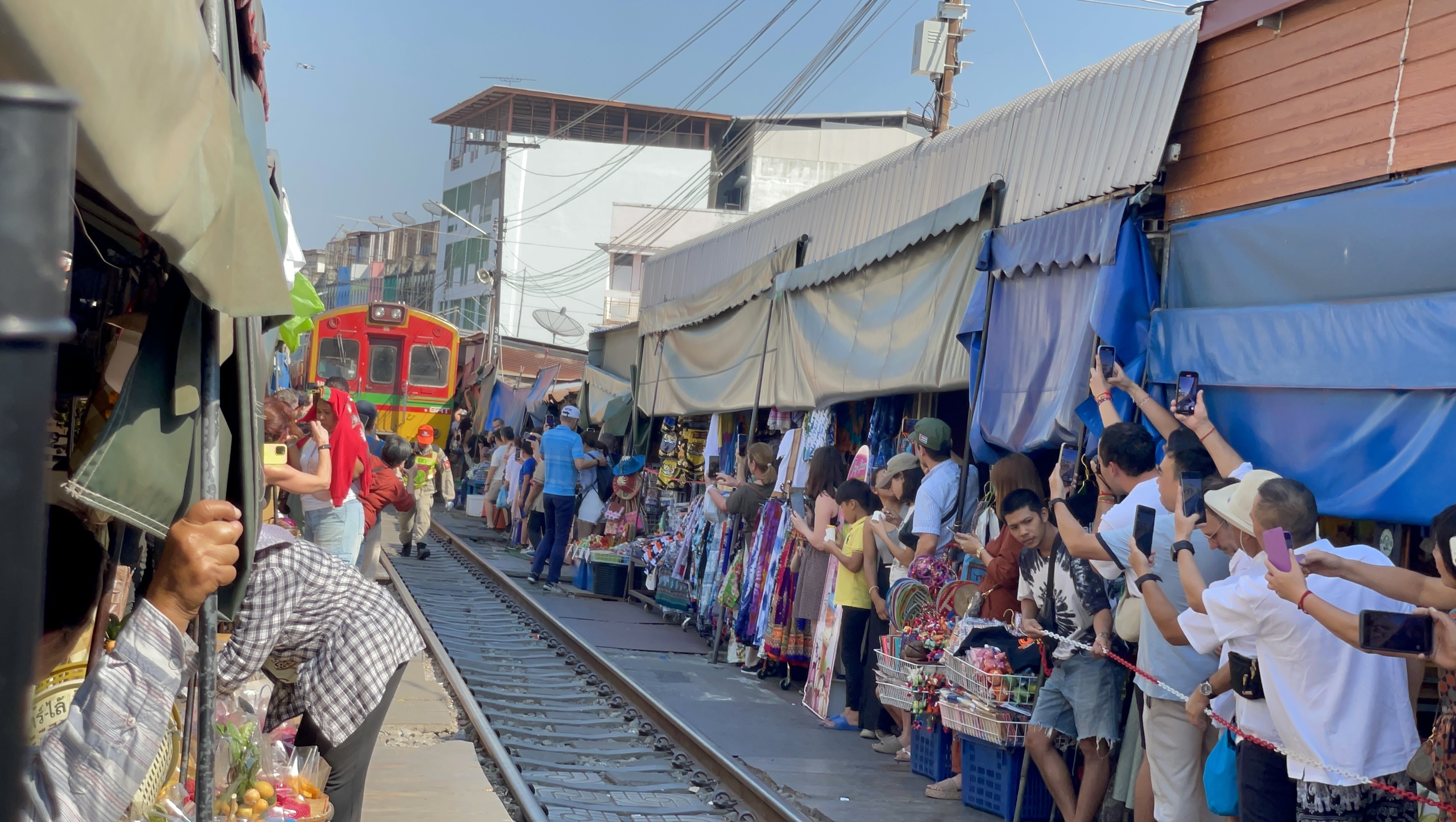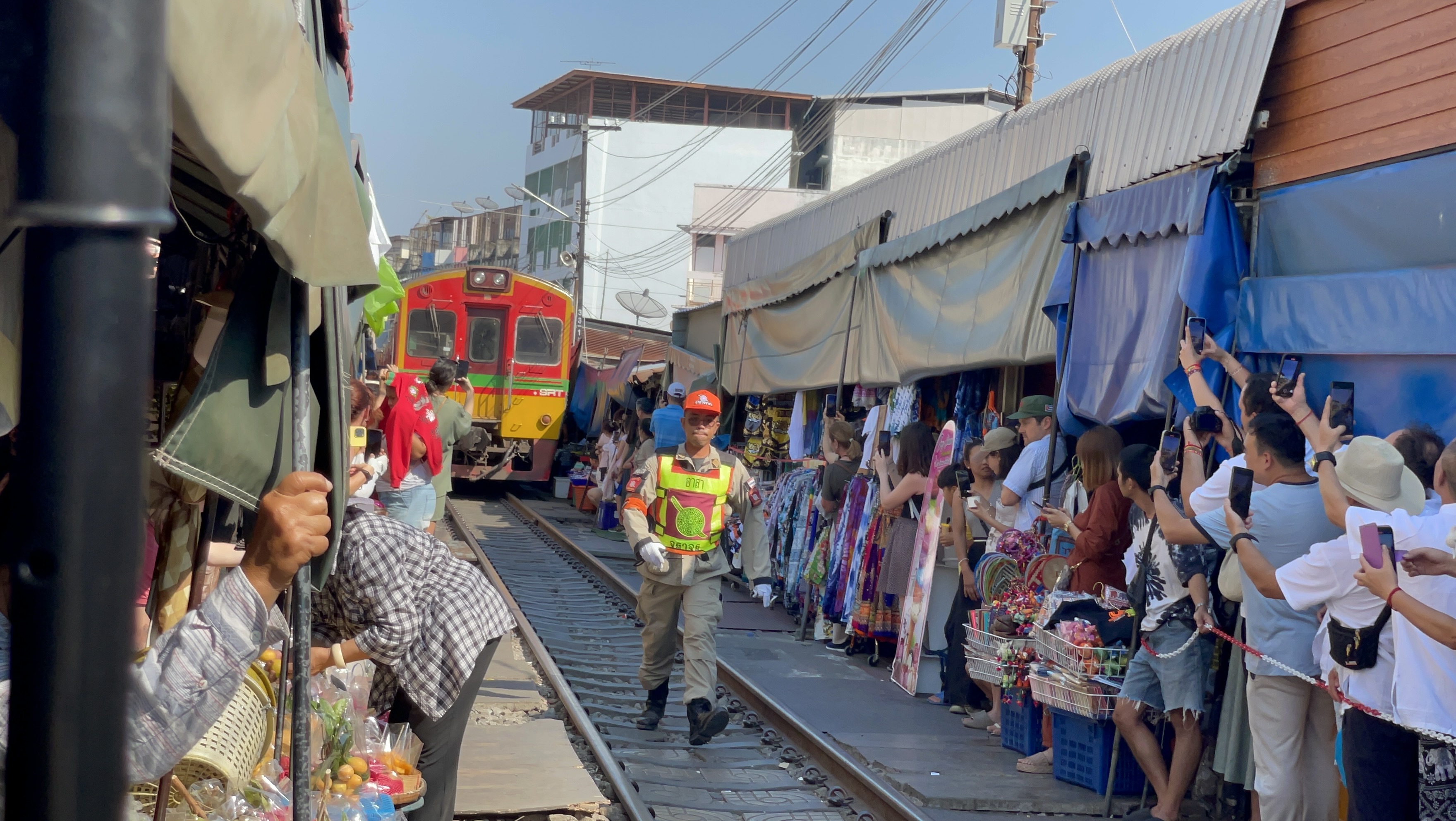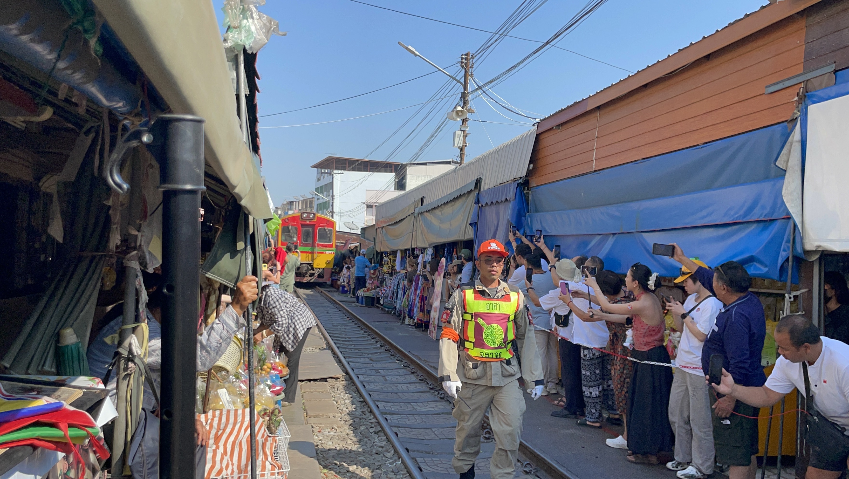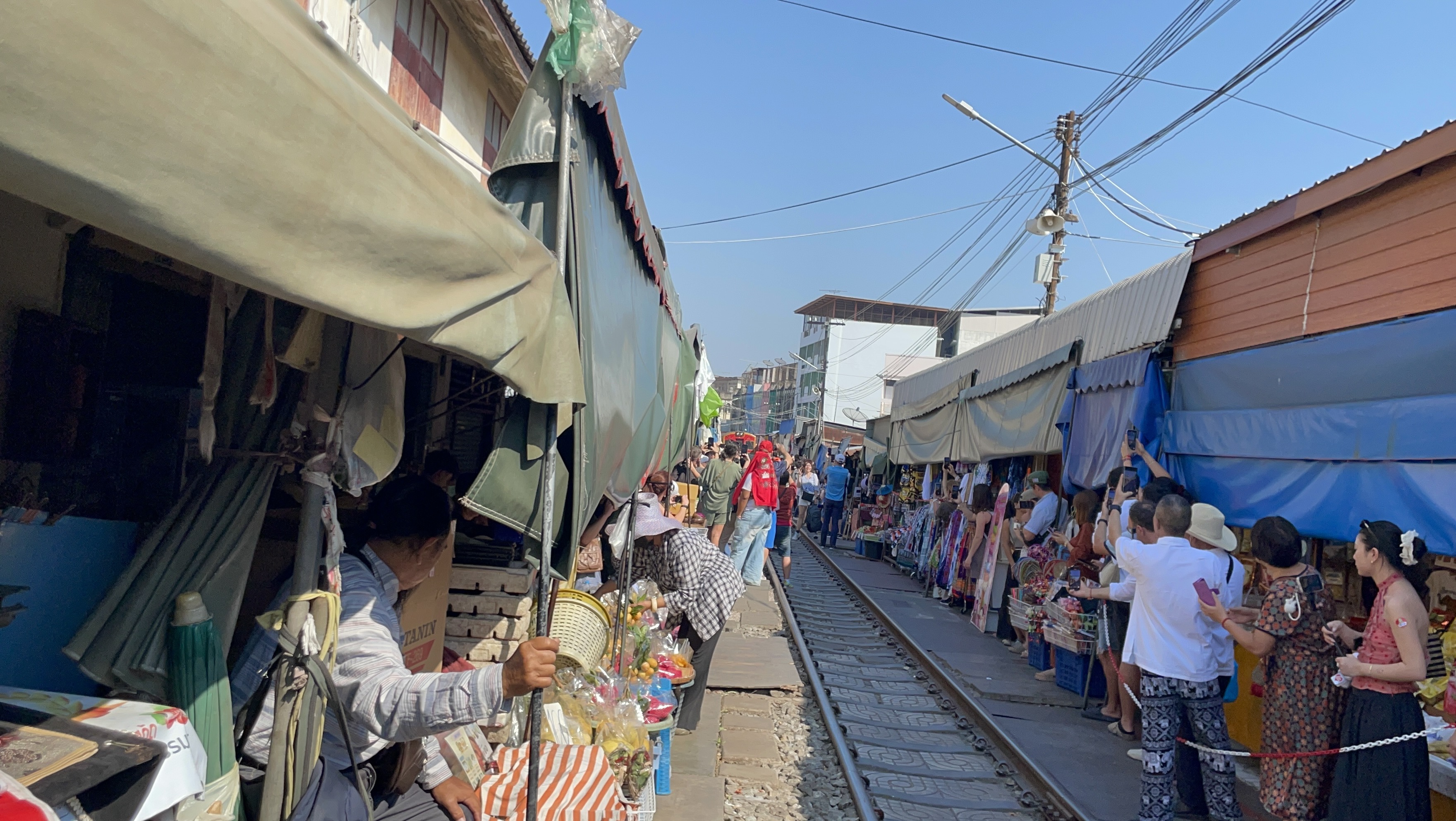 기찻길에 도착하면.... 기차가 지나가는 양쪽으로 대기하는 사람들이 많다.
