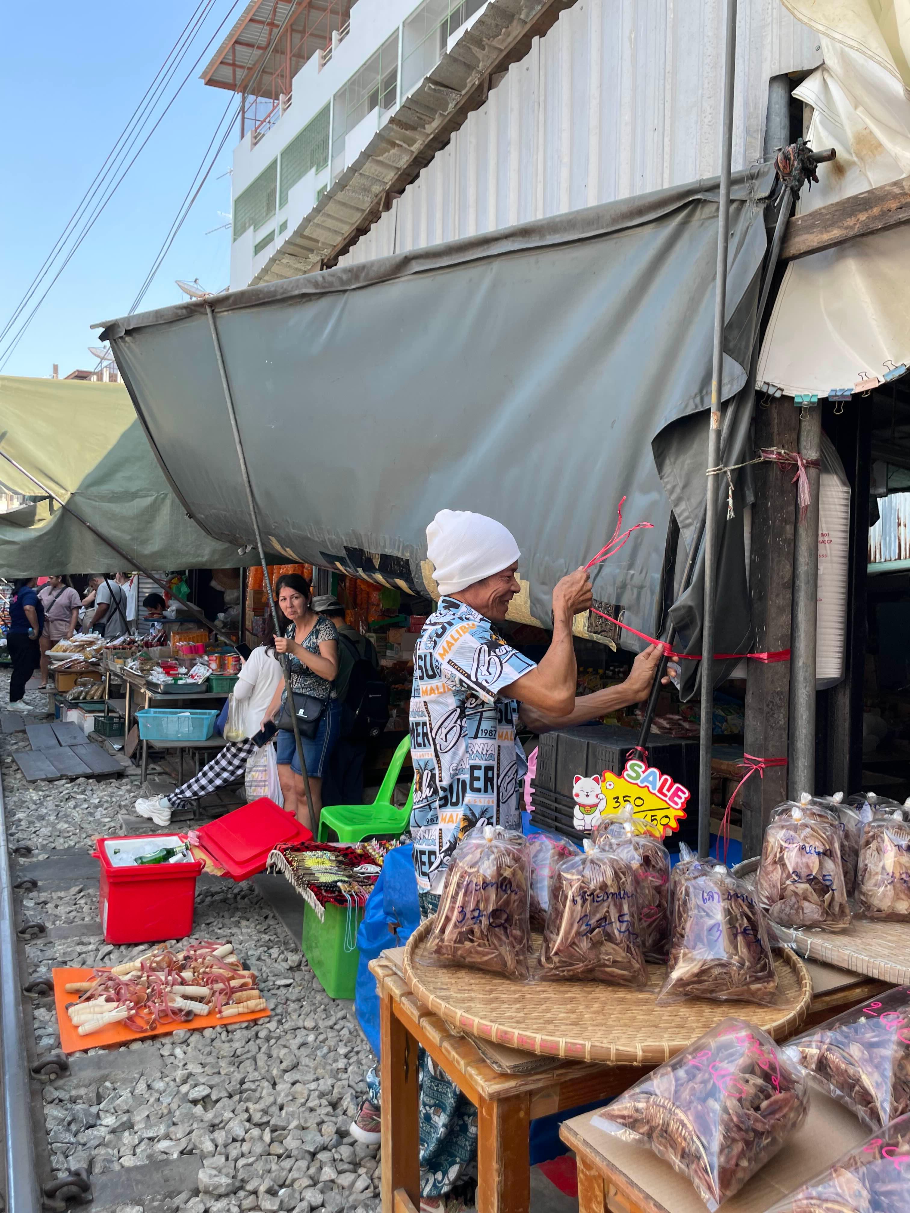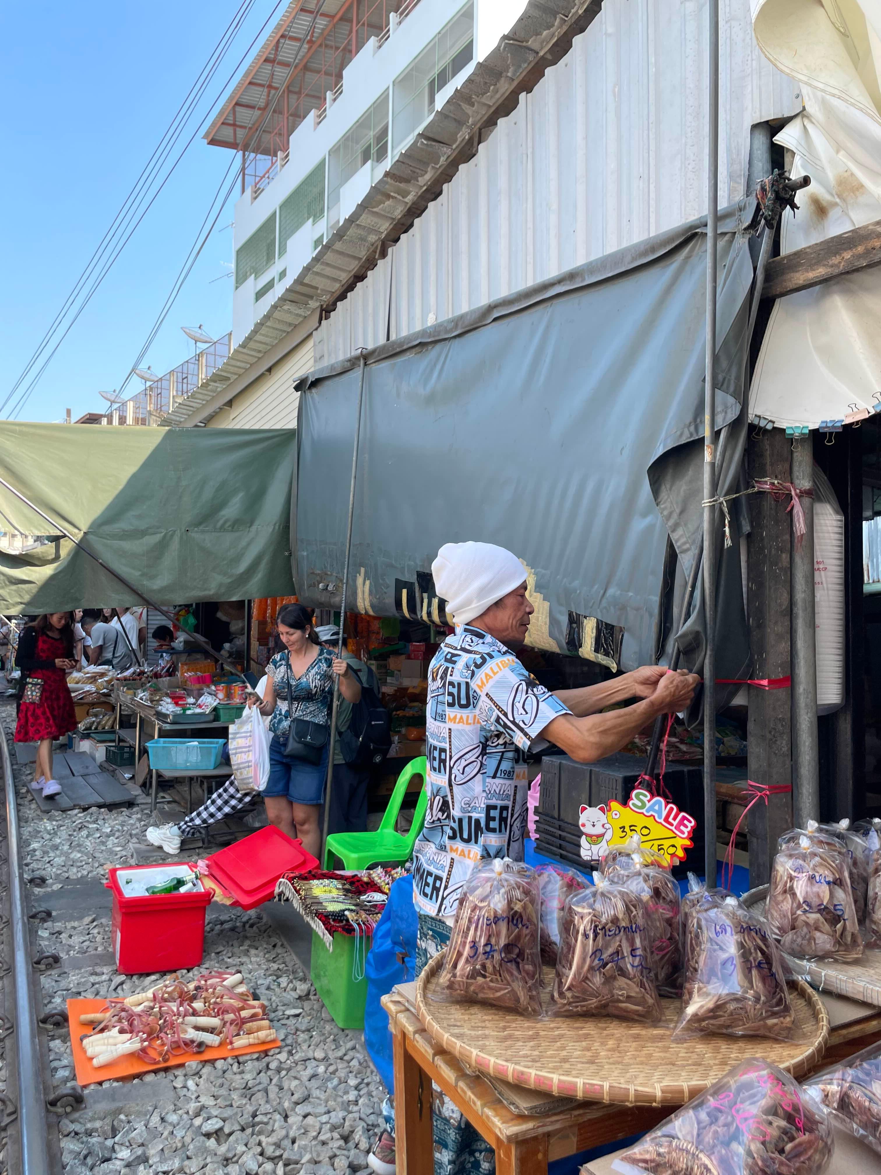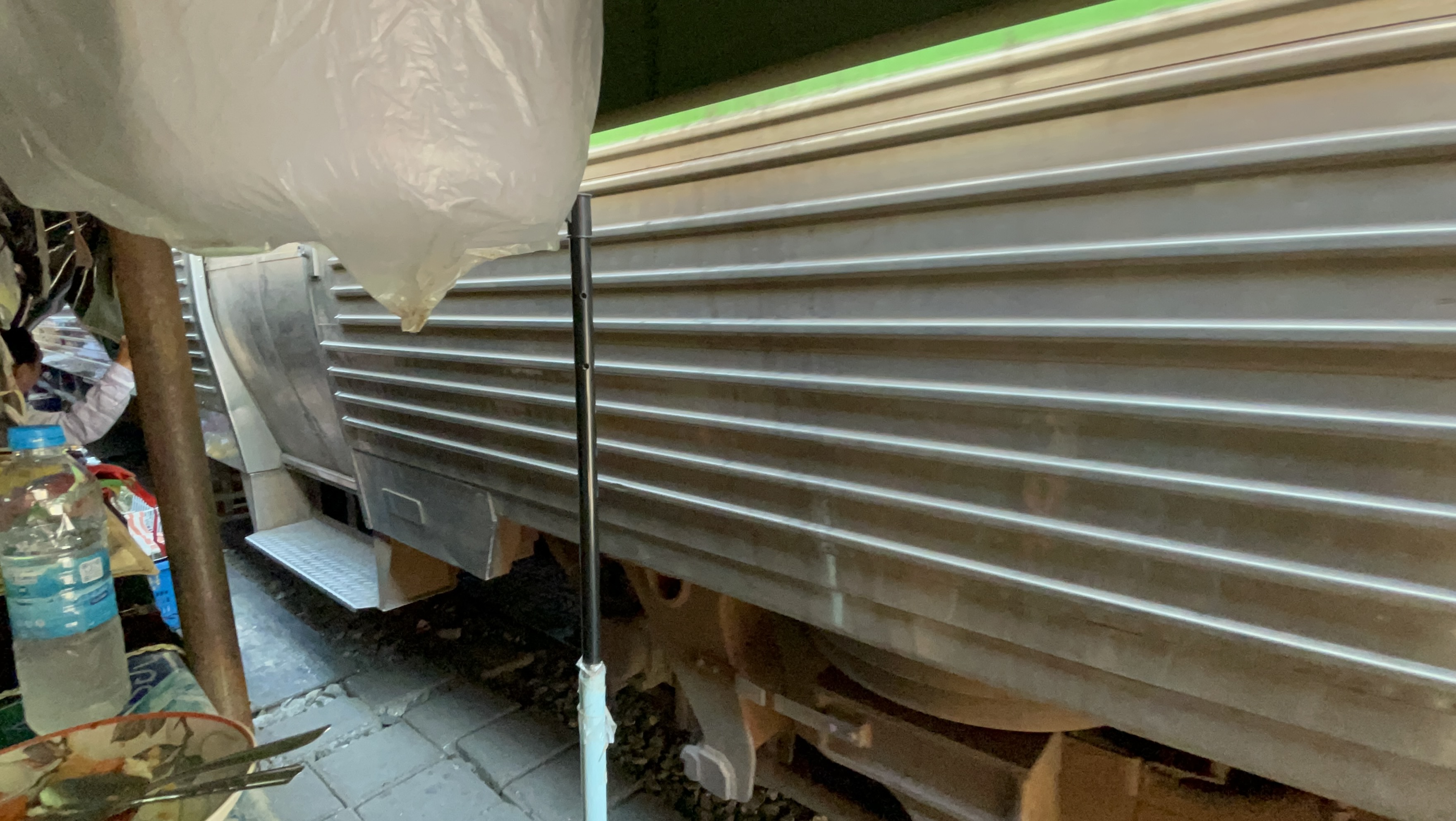 기차가 오면, 천막을 어떻게 걷는지... 보여주신다.ㅋㅋ