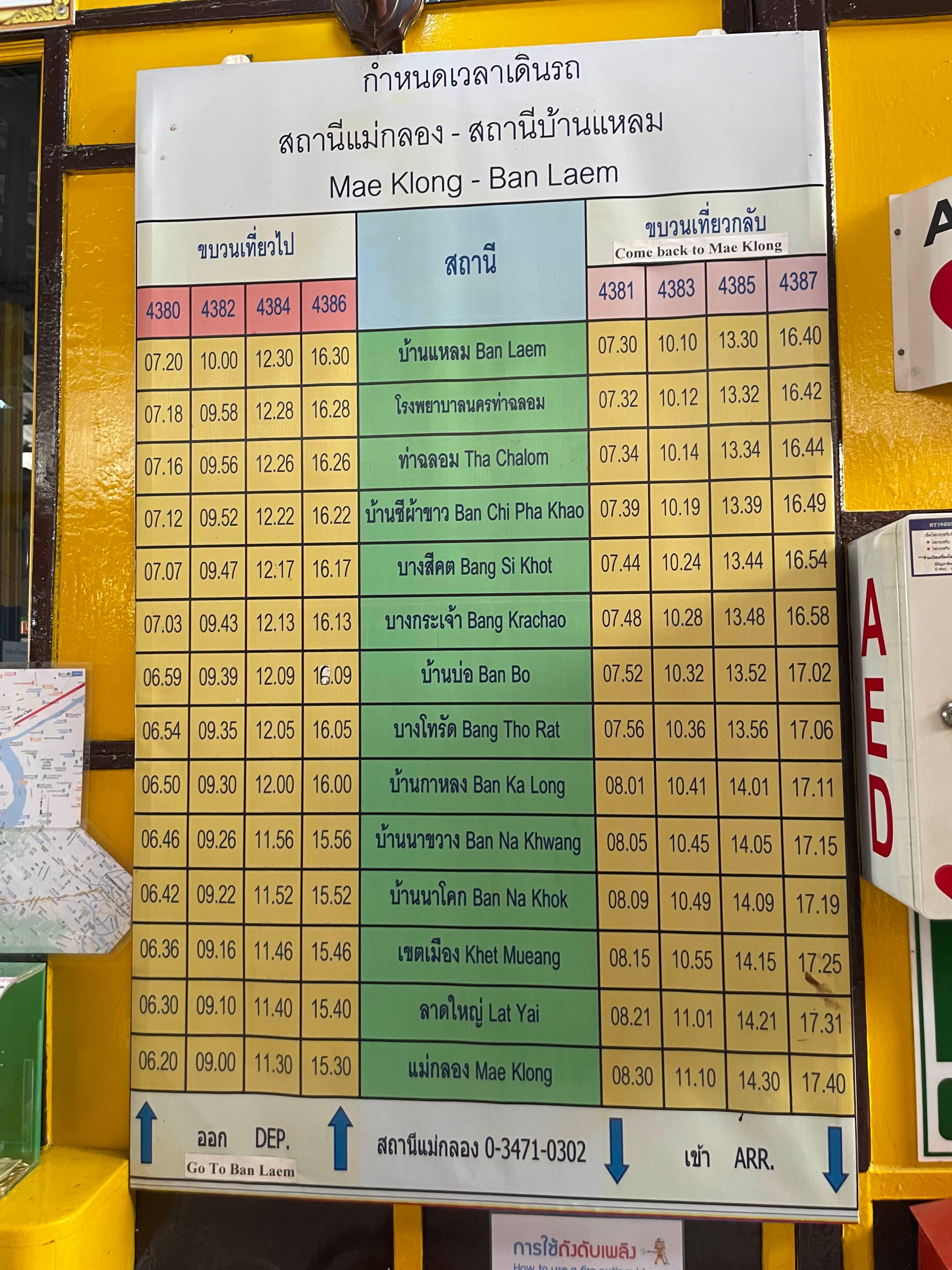 기차는 하루 8번(매끌렁역에 도착하는 4번, 출발하는 4번) 운행한다.