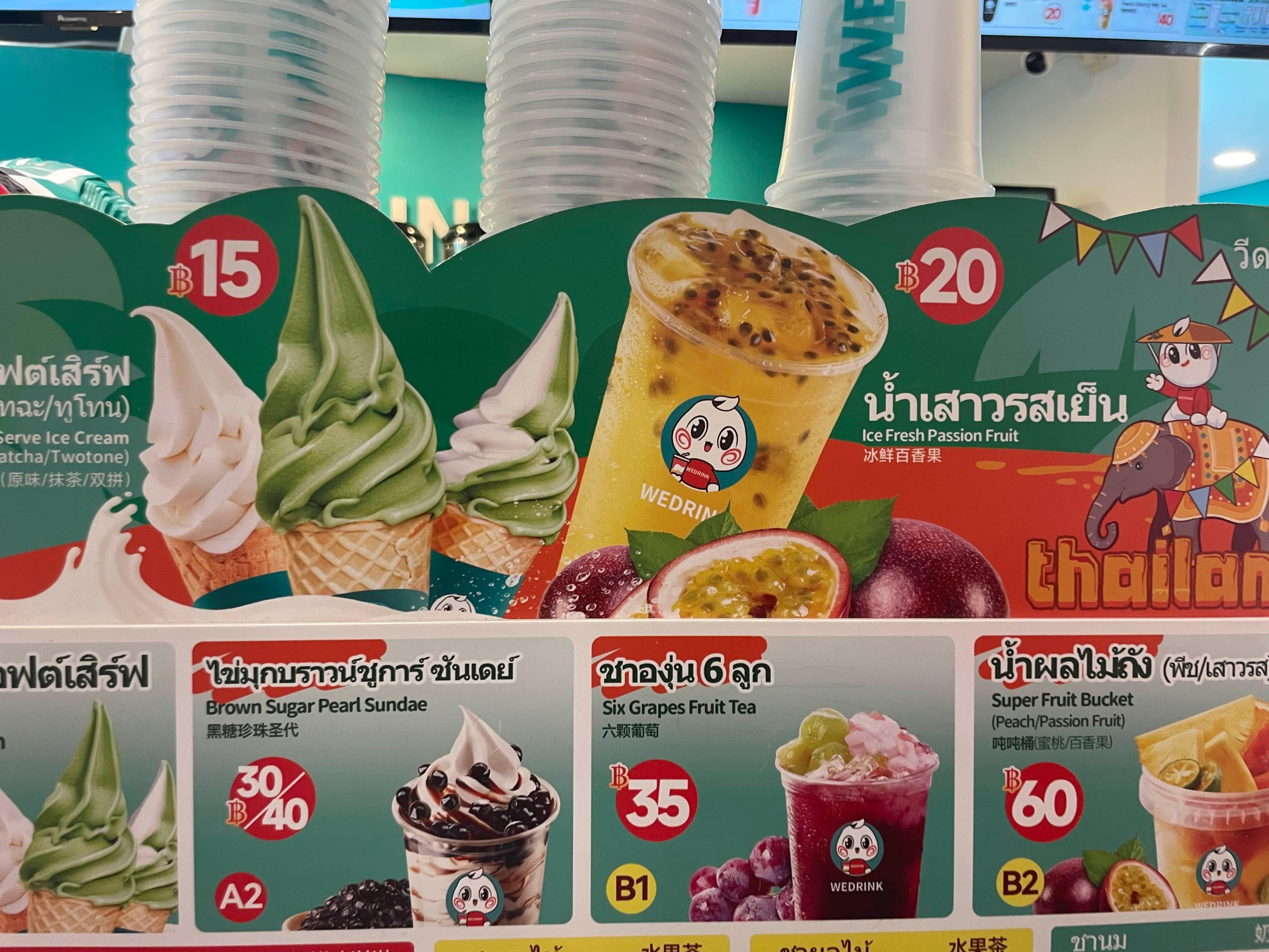 소프트콘은 15밧, 패션프루트 음료수는 20 바트라... 음료하나 주문해 본다.