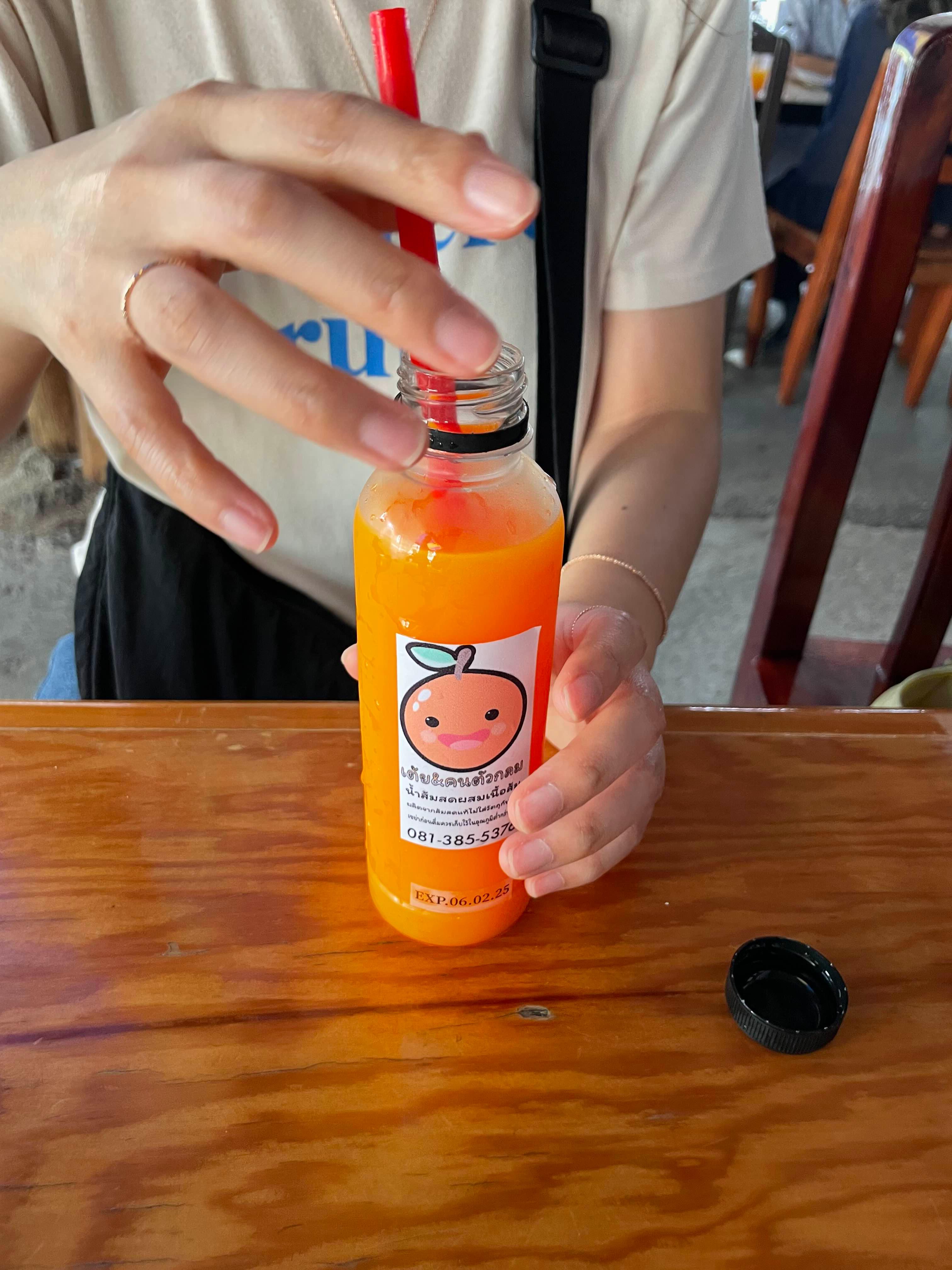 오렌지 주스와 음식 4개를 너무 맛나게 먹었다. 전체 가격은 375밧!!