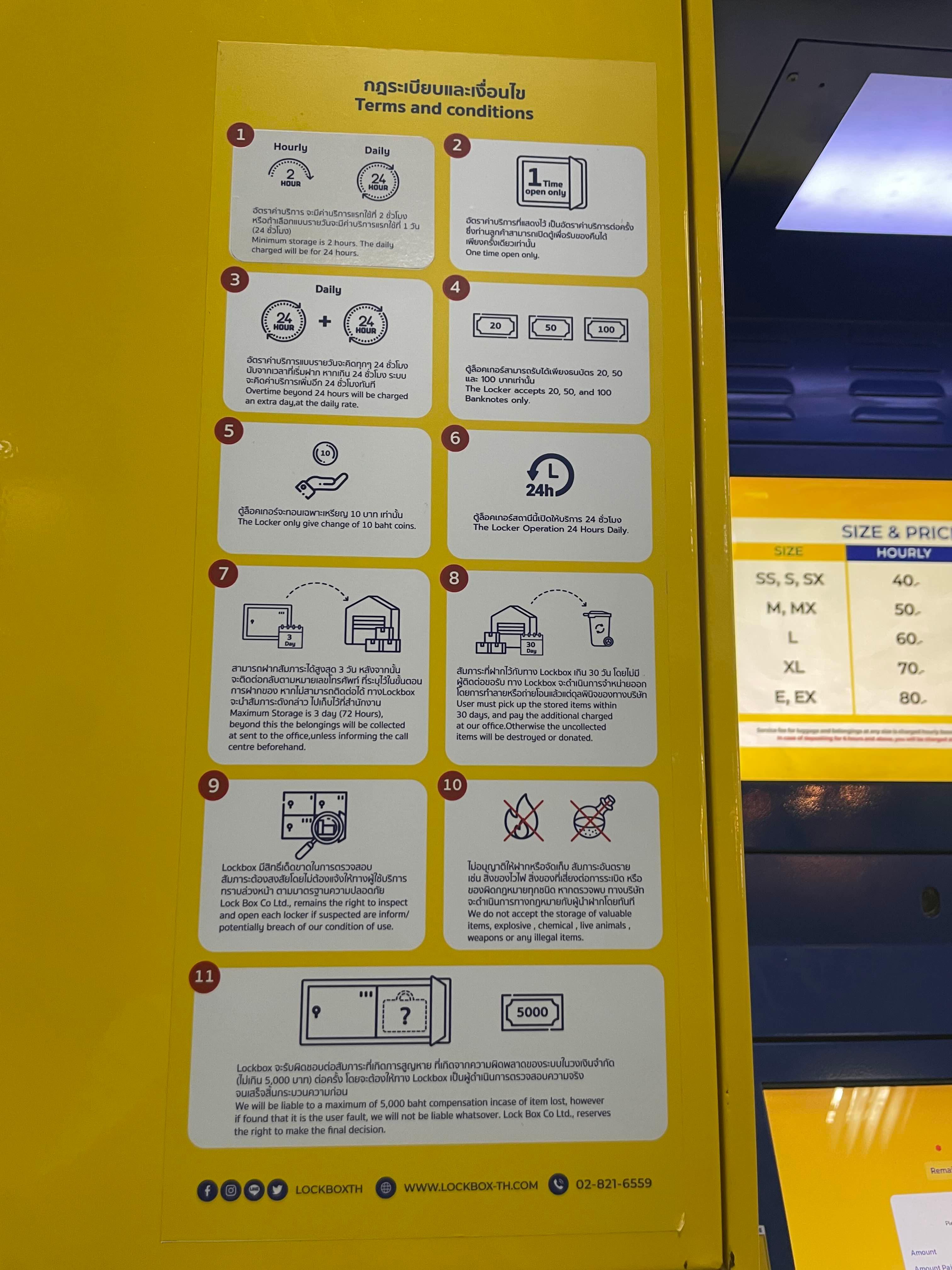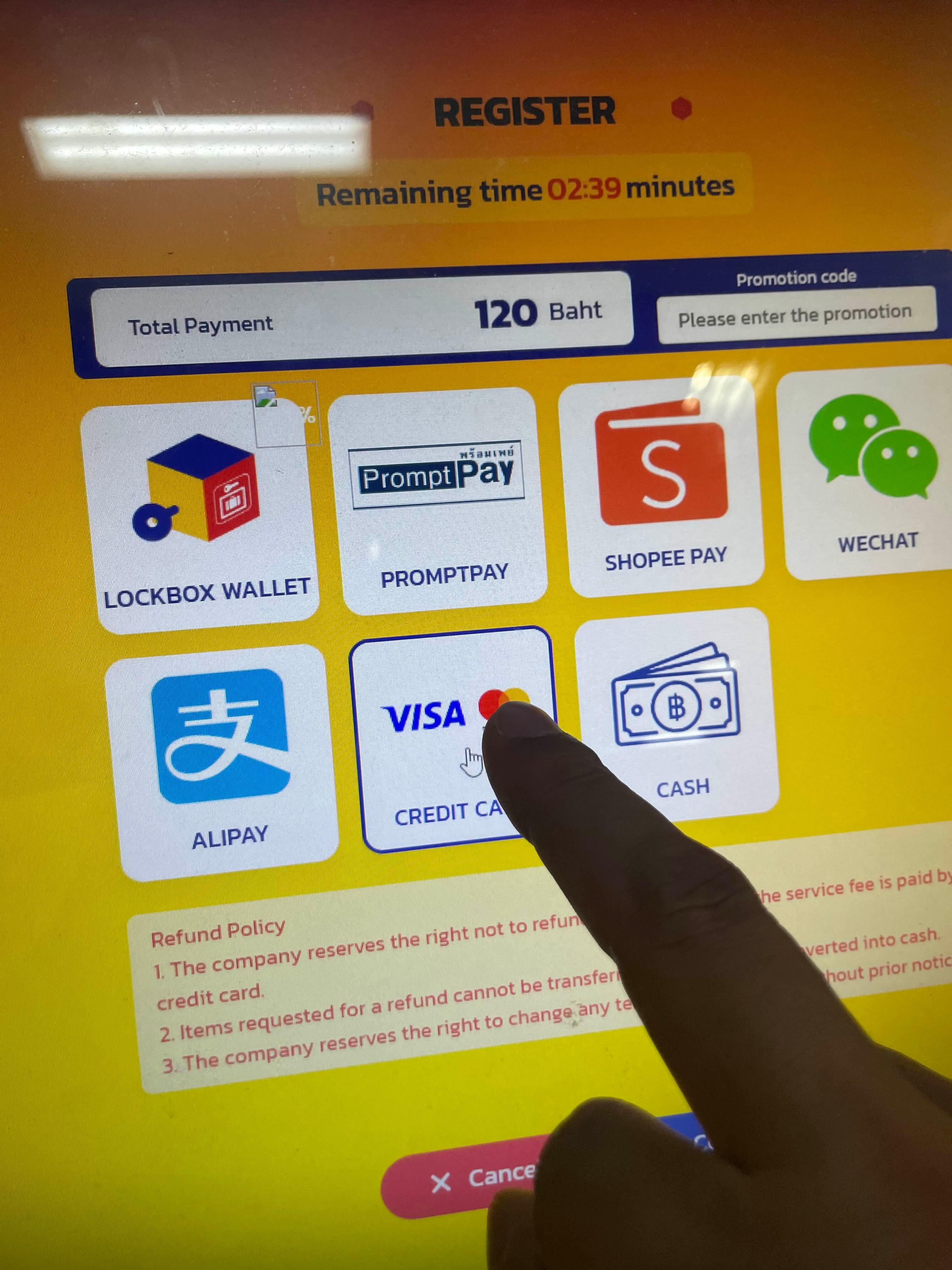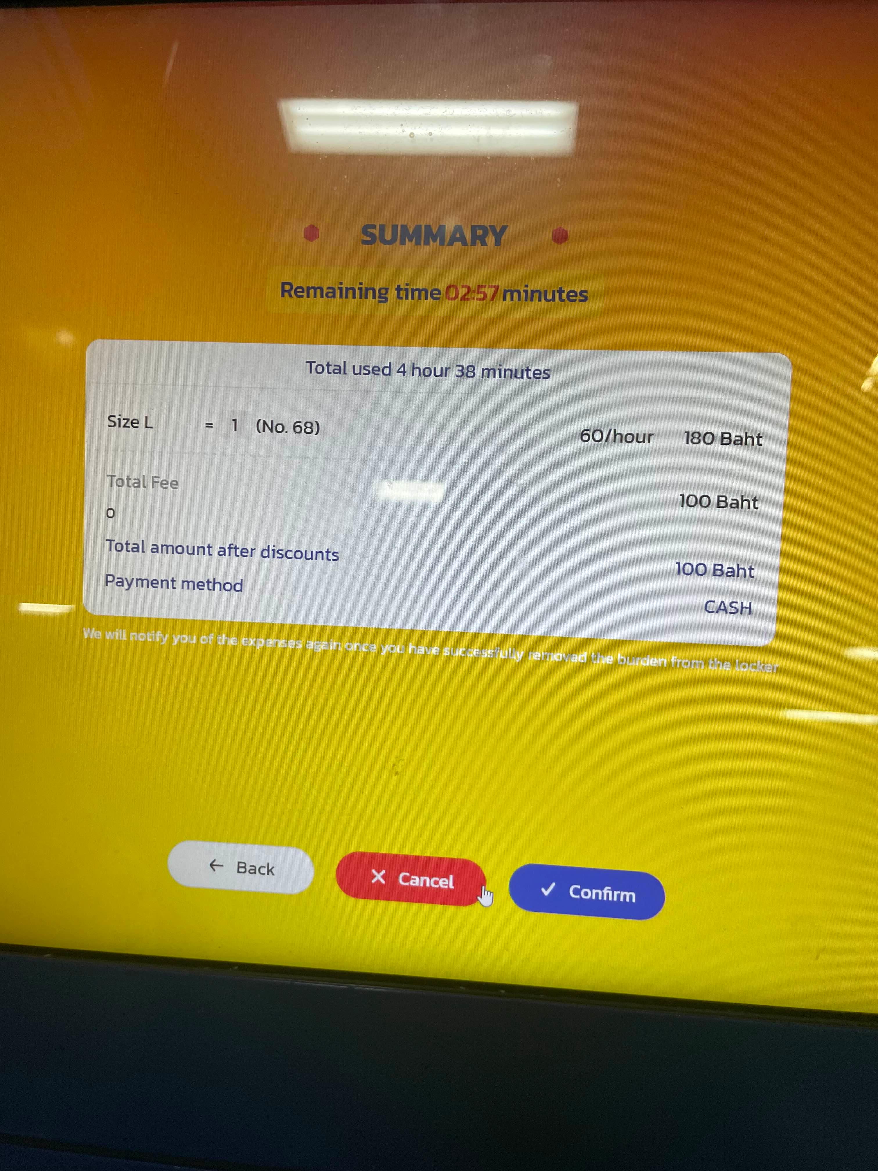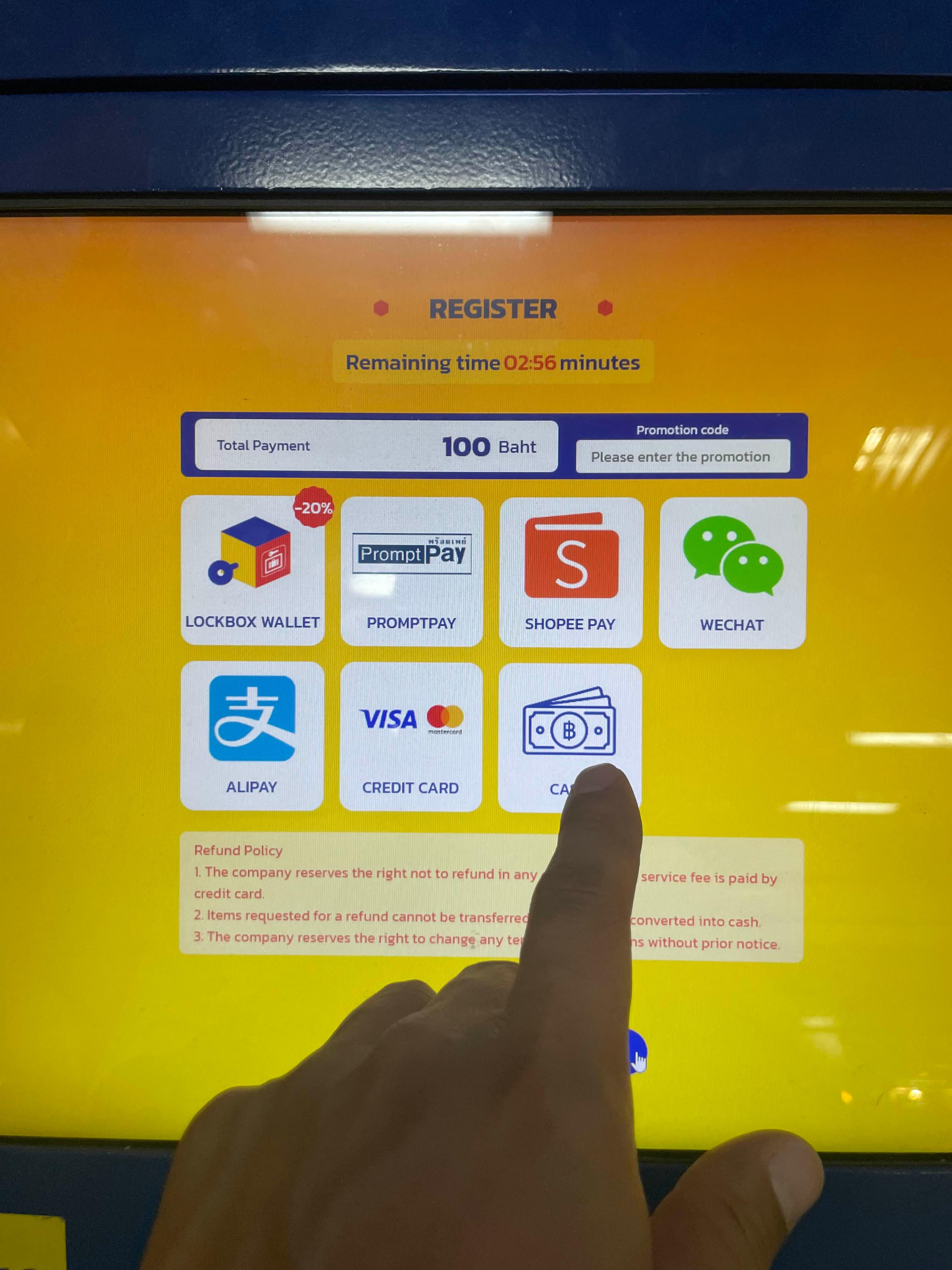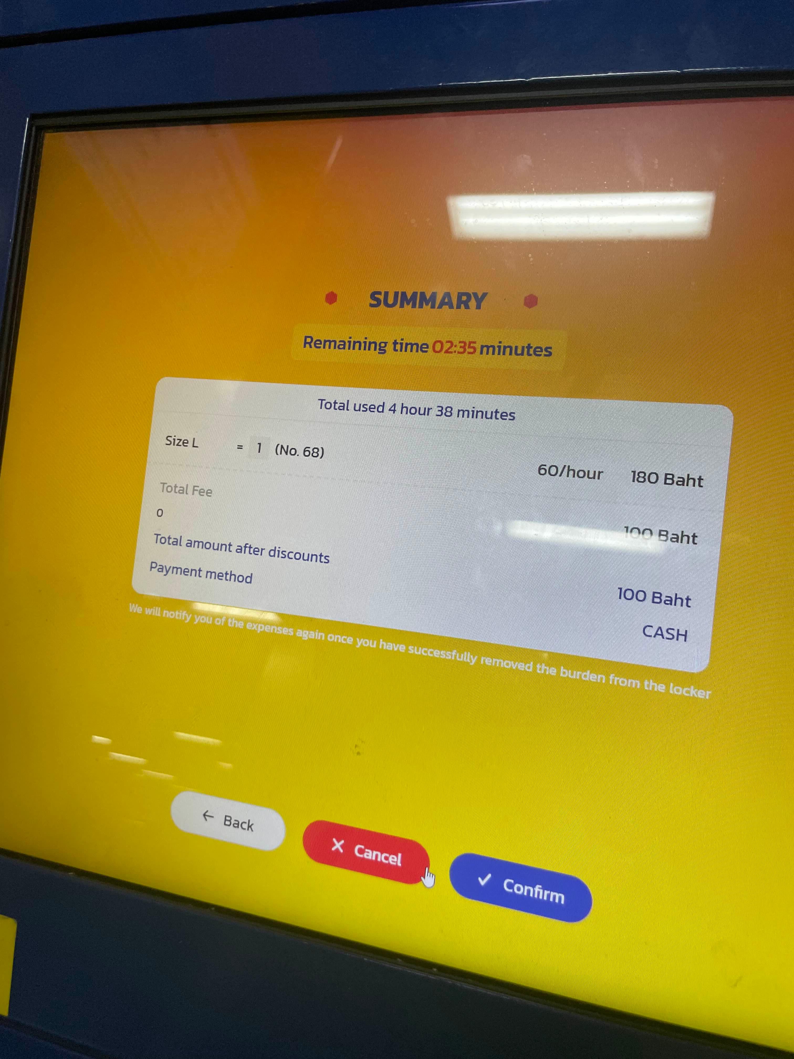 짐 보관을 위해서는 기본 2시간 요금(120밧) 입금하고 잔여금액 돌려받거나, 추가 시간에 대해서 추가입금 해야 한다.