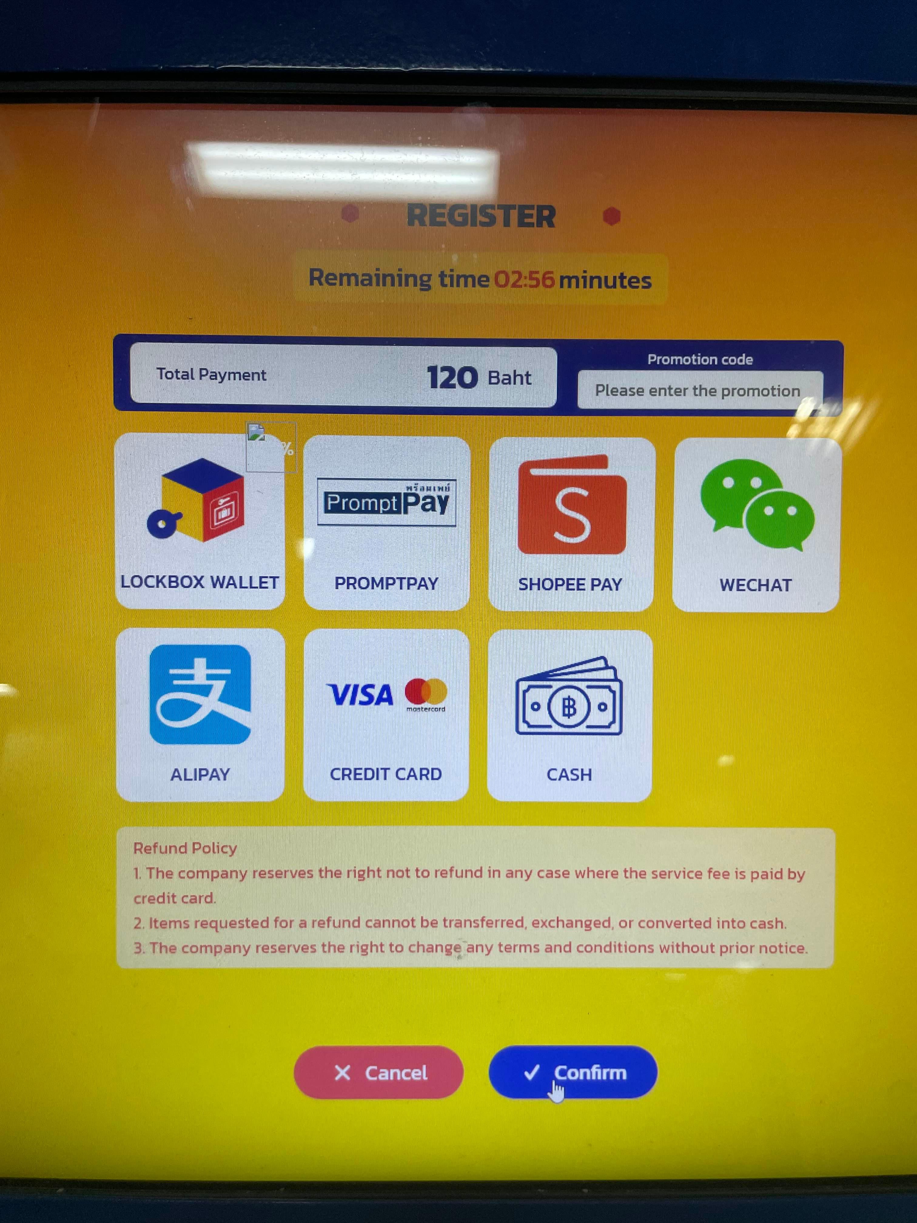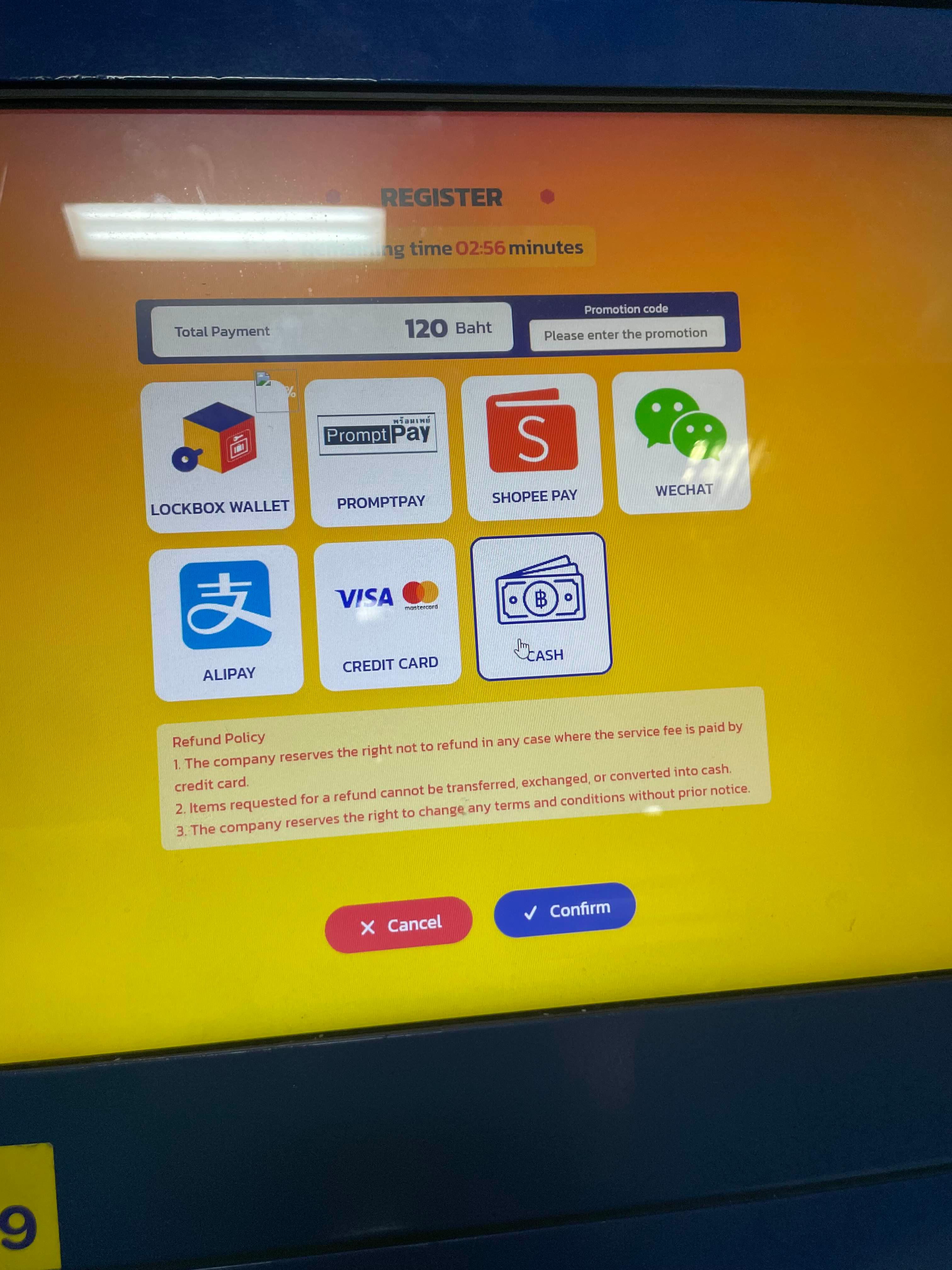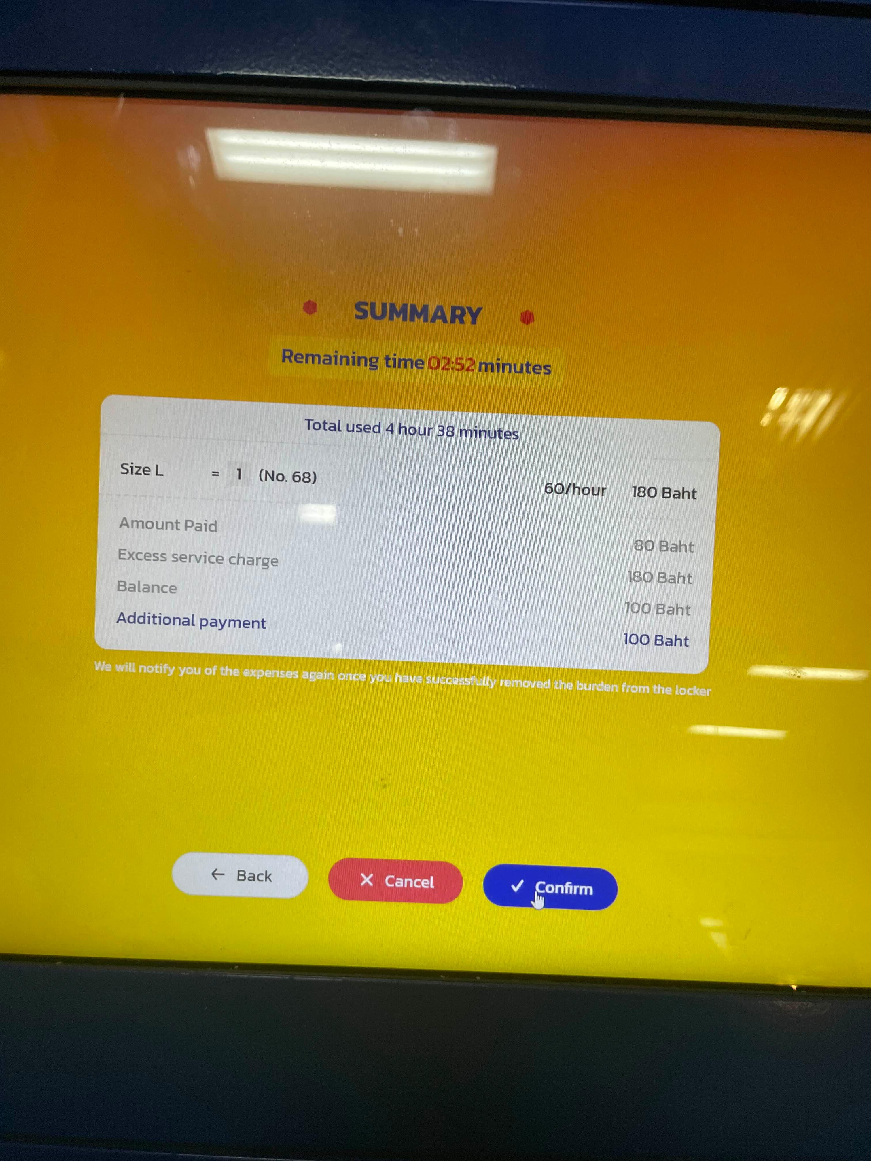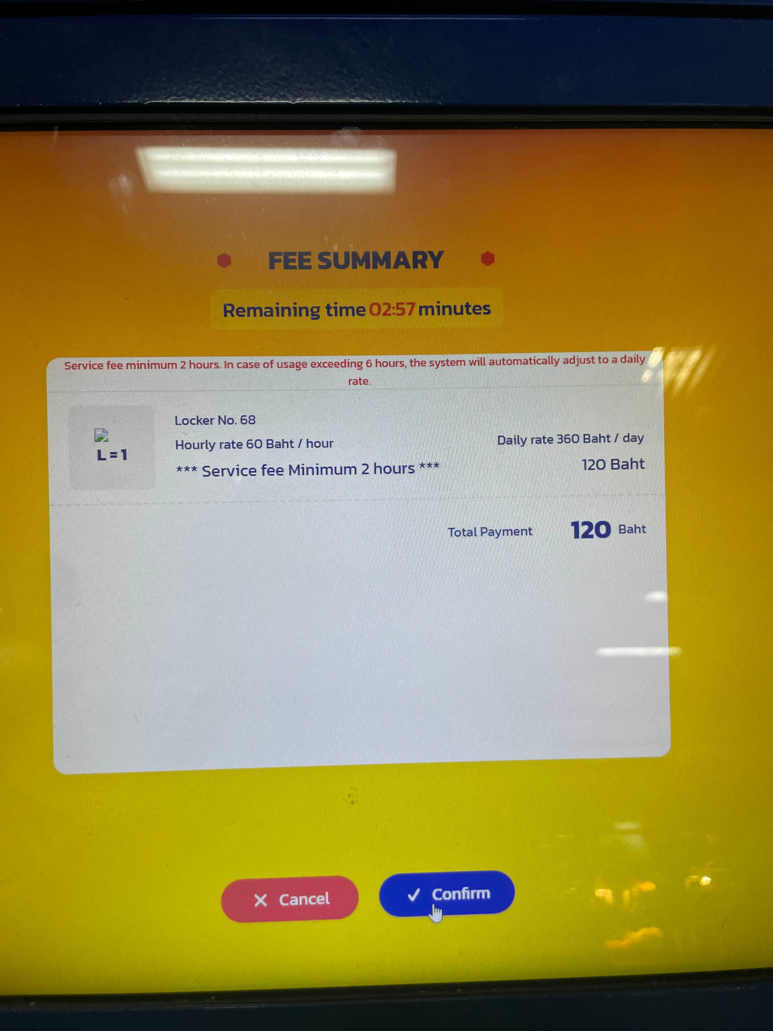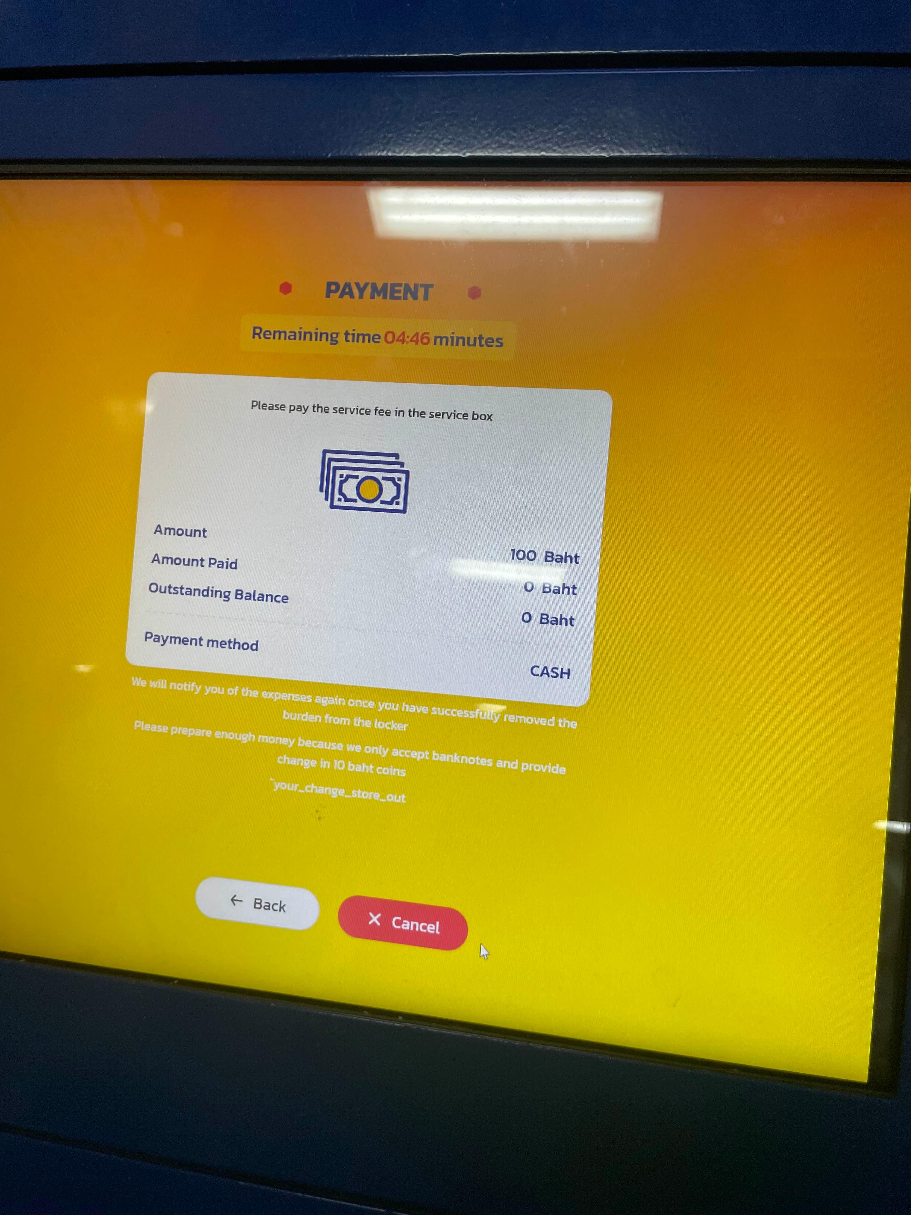 짐 보관을 위해서는 기본 2시간 요금(120밧) 입금하고 잔여금액 돌려받거나, 추가 시간에 대해서 추가입금 해야 한다.