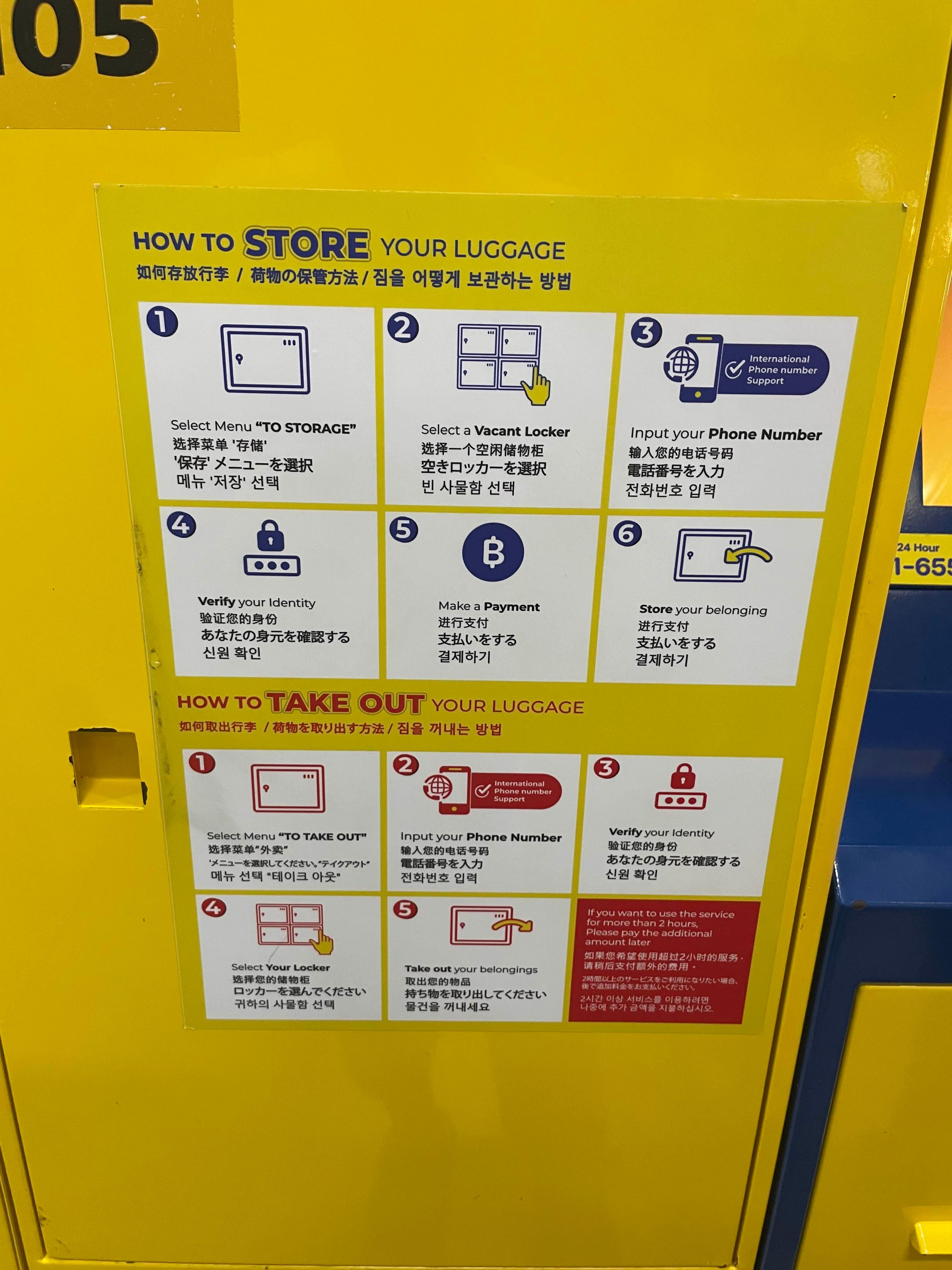 나는 노란색 락커를 이용했는데, 짐 찾을 때 락커문이 오픈되지 않아서 좀 불편!