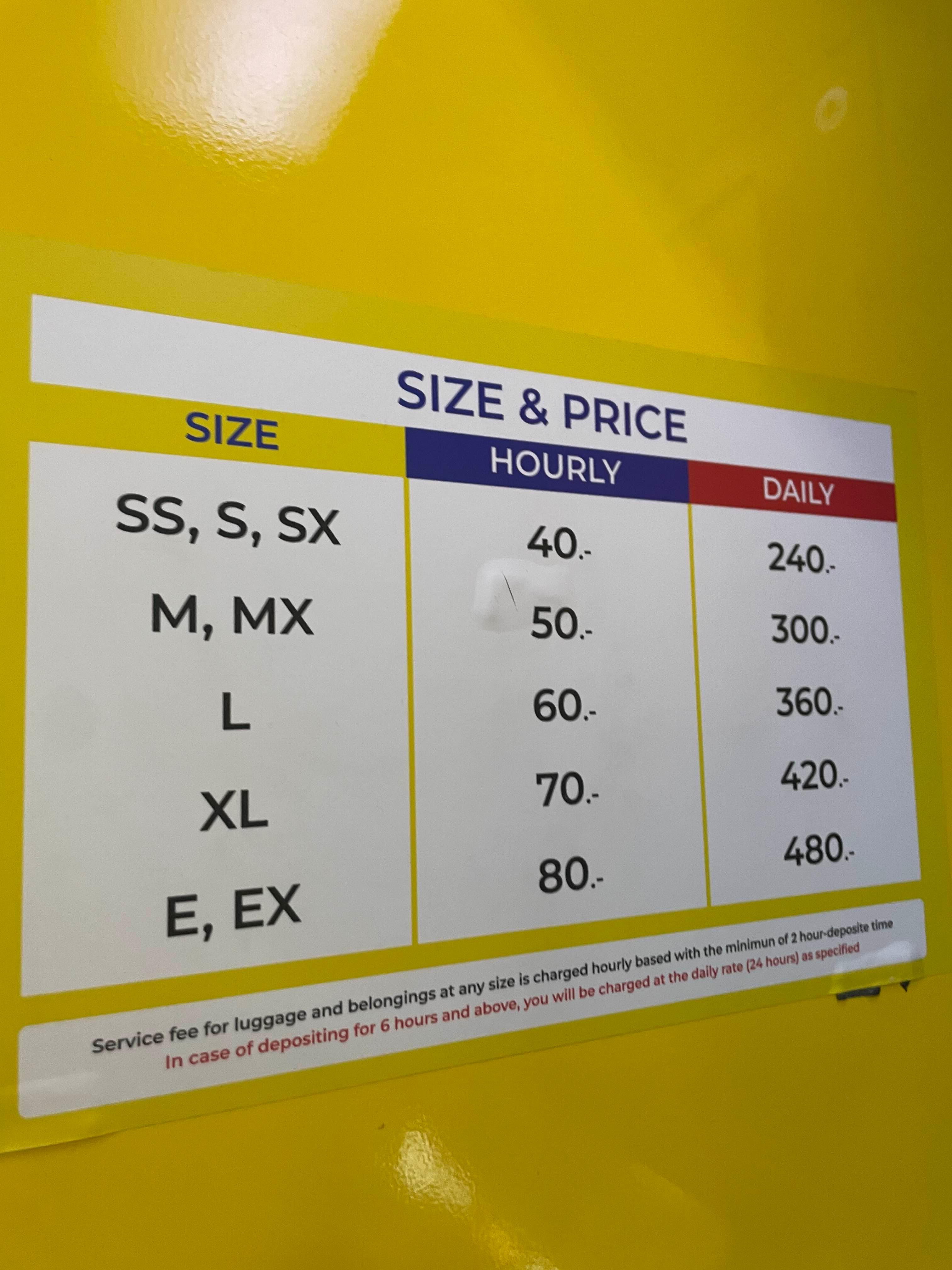 노란색 락커룸에 가장 큰 사이즈는 L사이즈! 1시간에 60밧이고, 하루 최대 360밧!!