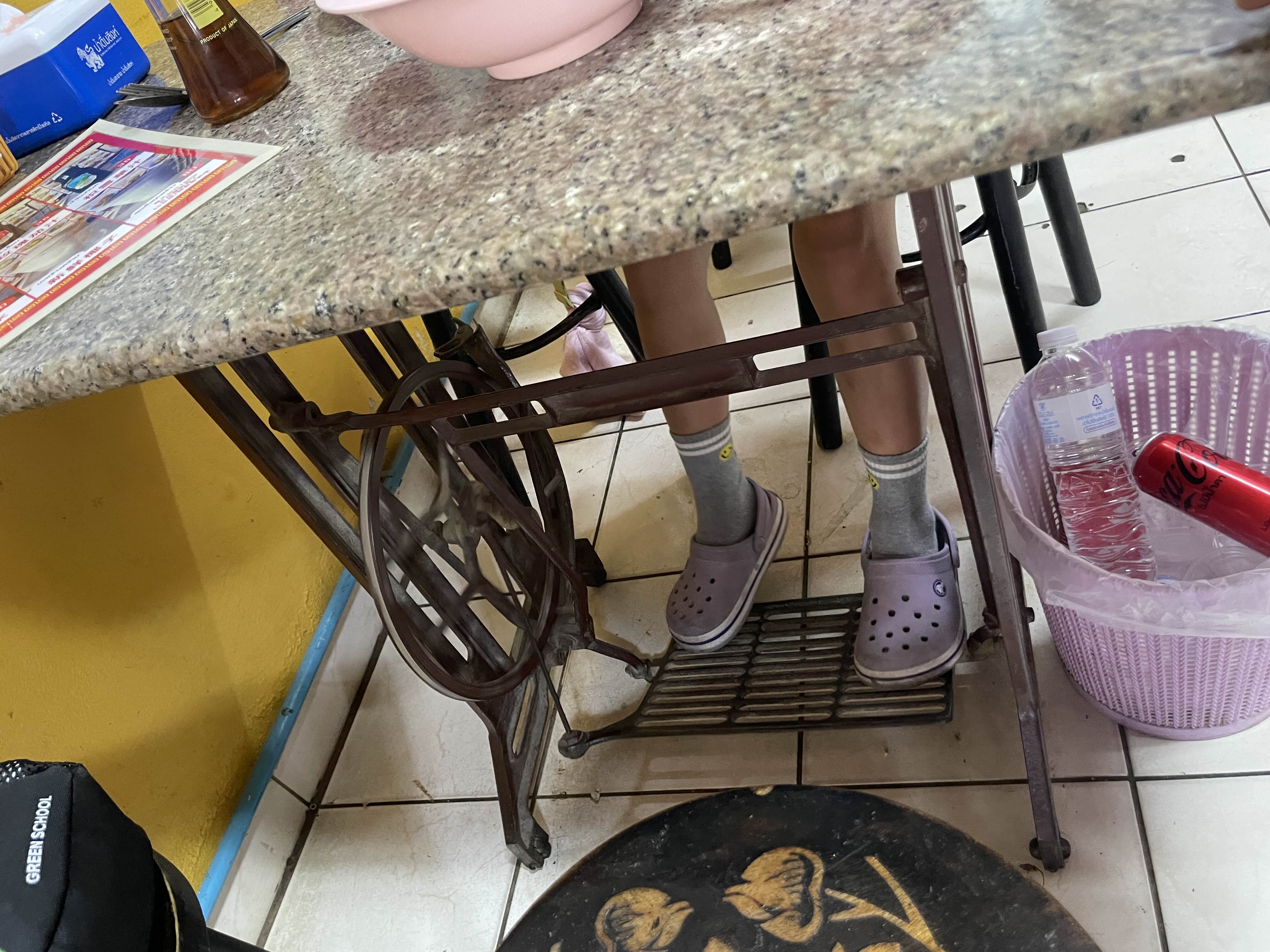그리고, 테이블 아래는 발로 누르면 재봉틀 도르래가 돌아간다. ㅎㅎ