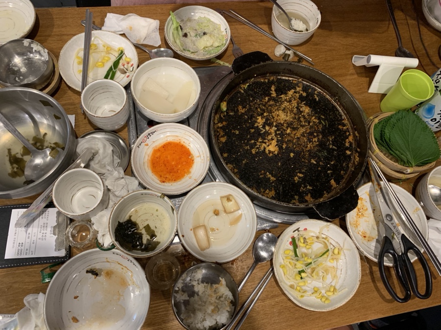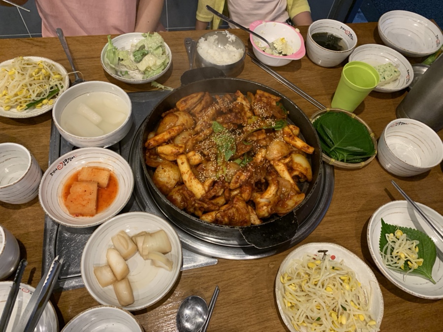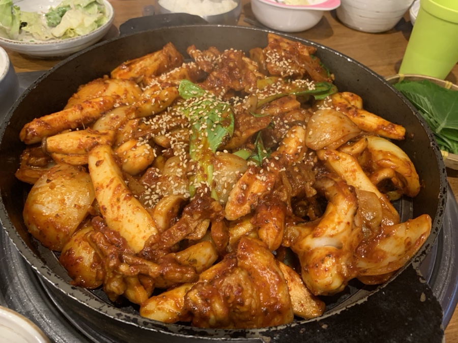 백운호수점은 셀프바에 기본으로 나온 밑반찬을 가져다 먹었는데.... 반찬이 떨어지면 더 달라고 이야기해서... 셀프바가 있었으면 좋겠네요. 양념이 좀 덜 맵게 나와서 깻잎 쌈을 그렇게 많이 싸먹지는 않았네요. 갑오징어를 다 먹고서 볶은 밥 2개 주문해서 볶은 밥까지 먹고 식사를 마쳤네요. 밑반찬이 있는 셀프바, 오돌뼈가 많고 고기가 질겼던 삼겹살, 양념이 건조?(덜 비벼져서) 매운맛이 다른 매장과 다른 점.... 이 부분만 개선되면 맛있는 식당이 될 거 같네요.