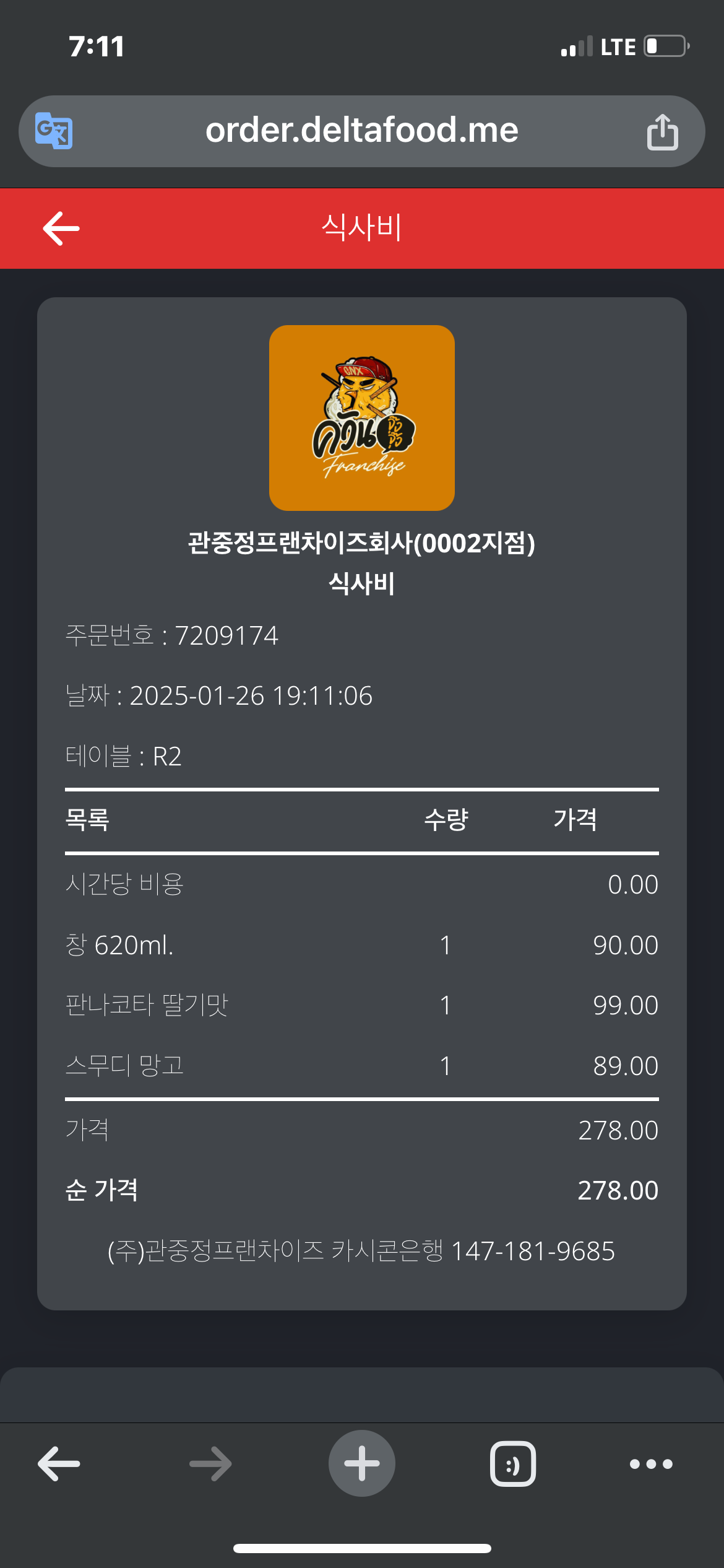 하지만, 크롬으로 구글 들어가서 스캔하면 한글 번역을 사용하면 손쉽게 메뉴확인과 주문이 가능합니다.