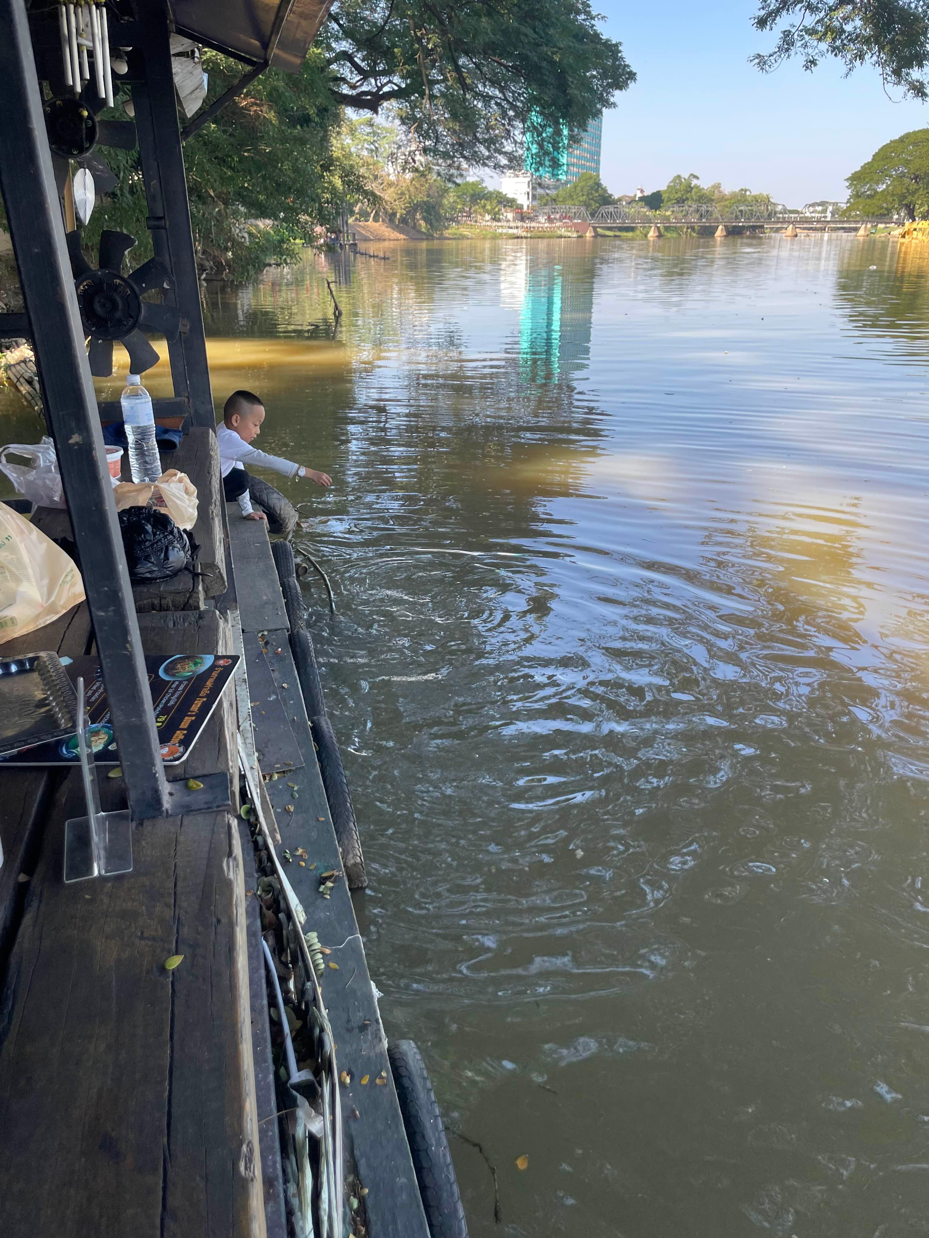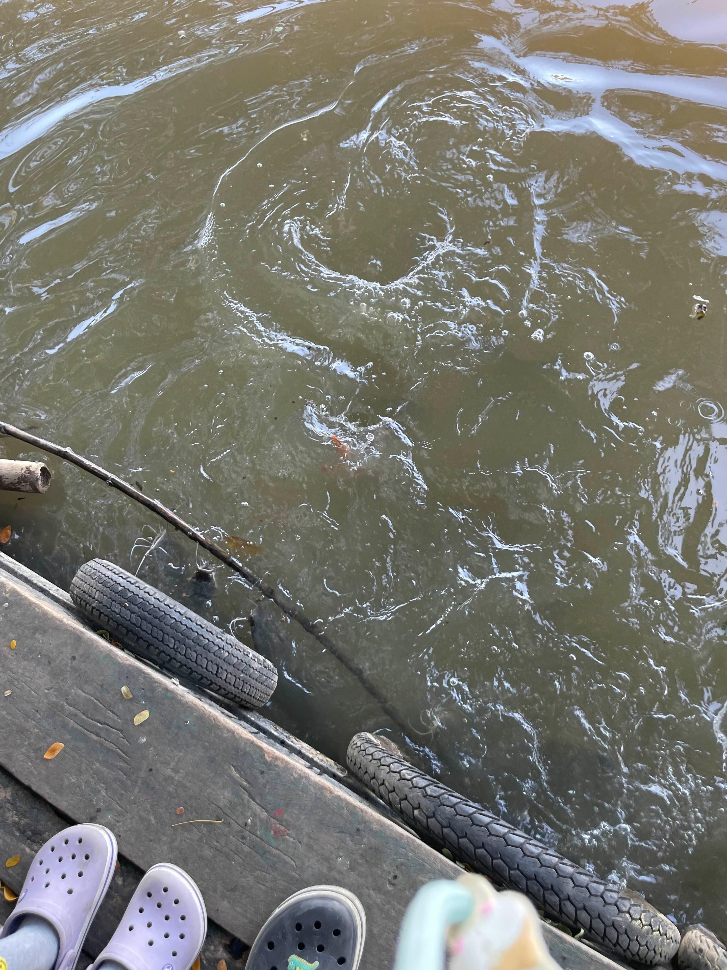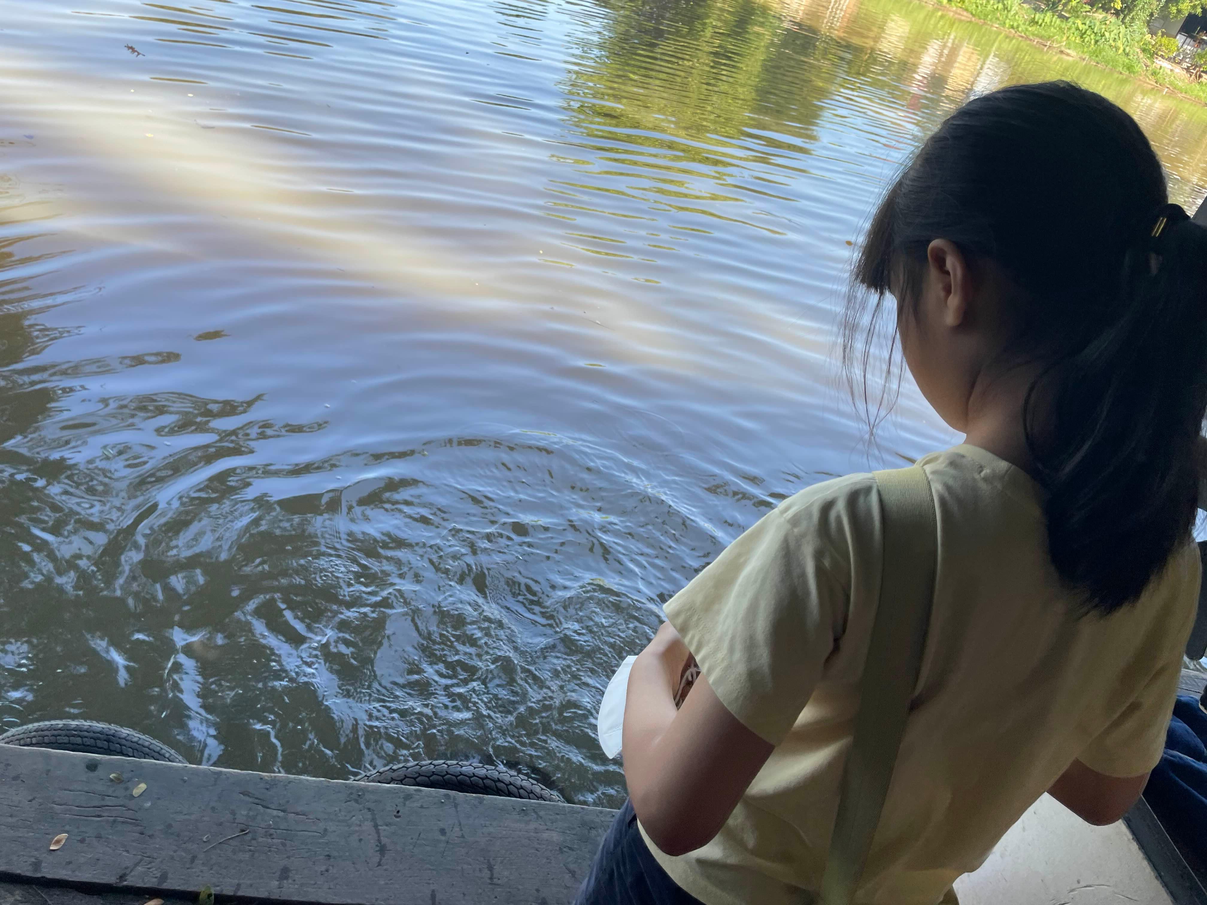 한편에는 아이가 핑강에 물고기 밥을 던지는데... 물고기가 상당히 많다.