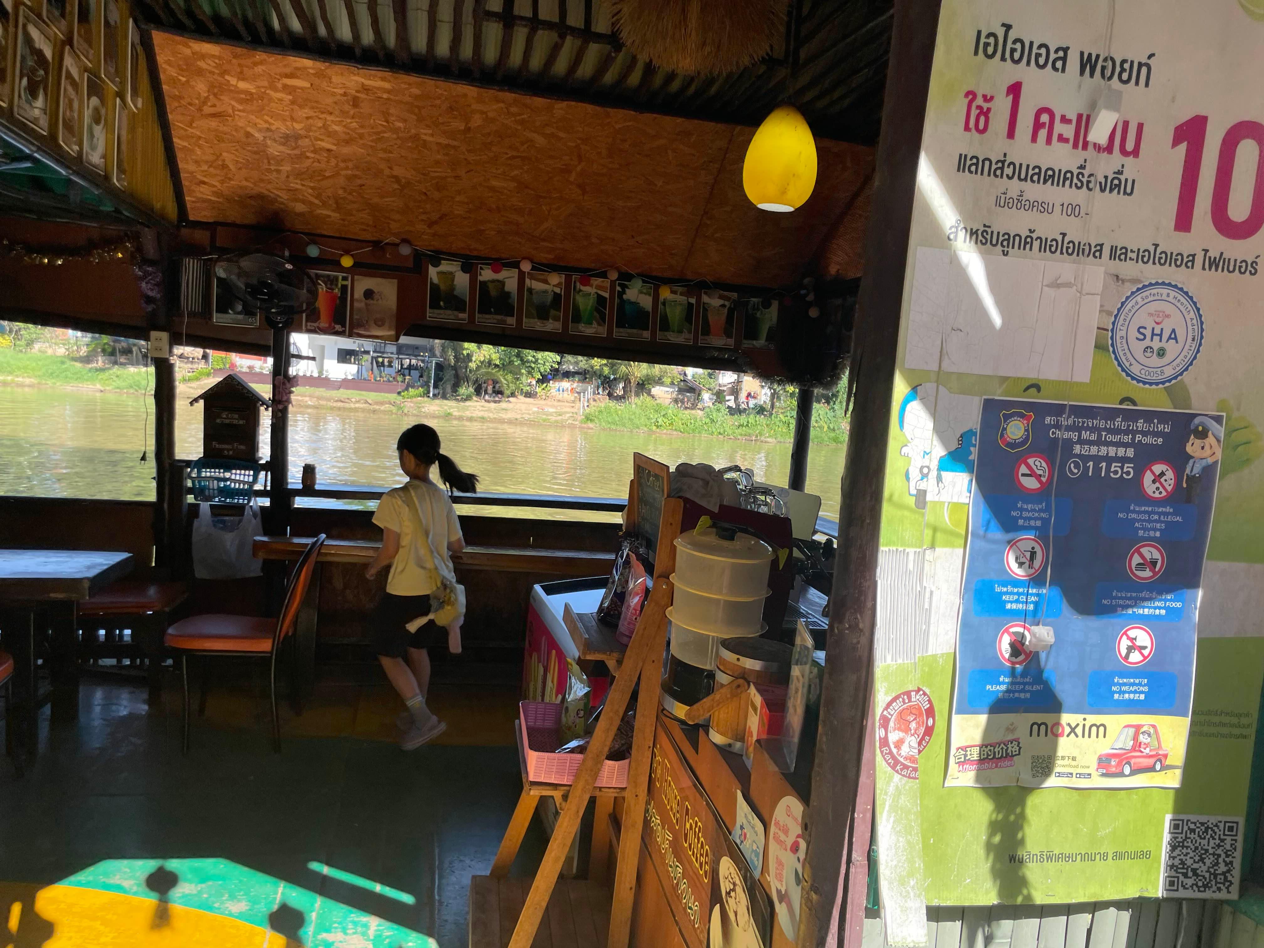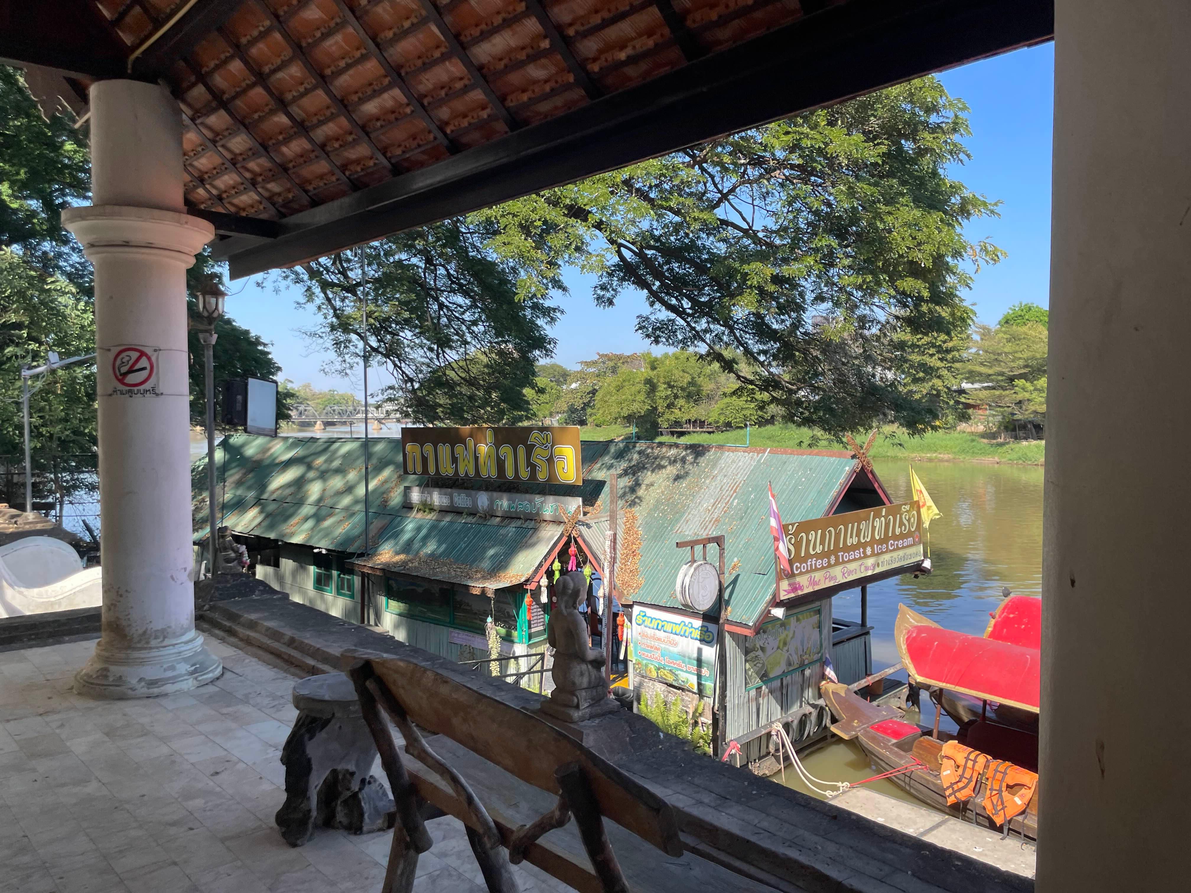 치앙마이 핑강 근처의 사원과 크루즈 선착장에 위치한 카페!