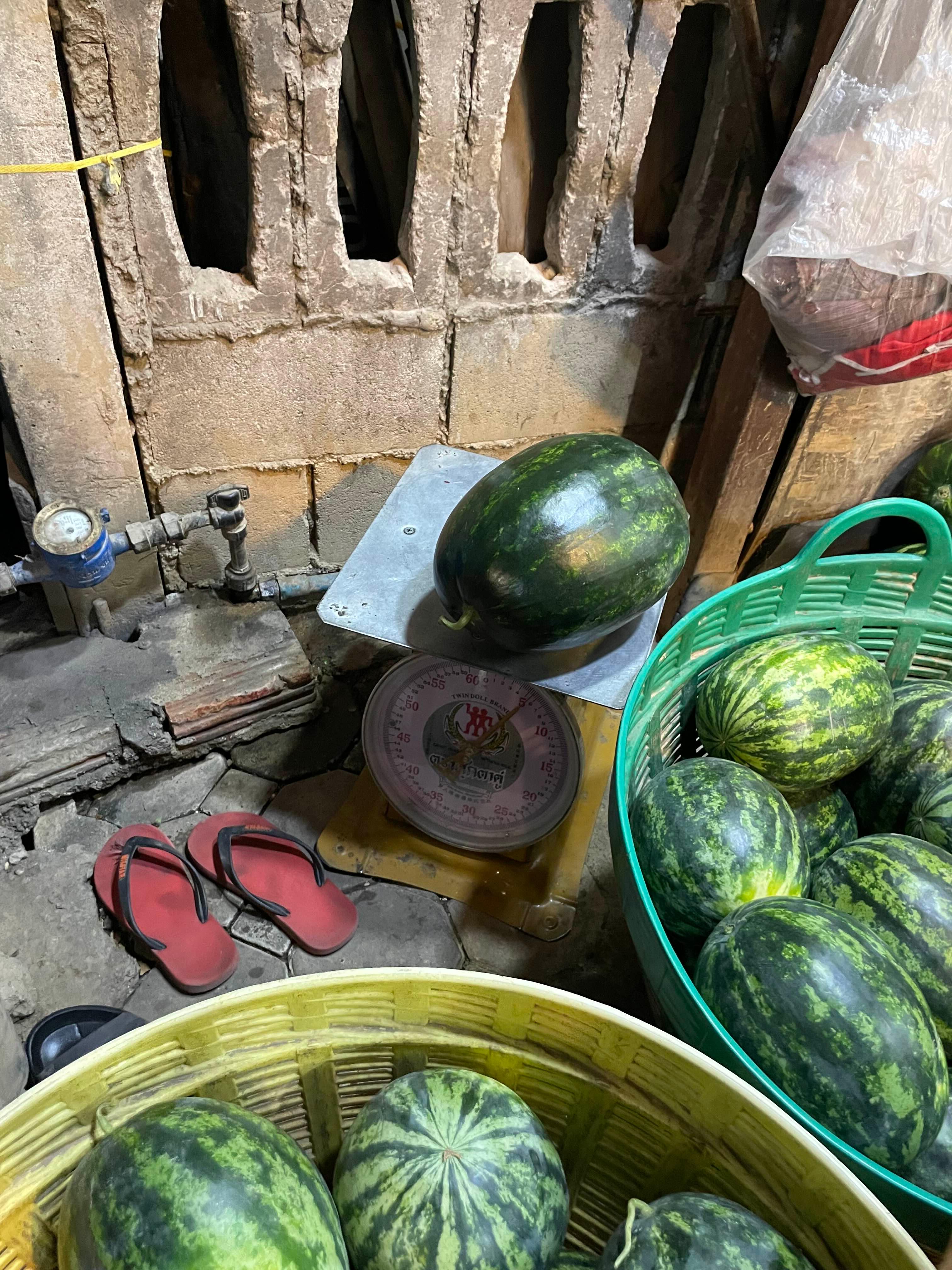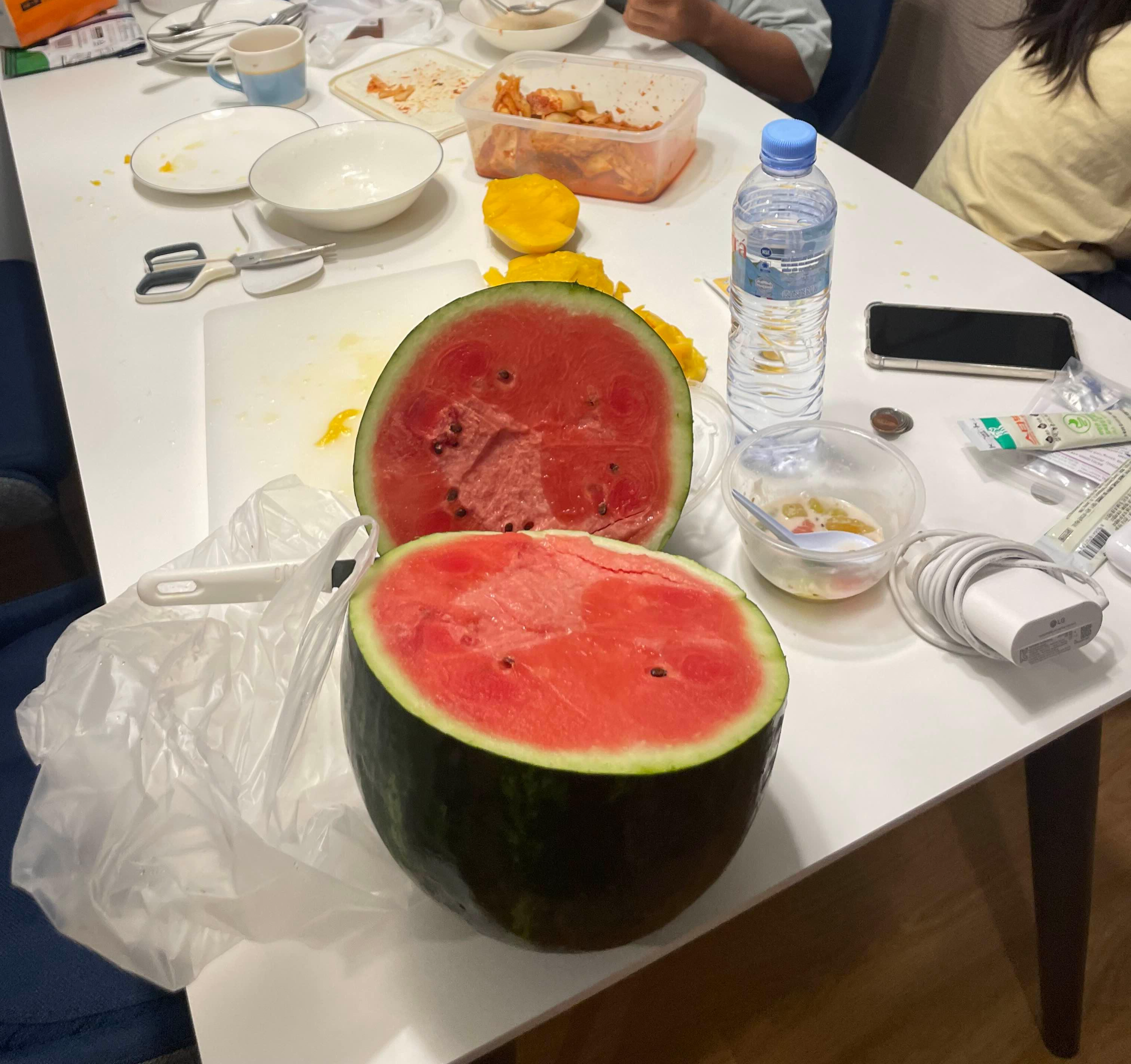 숙소에 들어와서 망고보다 수박을 먼저 맛보기로 한다.