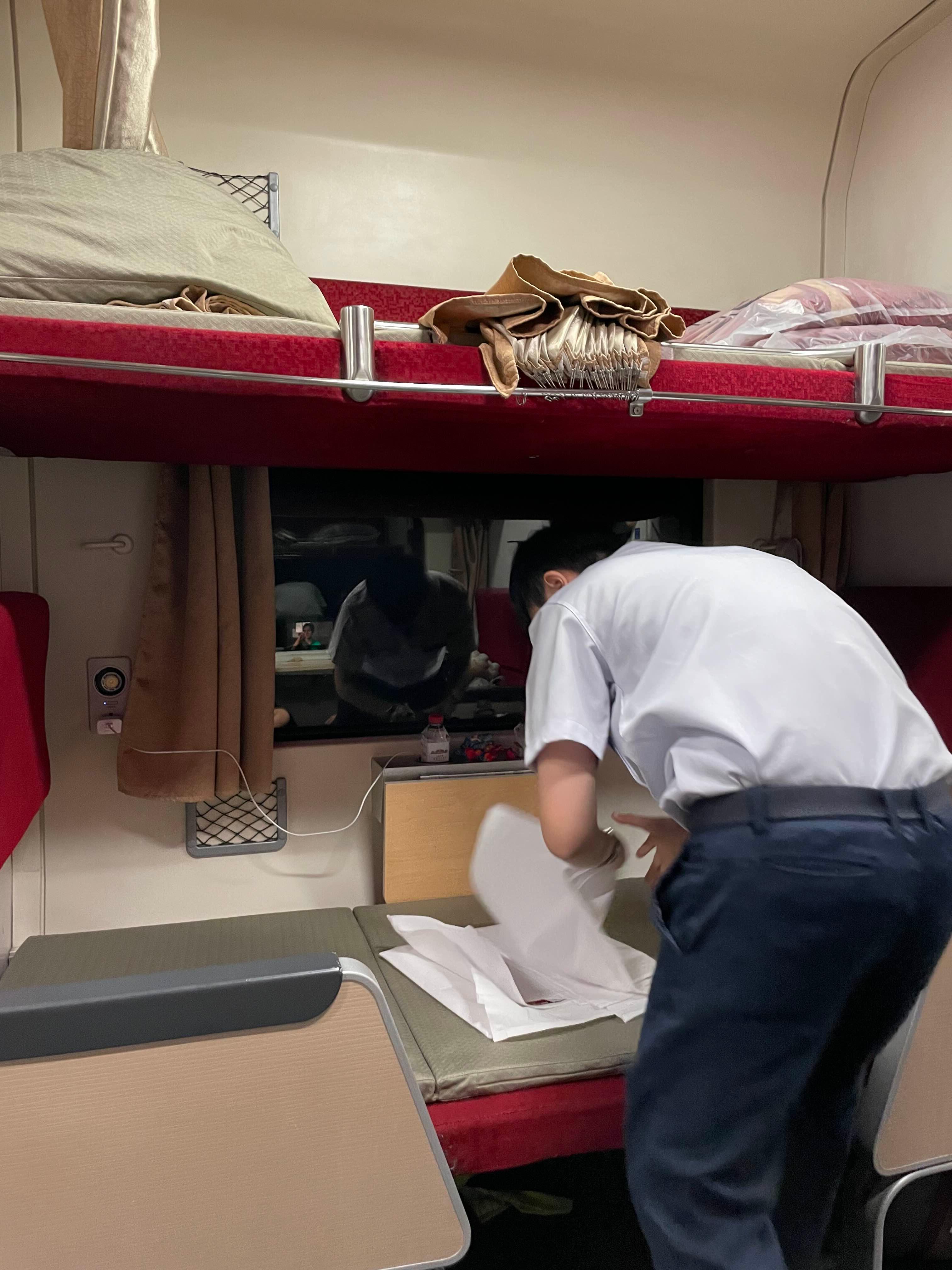 좌석을 침대칸으로 변경은 요청하면 바로 만들어 주시는데.... 만드시는 분의 손놀림이 생활의 달리에 나올법한 손놀림을 보여주시더군요.