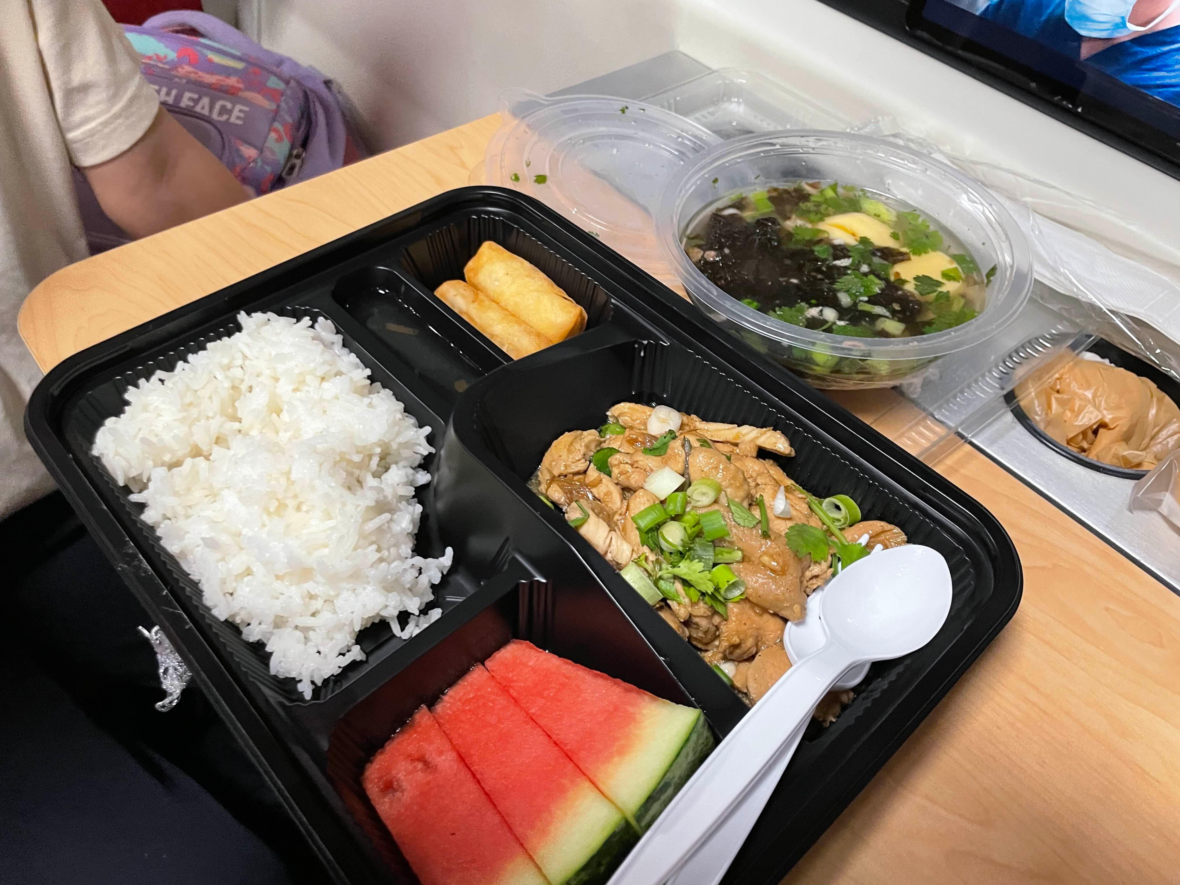 그래서, 치킨밥으로 하나 주문! 가격은 190밧!! 가격은 시중에 판매되는 음식과 비교하면 비싼 편이지만!! 슬리핑 기차라는 특수성을 고려하여 맛보기 위해 하나 주문!