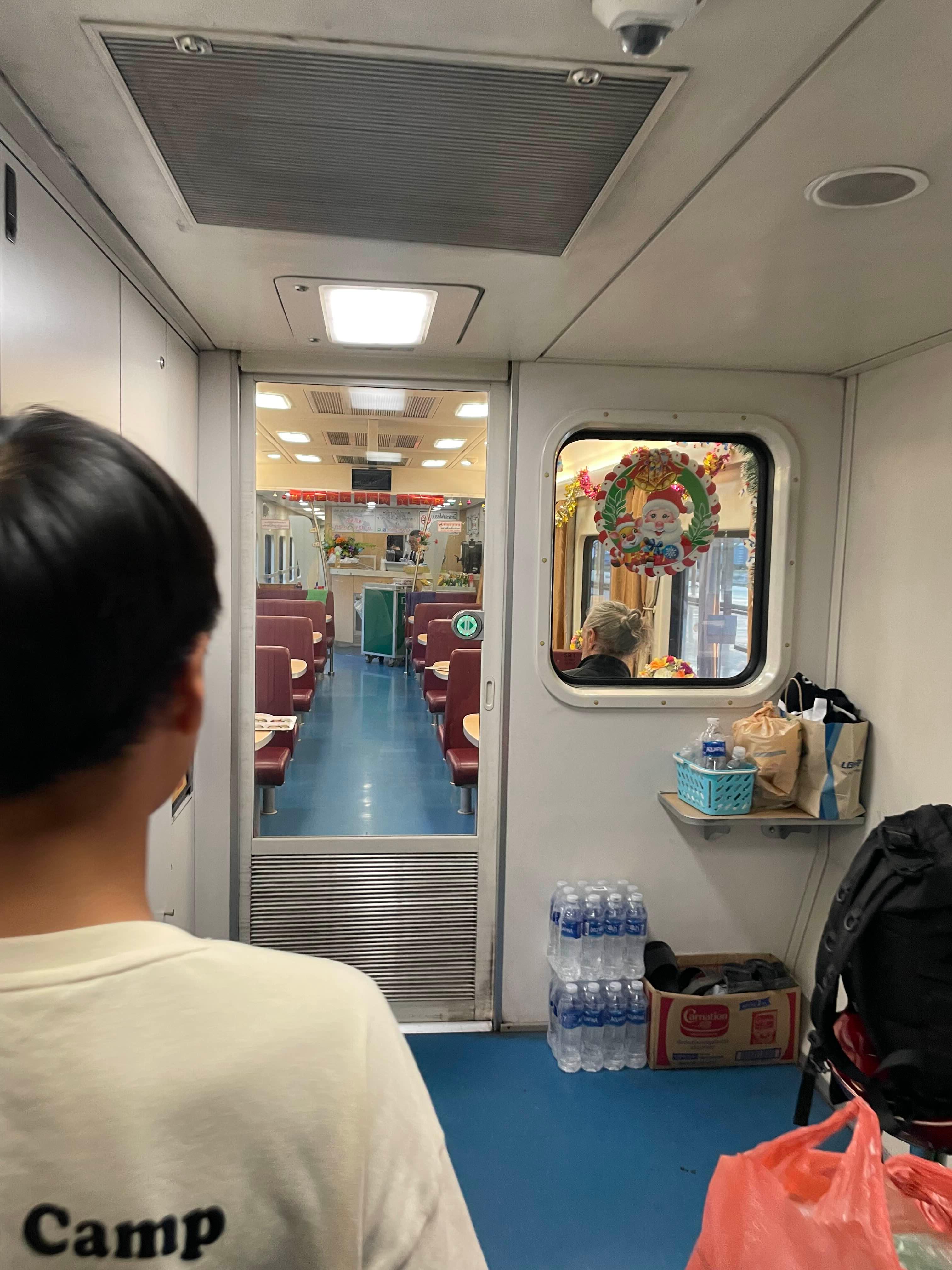 식당칸이 상당히 깔끔하다. 그 구형 식당칸은... 외부 창문이 오픈형이라.... 암튼! 음식을 하나 사 먹고 싶어서... 너무 위생상 안 좋아 보여서 안 사 먹었던 기억이!