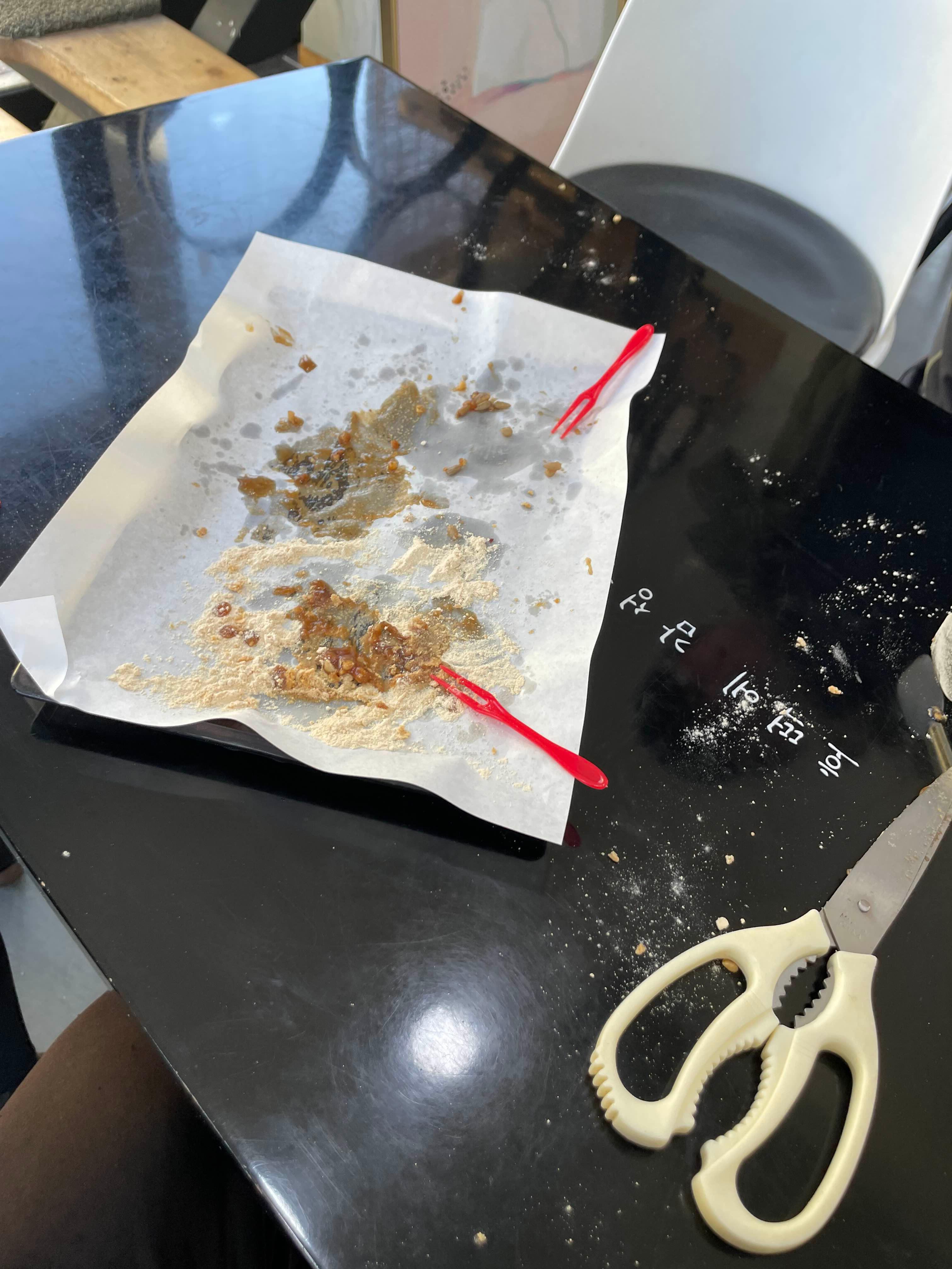 호떡당 맛이 가장 안 좋았던 호떡집! 호떡은 역시 기름에 구워야 한다. 기름에 안 구운 호떡은 담백함이 있어야 하는데.. 좀 퍽퍽하다. 그 퍽퍽한 호떡에 인절미 가루까지 뿌려져 있으니...