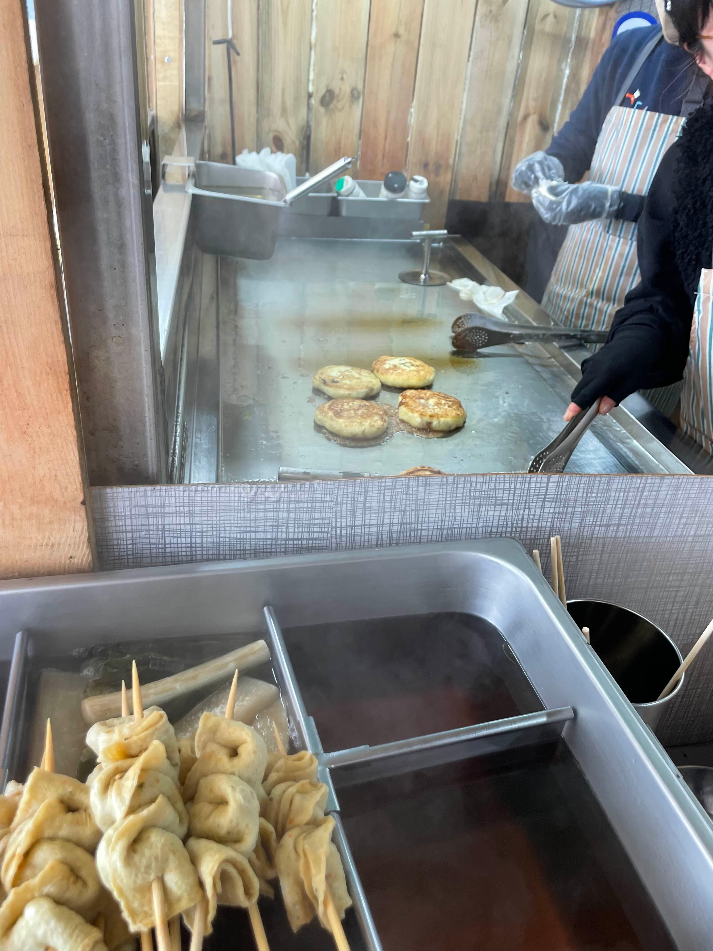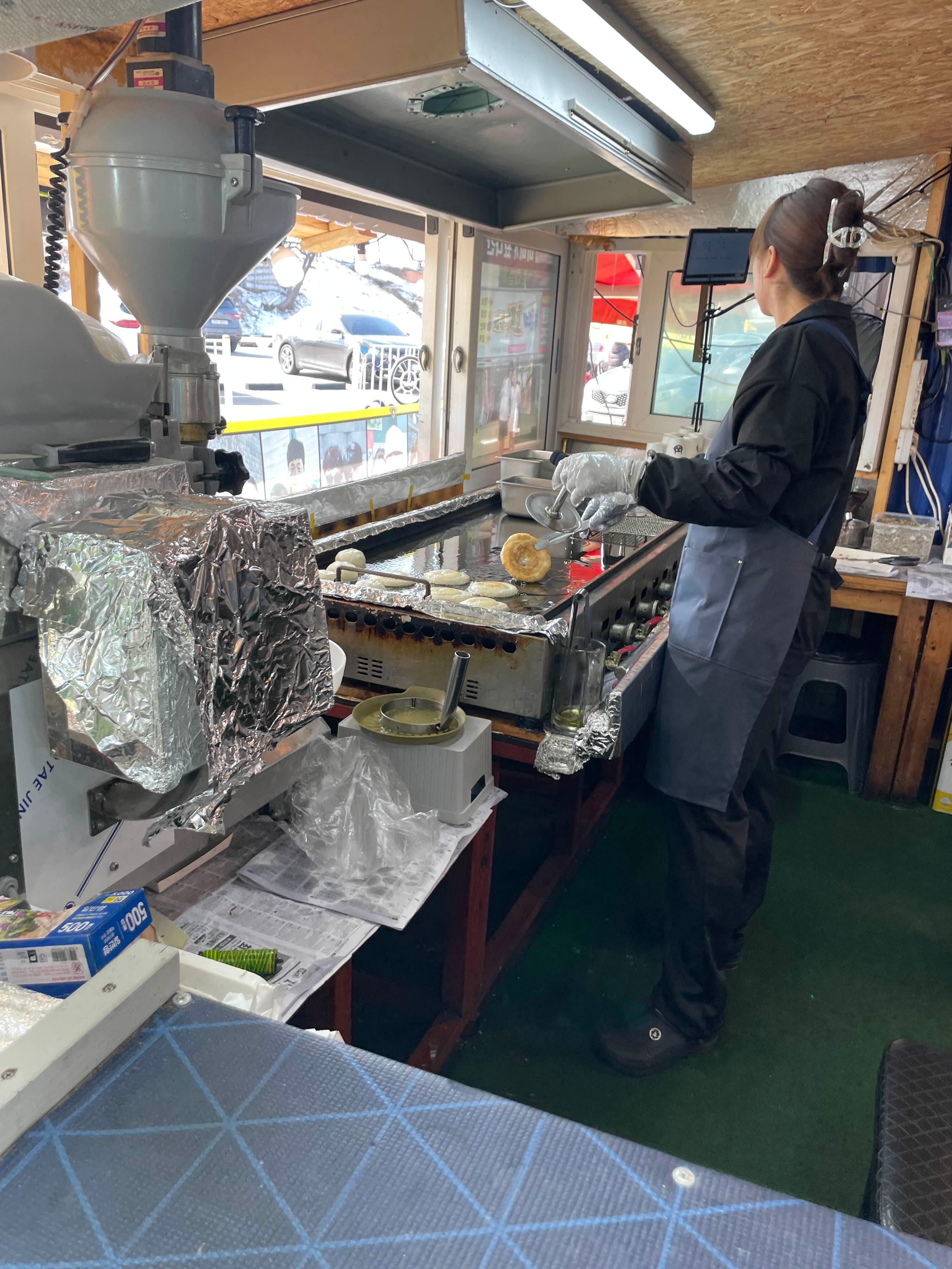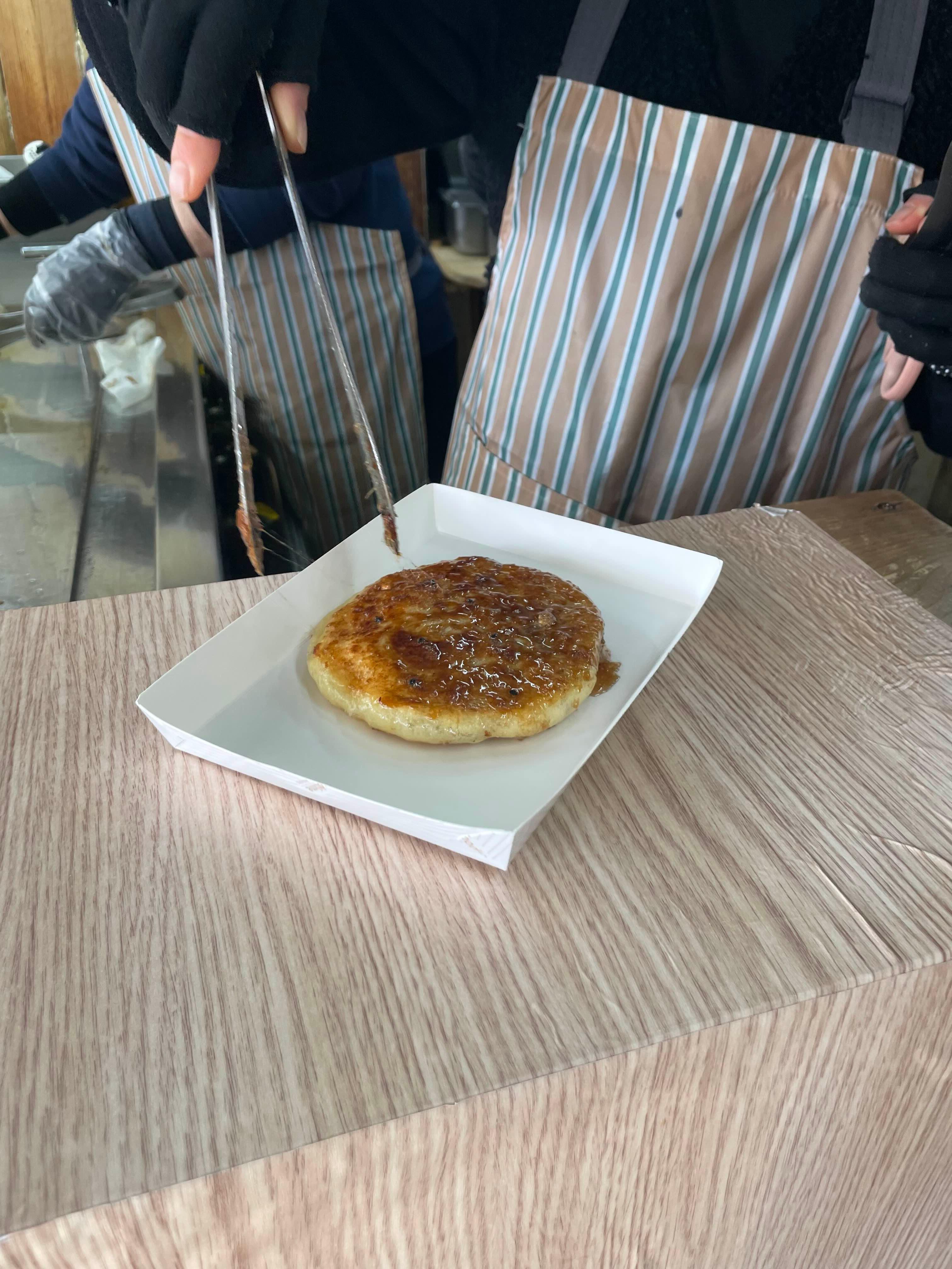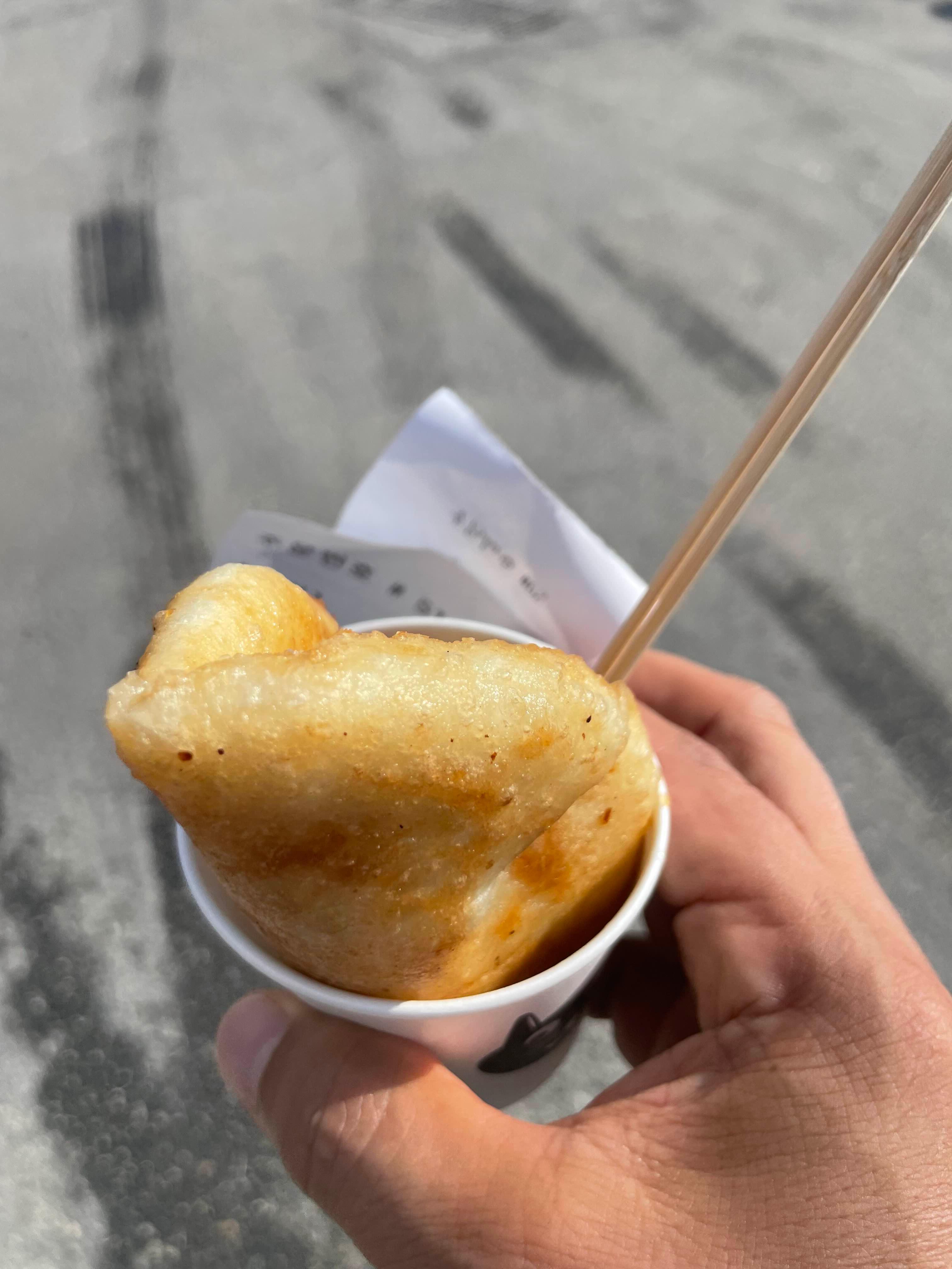 호떡을 가위로 썰어주시는 곳도 있고, 그냥 먹으라고 해주시는 곳이 있다.ㅎㅎ