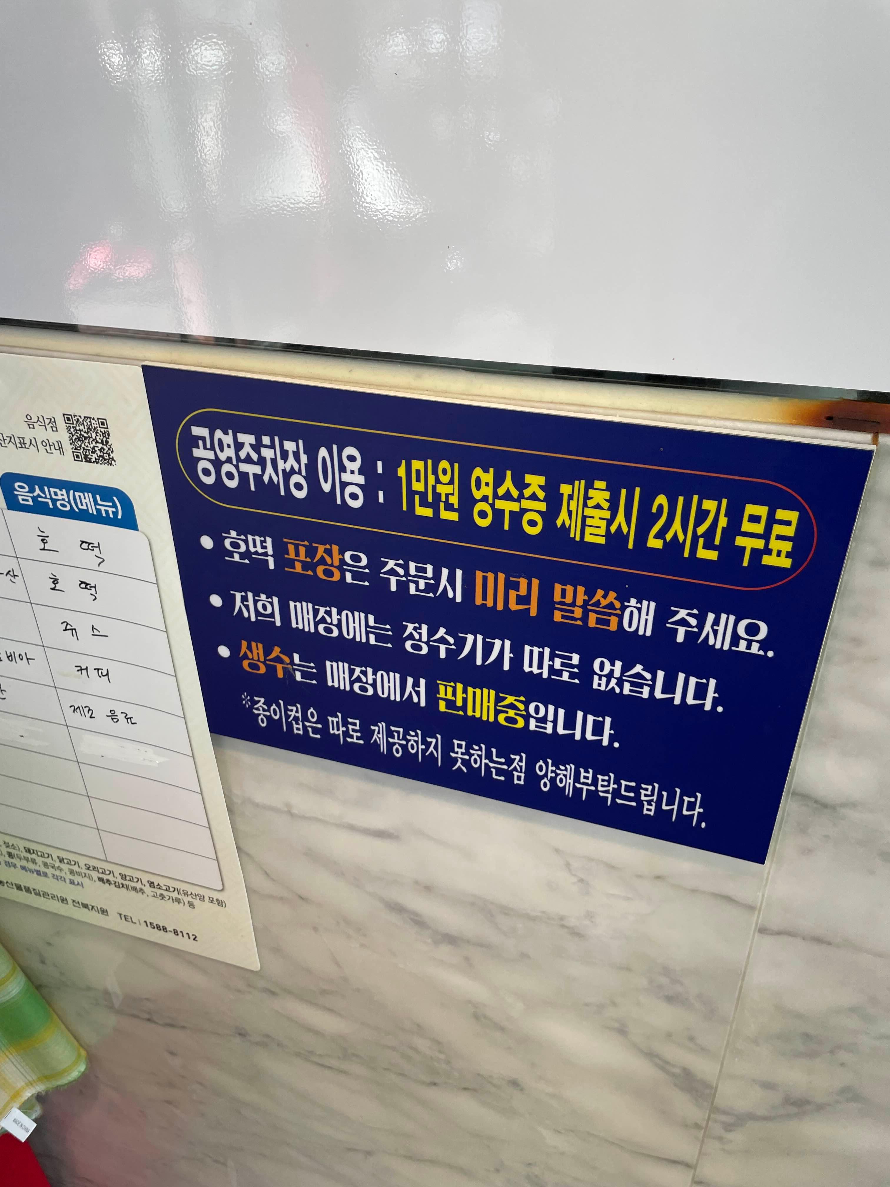 참고로 공용 주차장 1시간은 그냥 차단기가 오픈된다. 2시간 주차는 식당에서 영수증 가져가면 무료오픈! 1만 원까지 주문해서 먹을만한 식당이 있는가는 모르겠으나!!