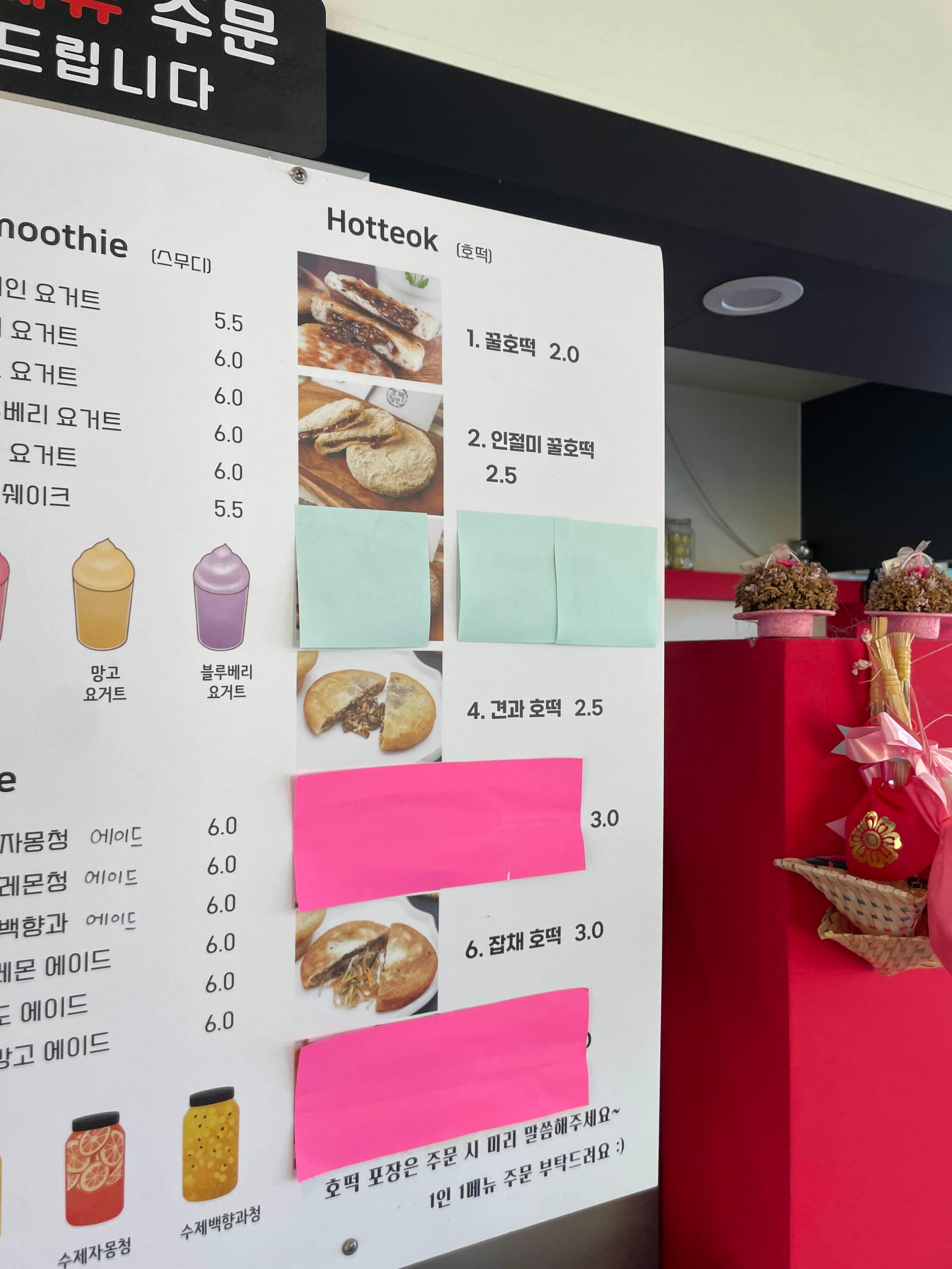 메뉴판에 호떡 메뉴가 7개 있는데.... 3개는 안된다.
