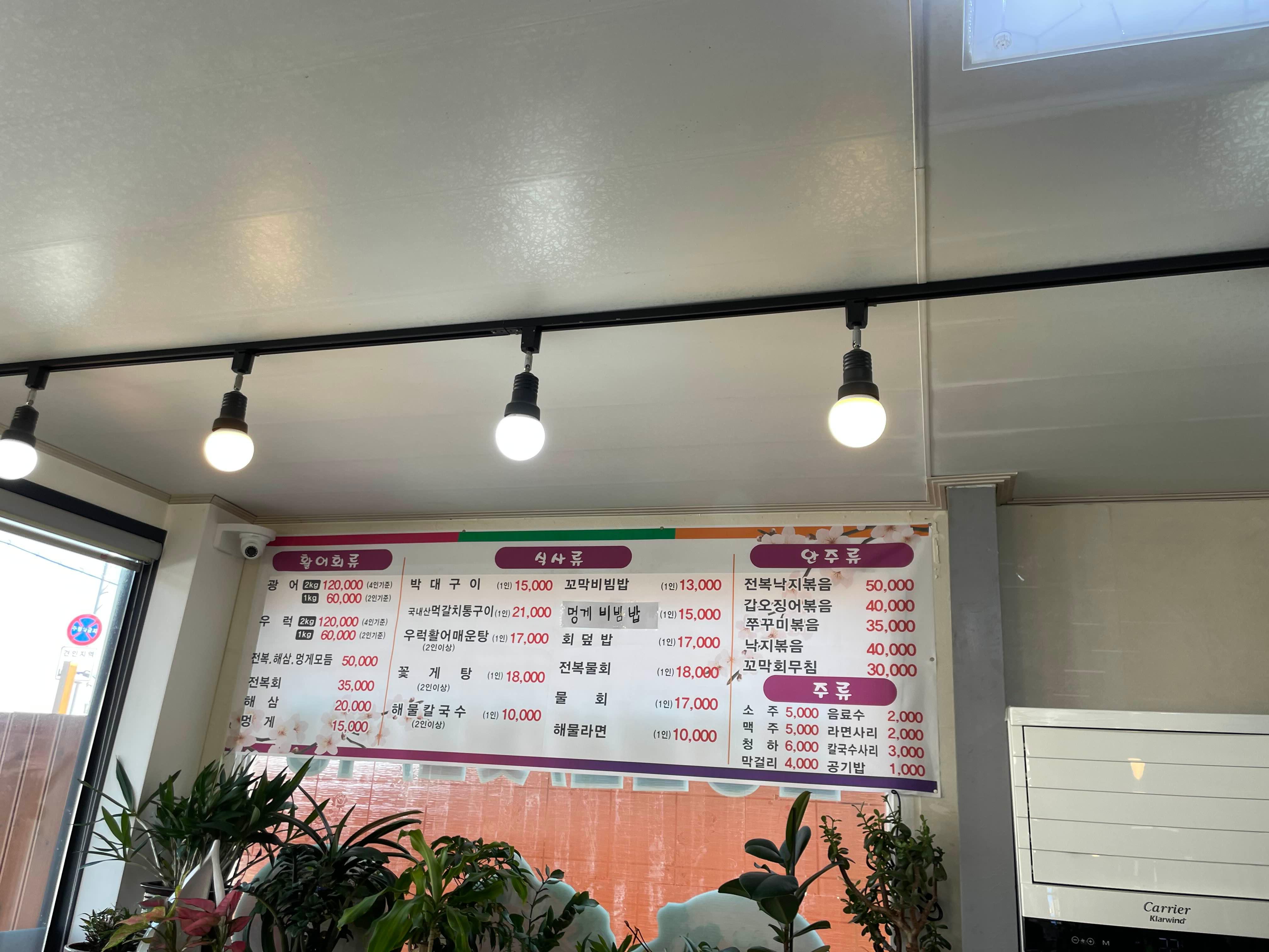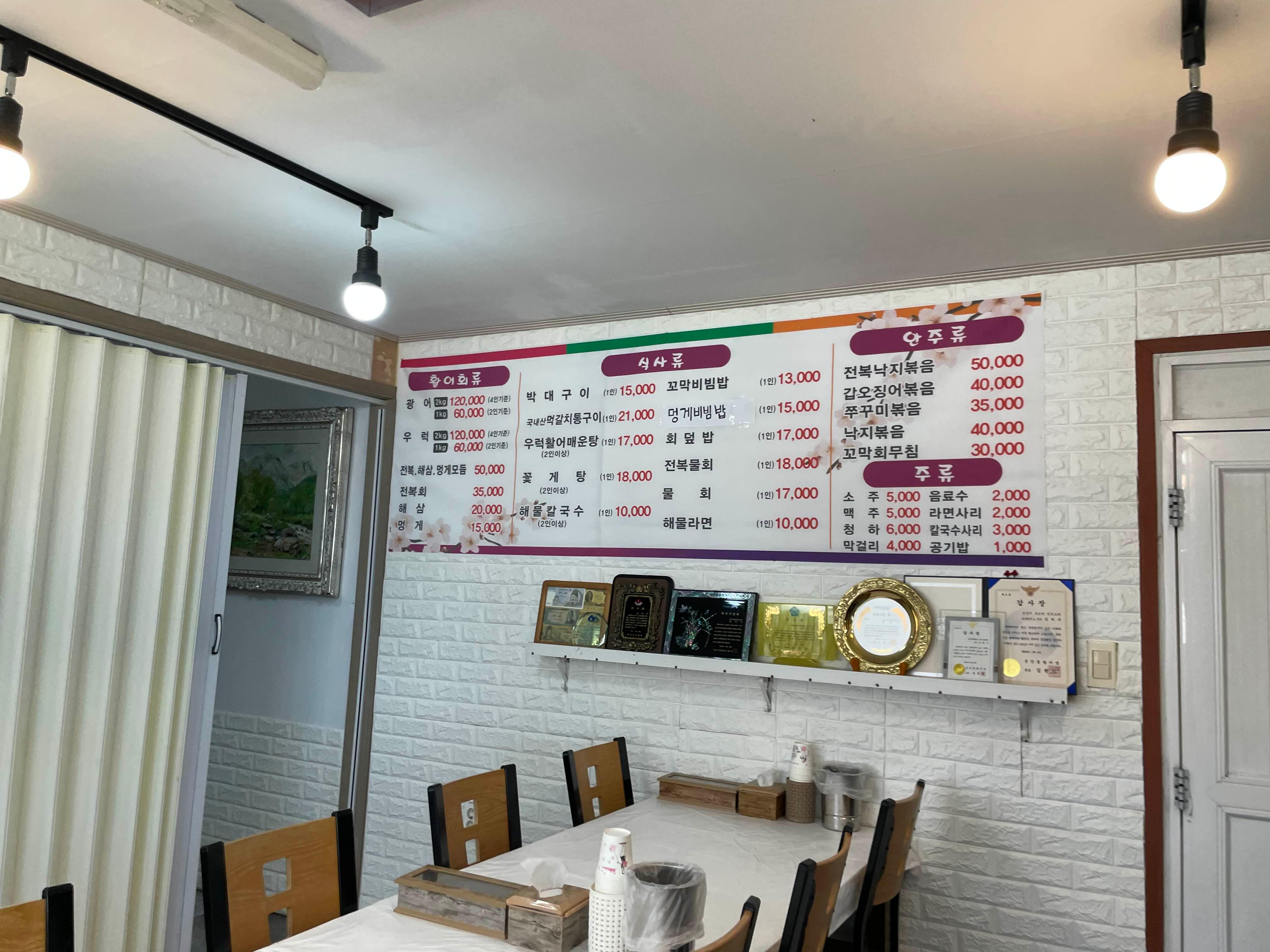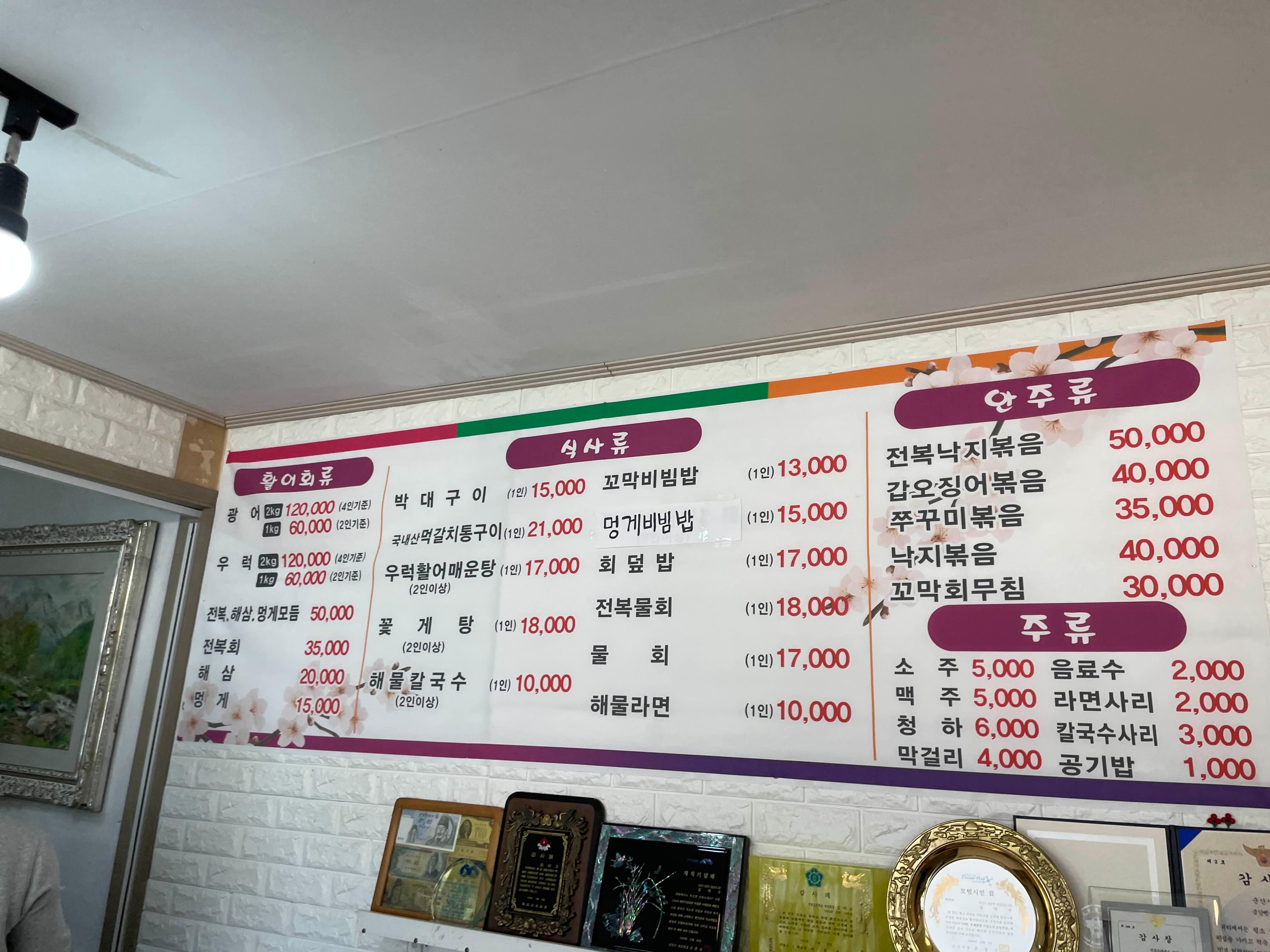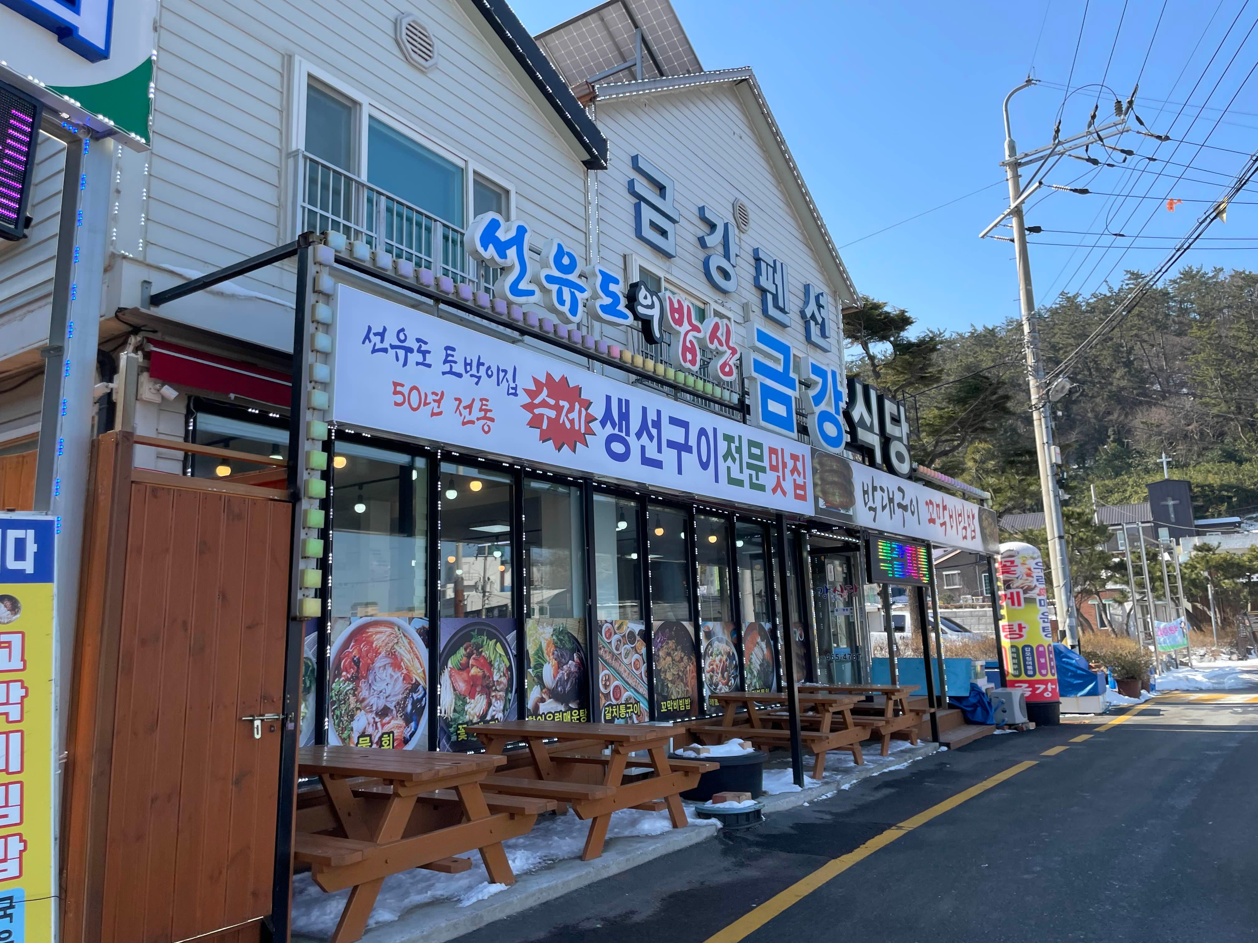 사람들이 많이 없다. 선유도에 도착하여... 3개 정도 식당을 골랐는데.... 그중 금강식당으로 들어갔다.