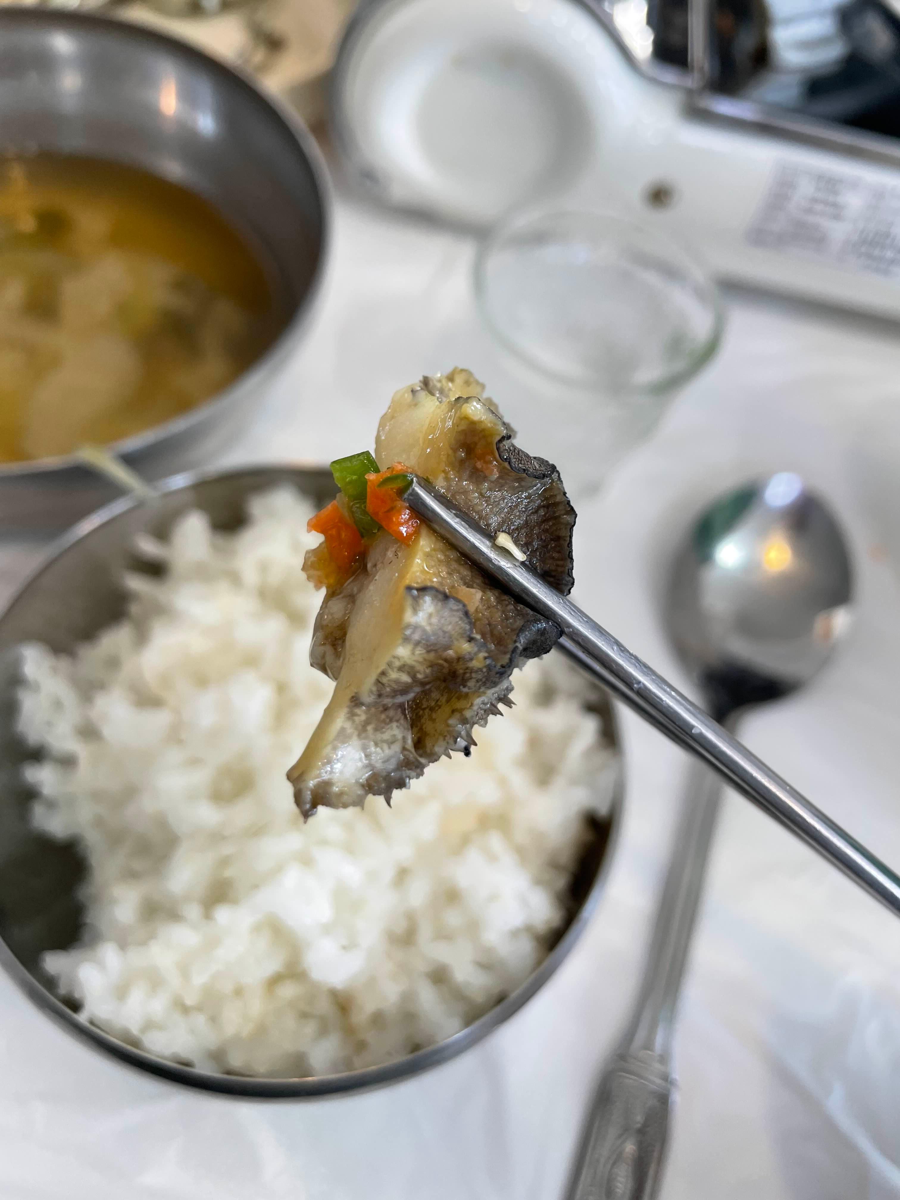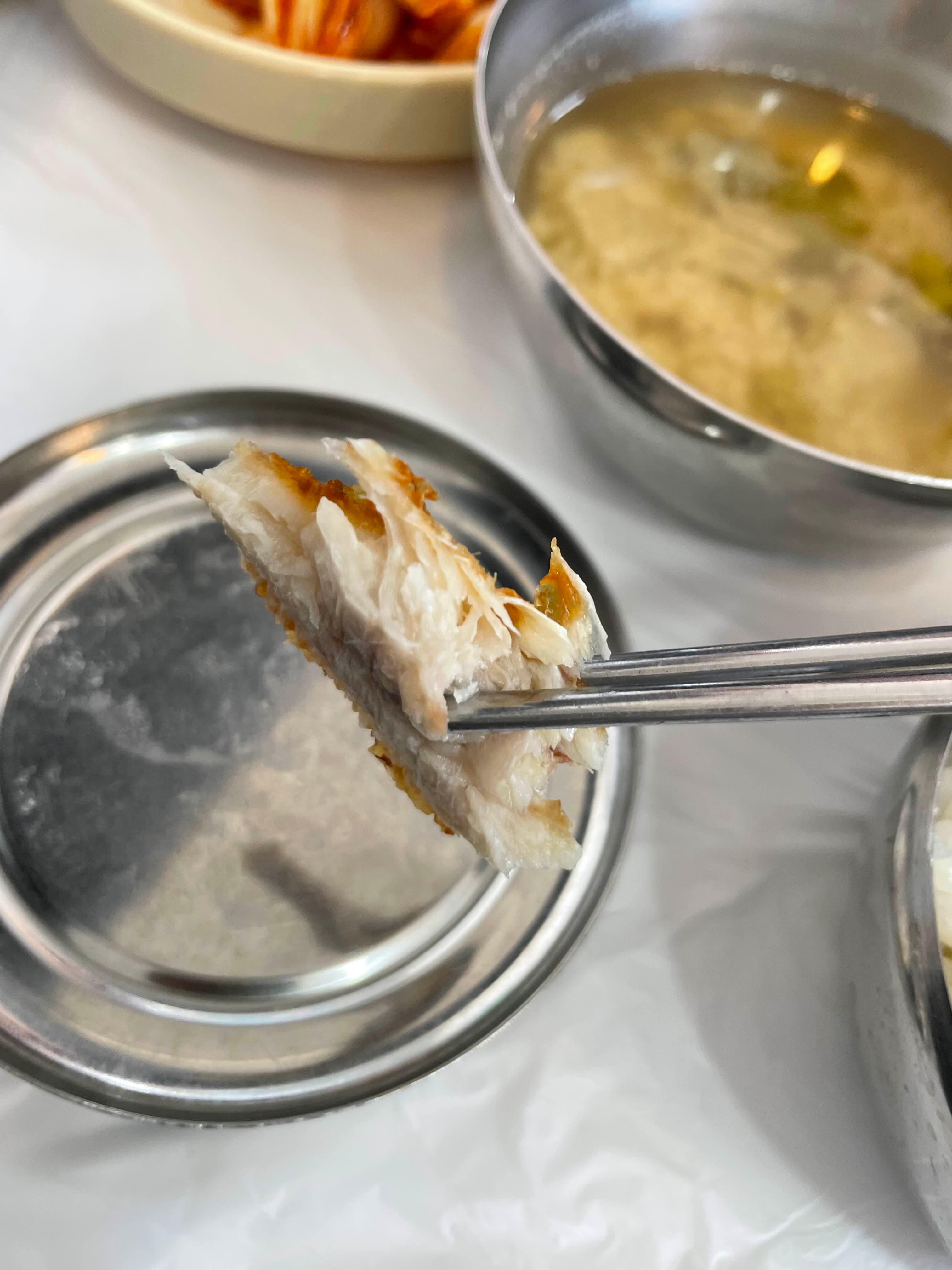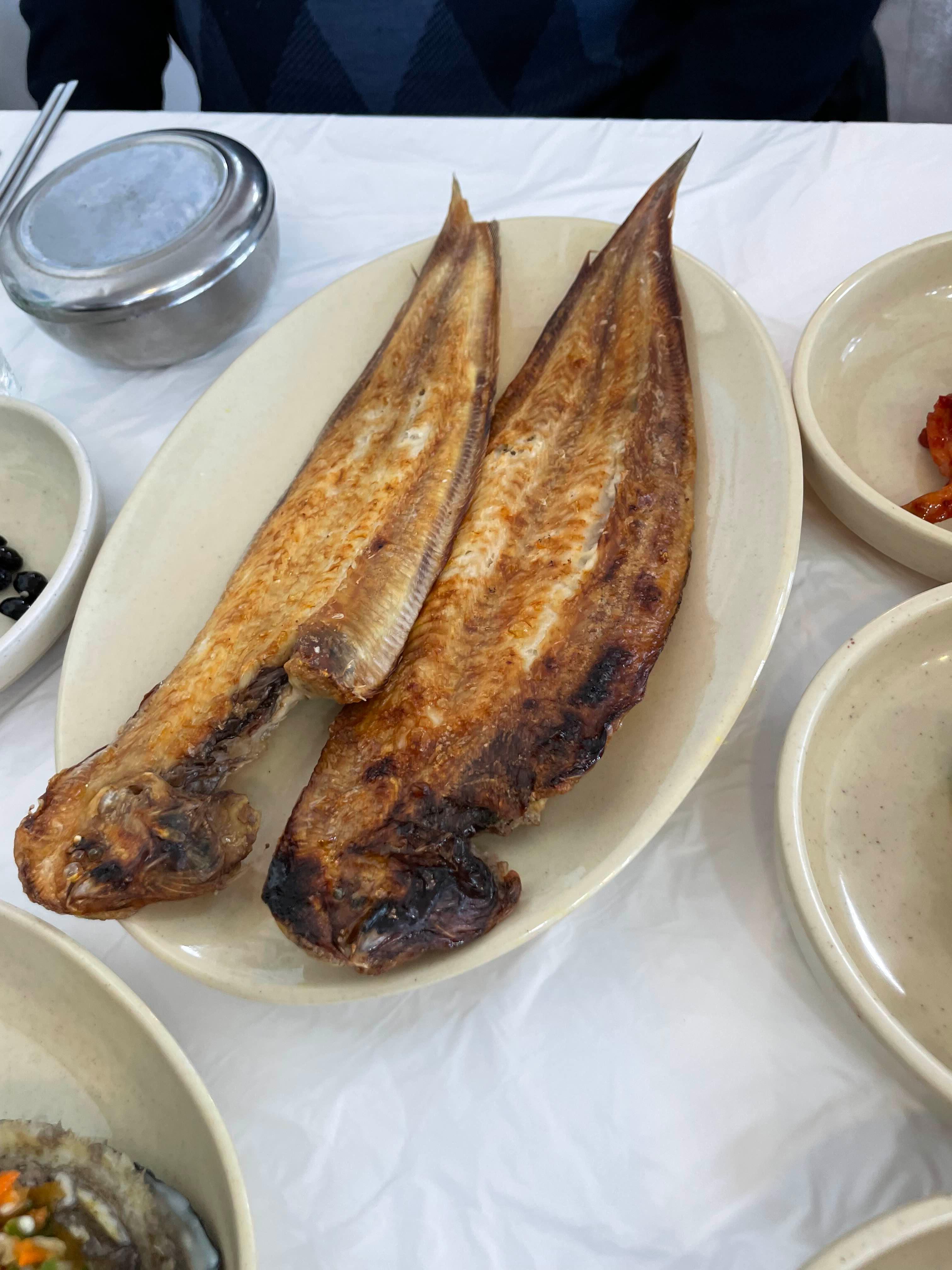 박대구이는 2개가 나온다. 1인분인데, 2조각! 앗!! 다른 테이블에 갈치를 보니... 1인분인데 2개가 나오던데! 암튼 생선은 2세트로 나오나 보다.