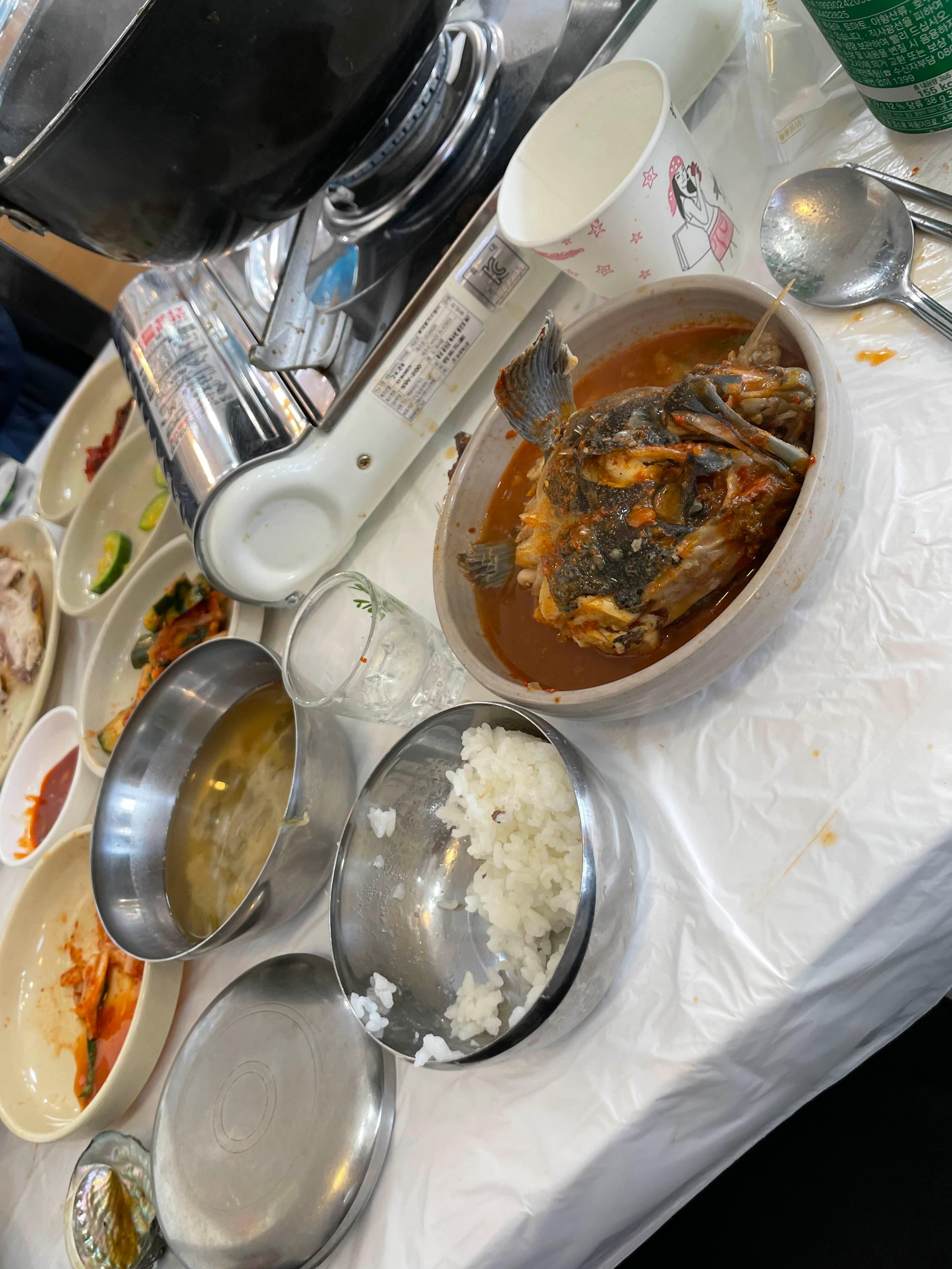 우럭 매운탕까지 술상인 근사하게 차려진 거 같다. ㅎ