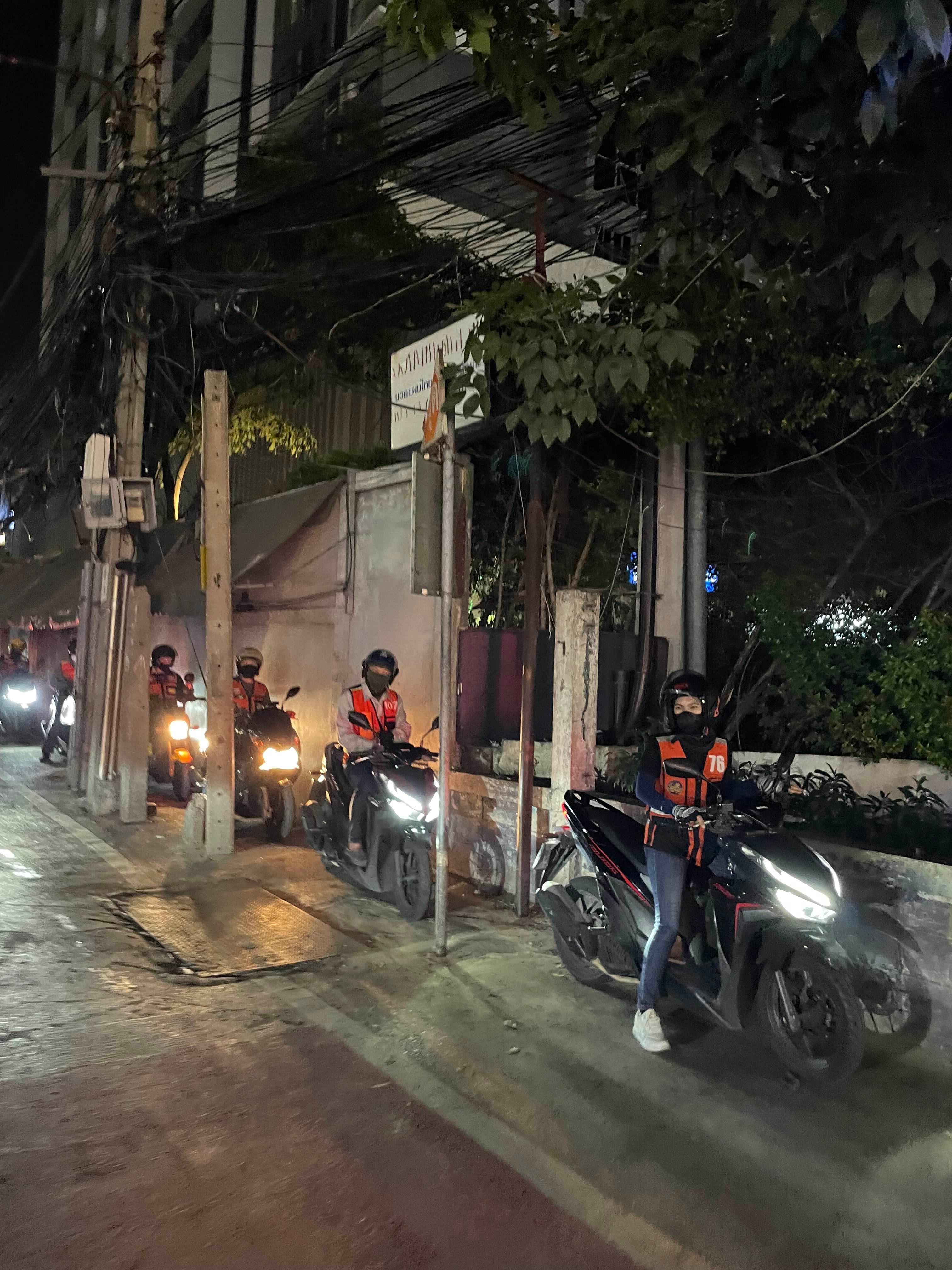 여기는 그랩이 아니라... 사람들이 줄 서있고, 오토바이들이 차래대로 사람들이 탑승하여 이동한다.
