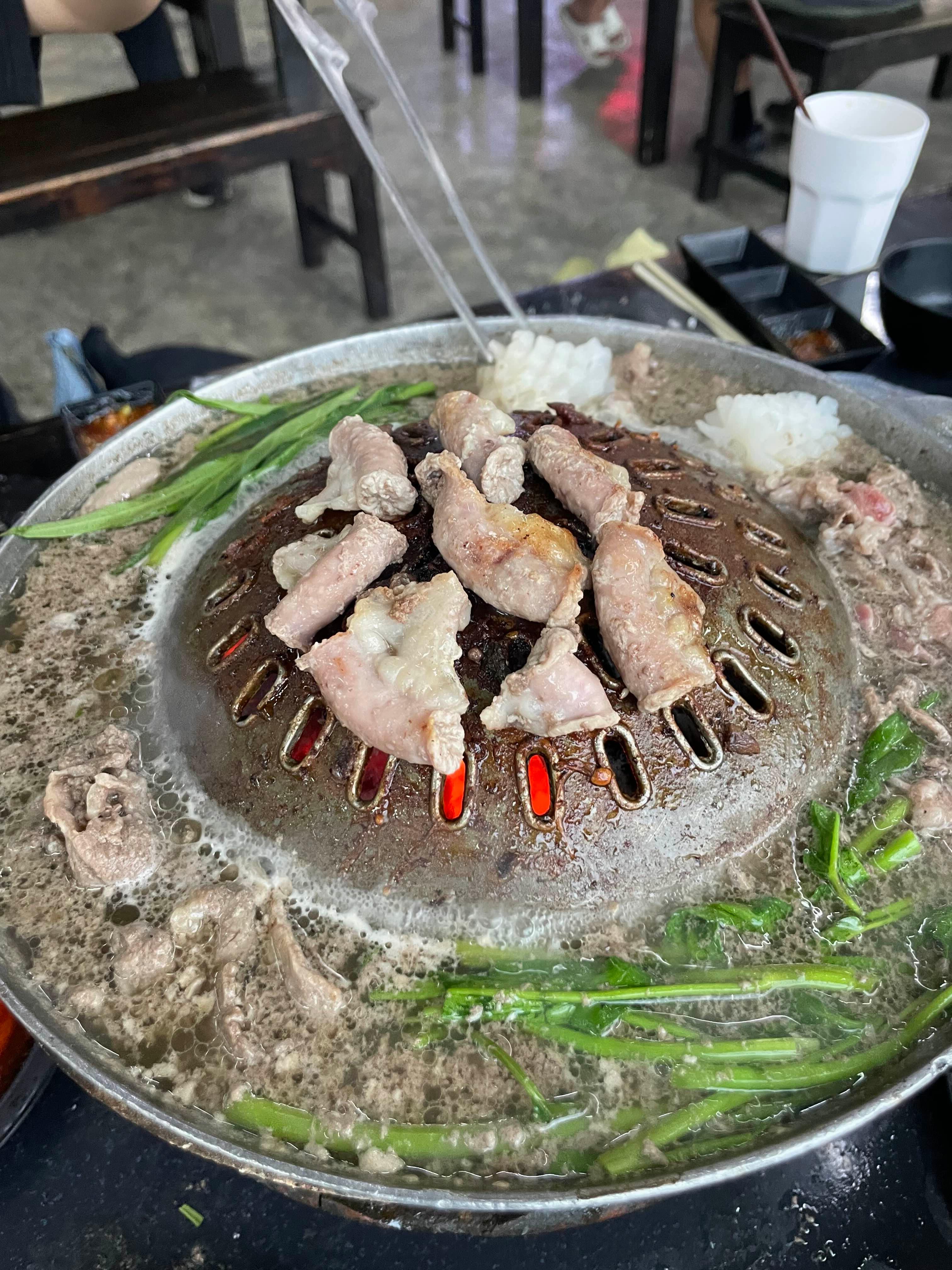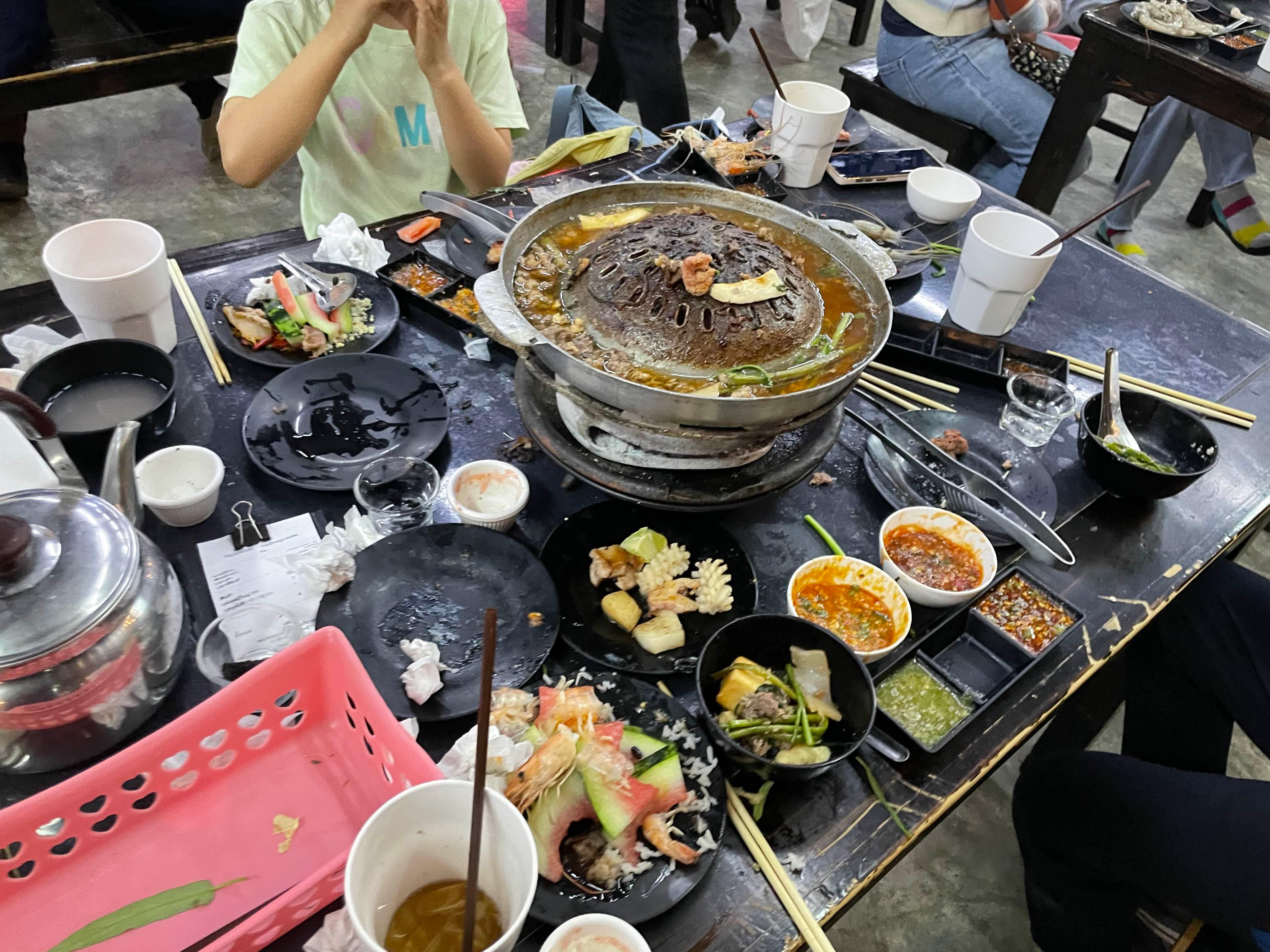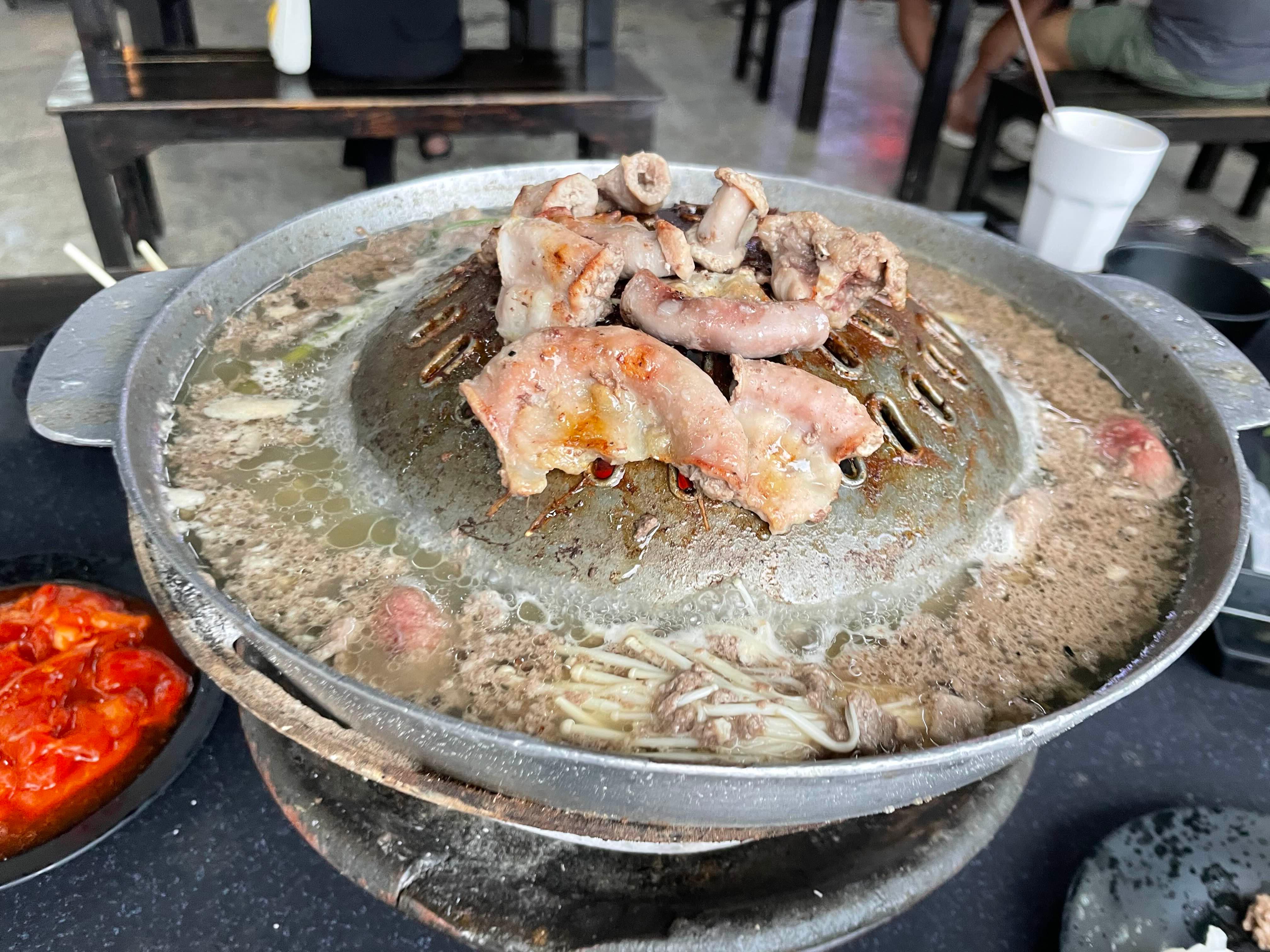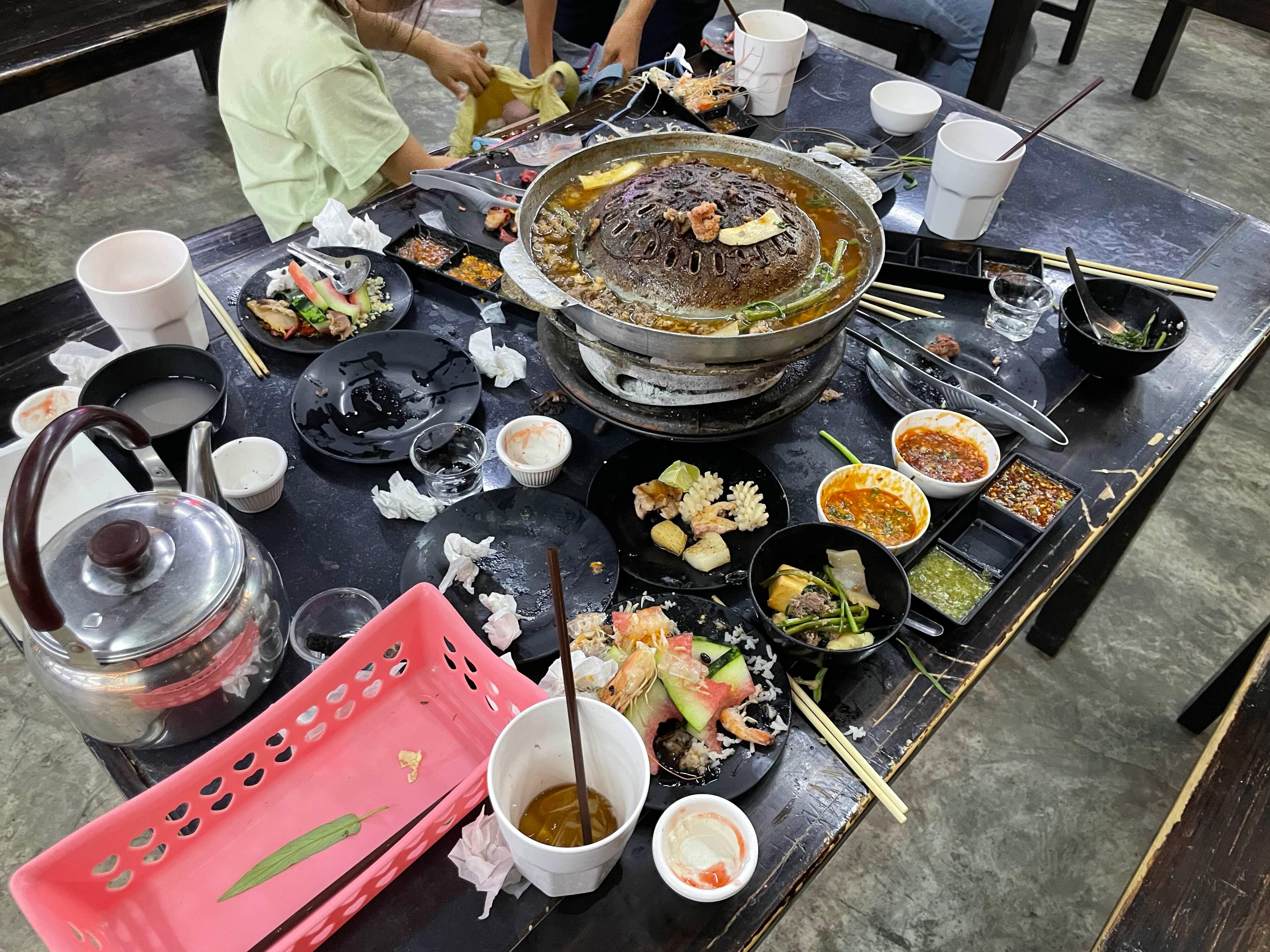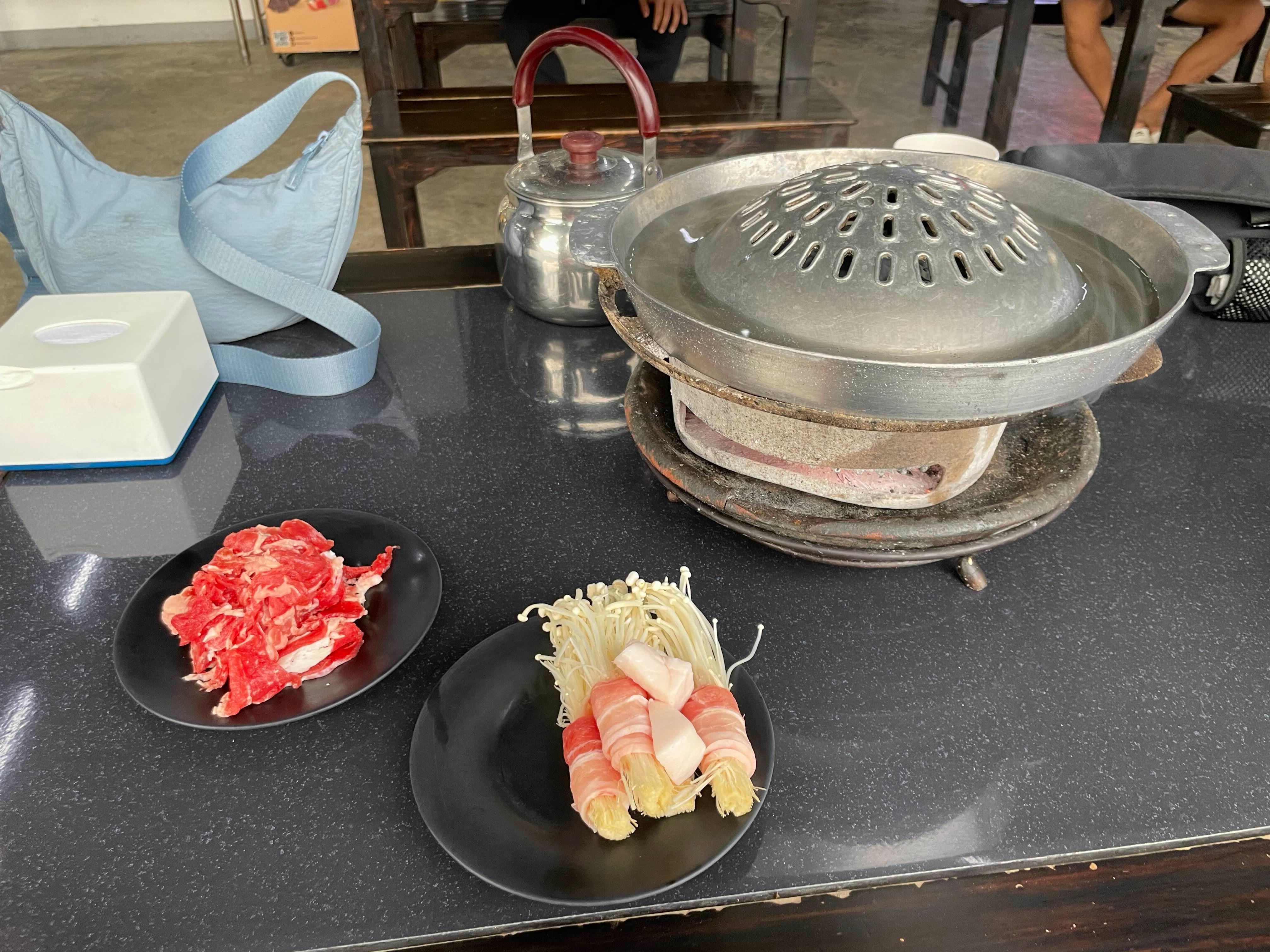 หมูกระทะ(mukatha) 위키를 찾아보니, 중국이 샤부샤부와 한국의 바비큐 문화가 합쳐져서 무까타가 되었다고 나온다.