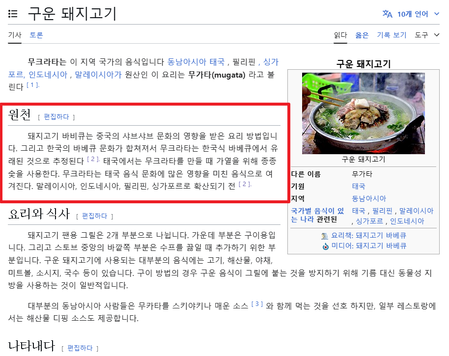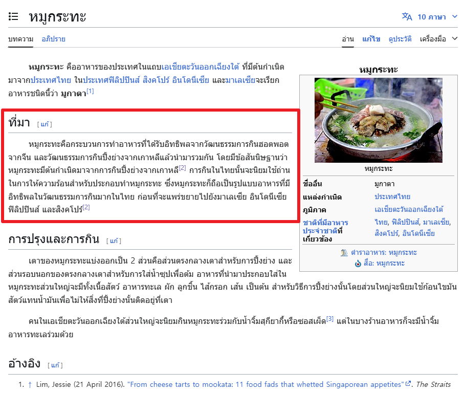 아참!! 무까타? 대한민국의 고기 굽는 영향을 받아 탄생한 음식이라고 한다. 정말 그런가? 태국어 위키 백과를 찾아본다.
