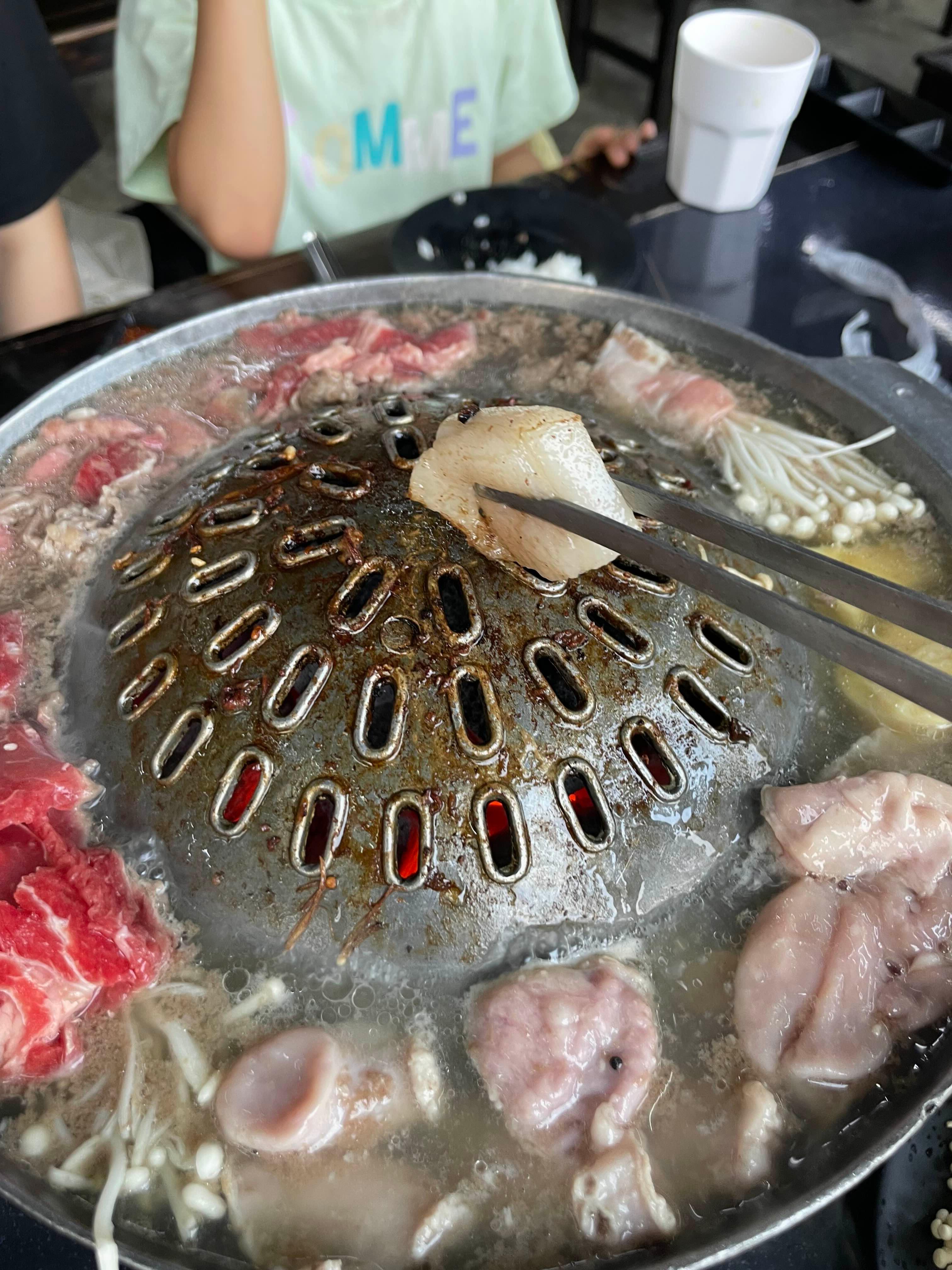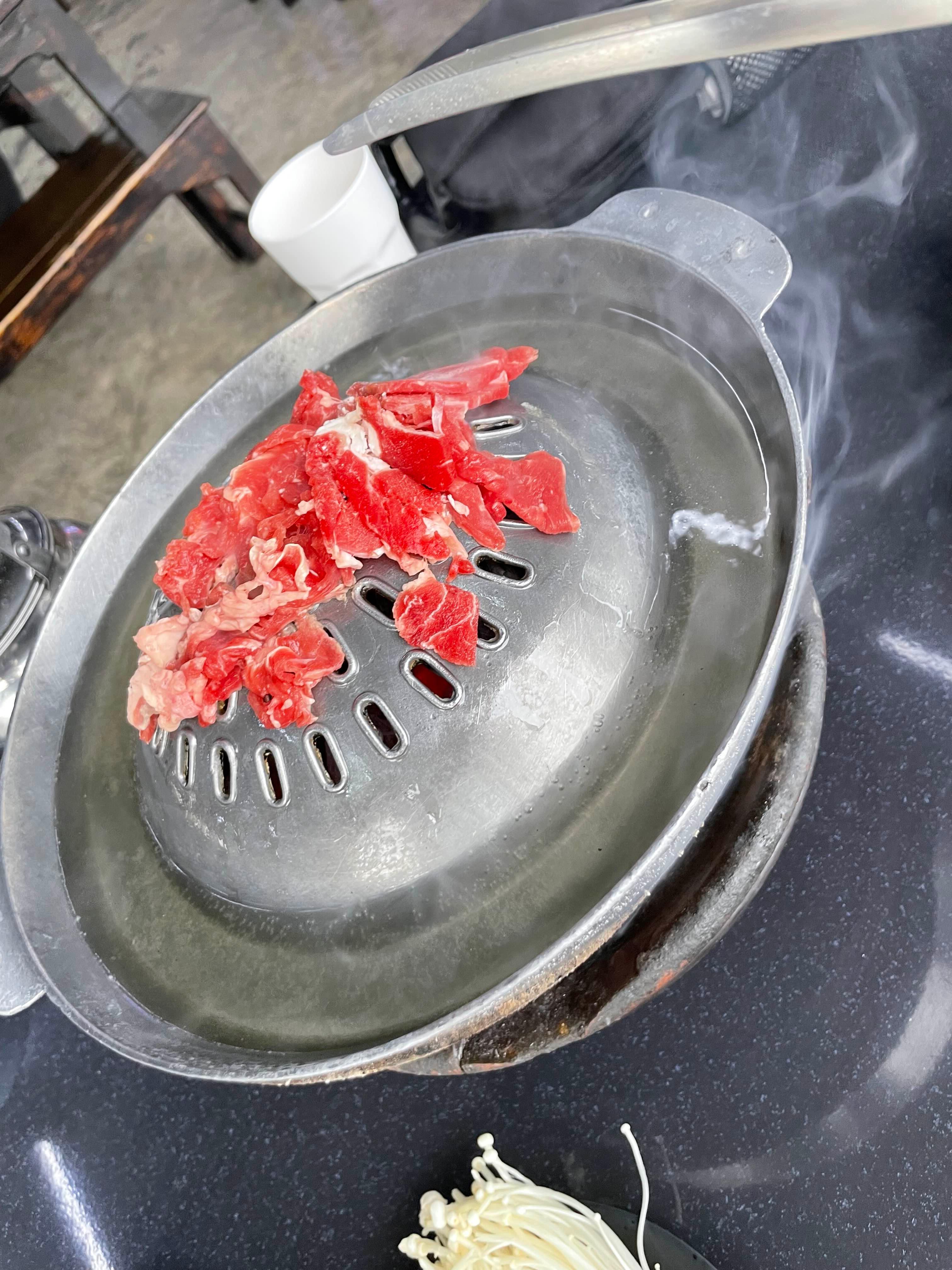 고기가 늘러 붙는다. 고기를 육수에 익혀서 구워서 먹는 게 더 효율적이며 맛이 좋음!
