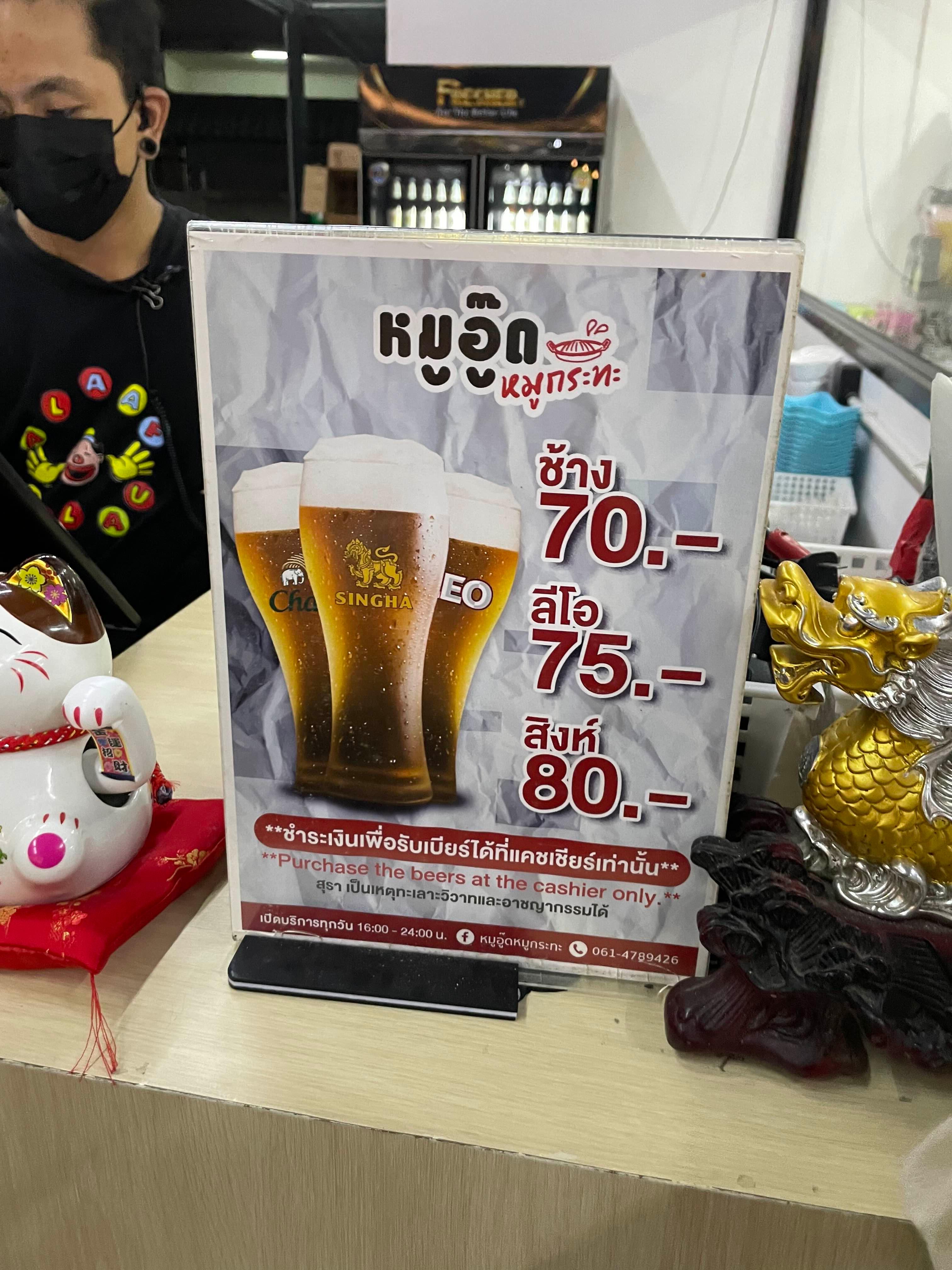 창 70밧, 레오 75밧, 싱하맥주는 80밧이다.