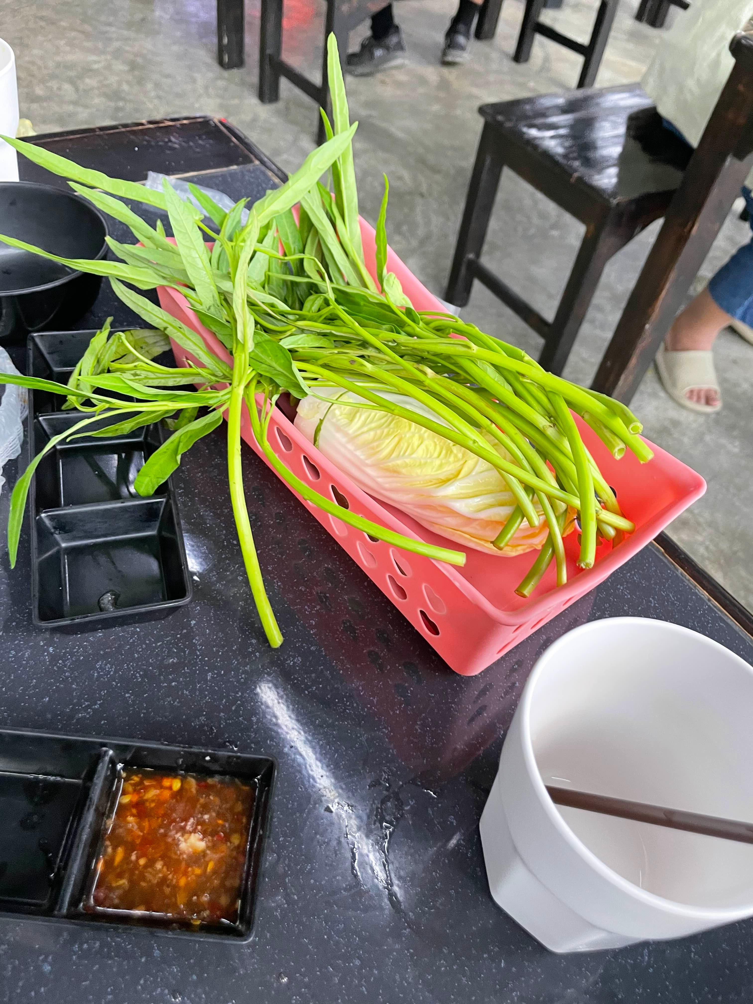 한쪽에는 채소!! 채소는 배춧잎과 중국 미나리인가? 이거 맛있음!