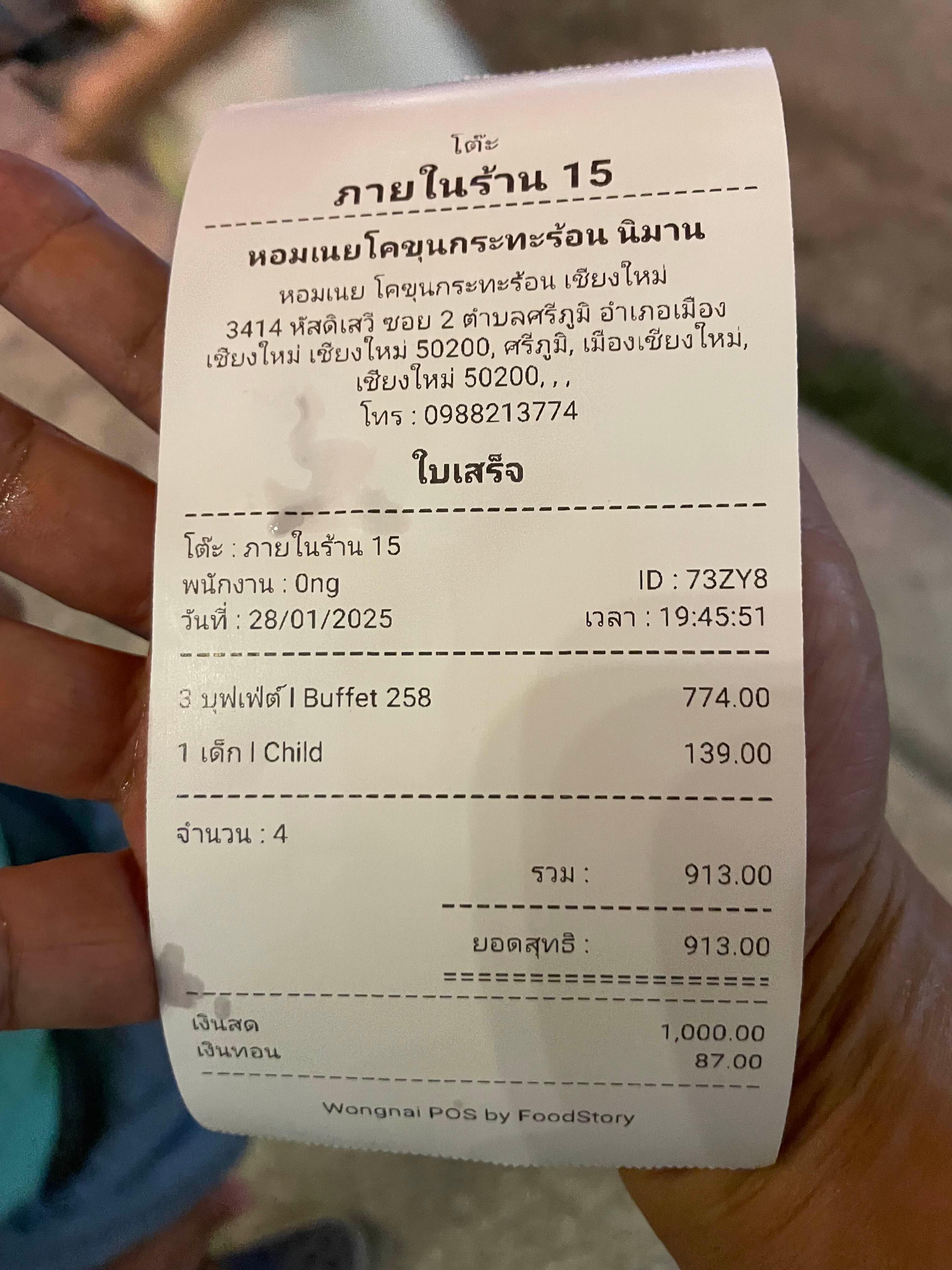성인 3명, 아이 1명 해서 913밧!(39,200원)