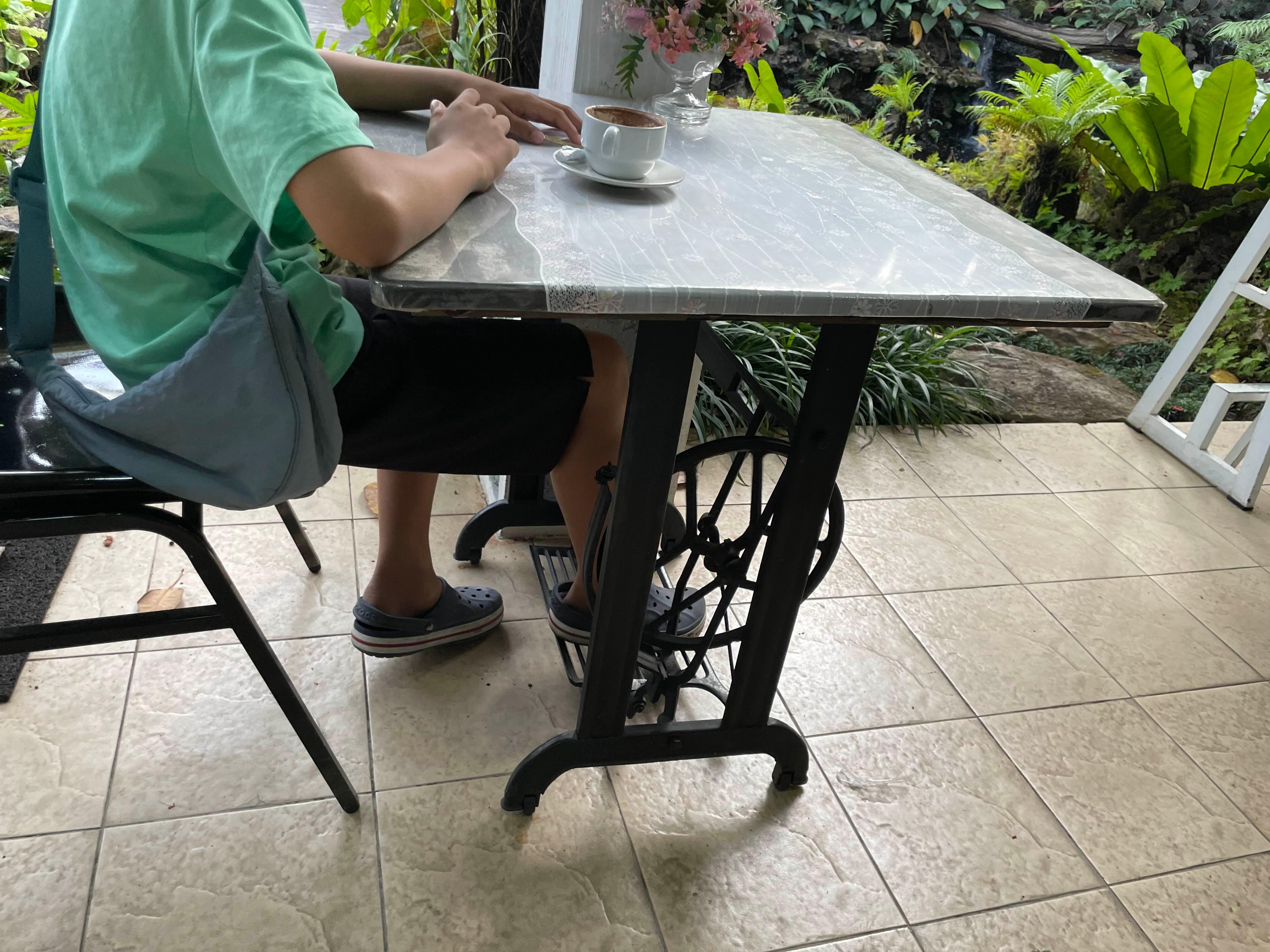 앗... 발로 구르는 밍싱기계를 커피 탁상으로 이용하는데, 이렇게 비슷한곳은... 그 식당에서도 많이 봤는데...
