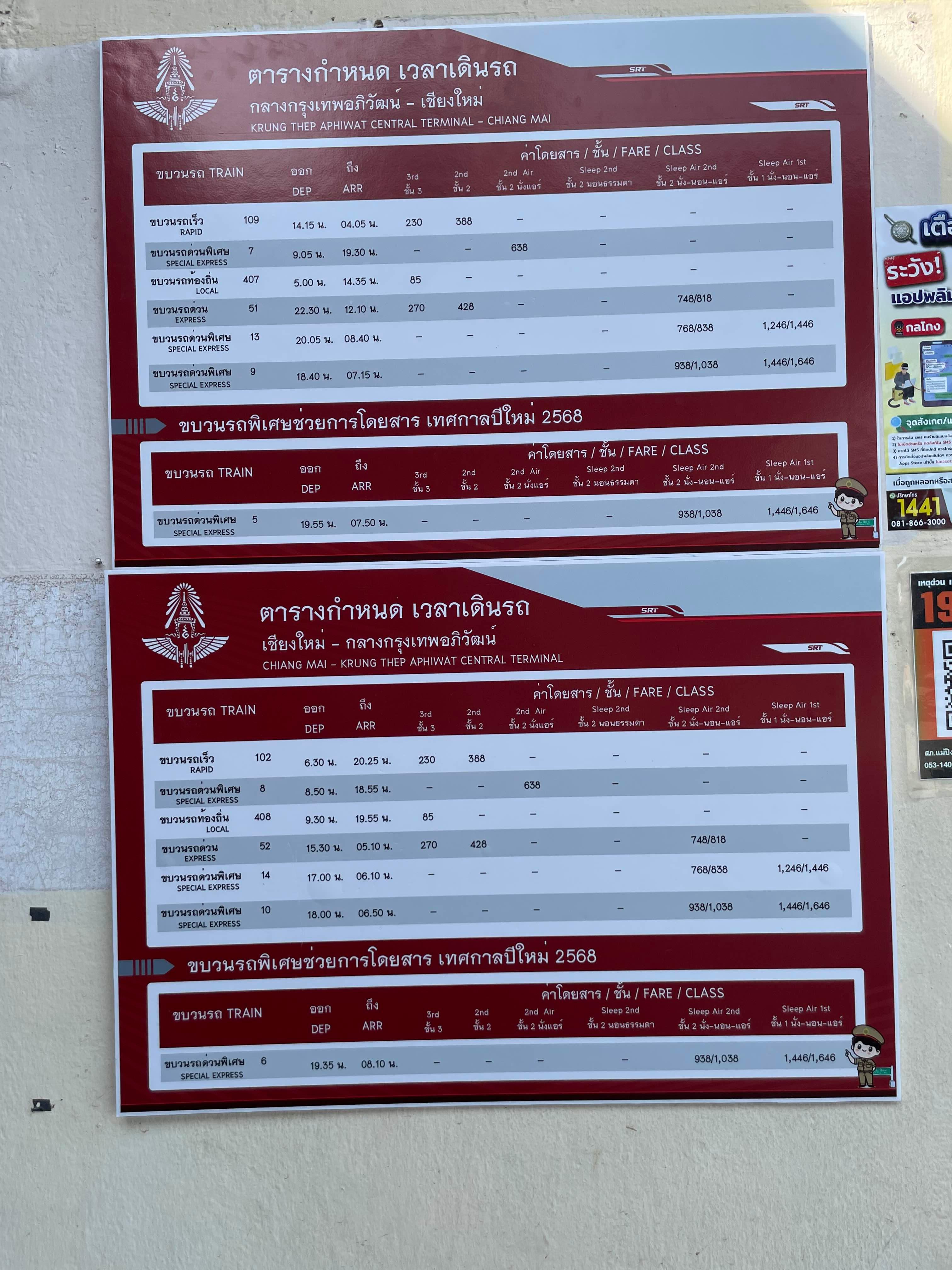 방콕에서 치앙마이로 이동하는 기차 편!!