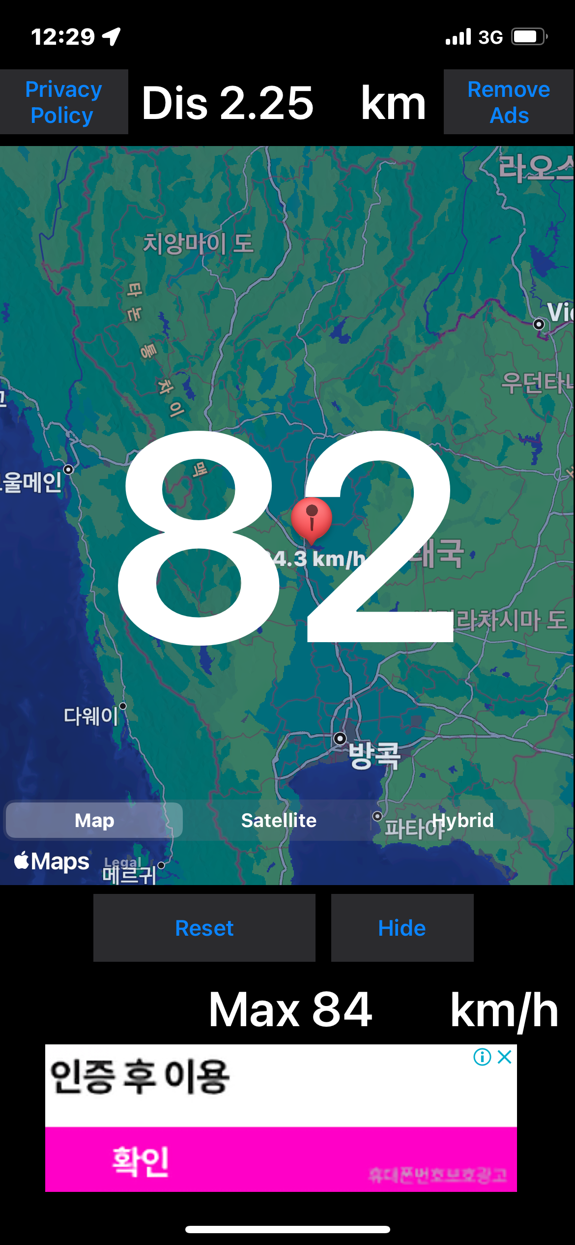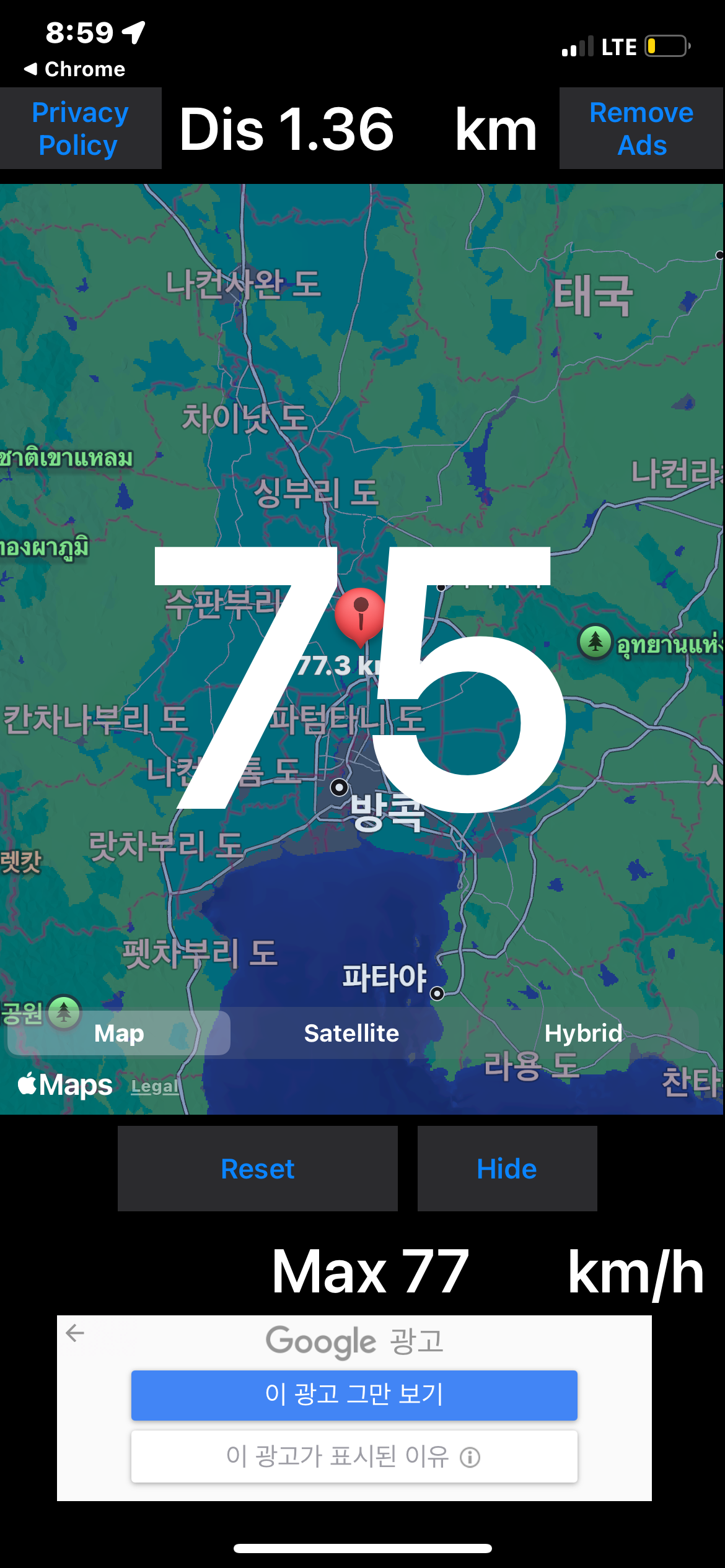 앗 그리고... 기차가 상당히 느리게 움직이는 거 같아서... GPS 속도측정 앱으로 측정해 보니... 대략 시속 75!