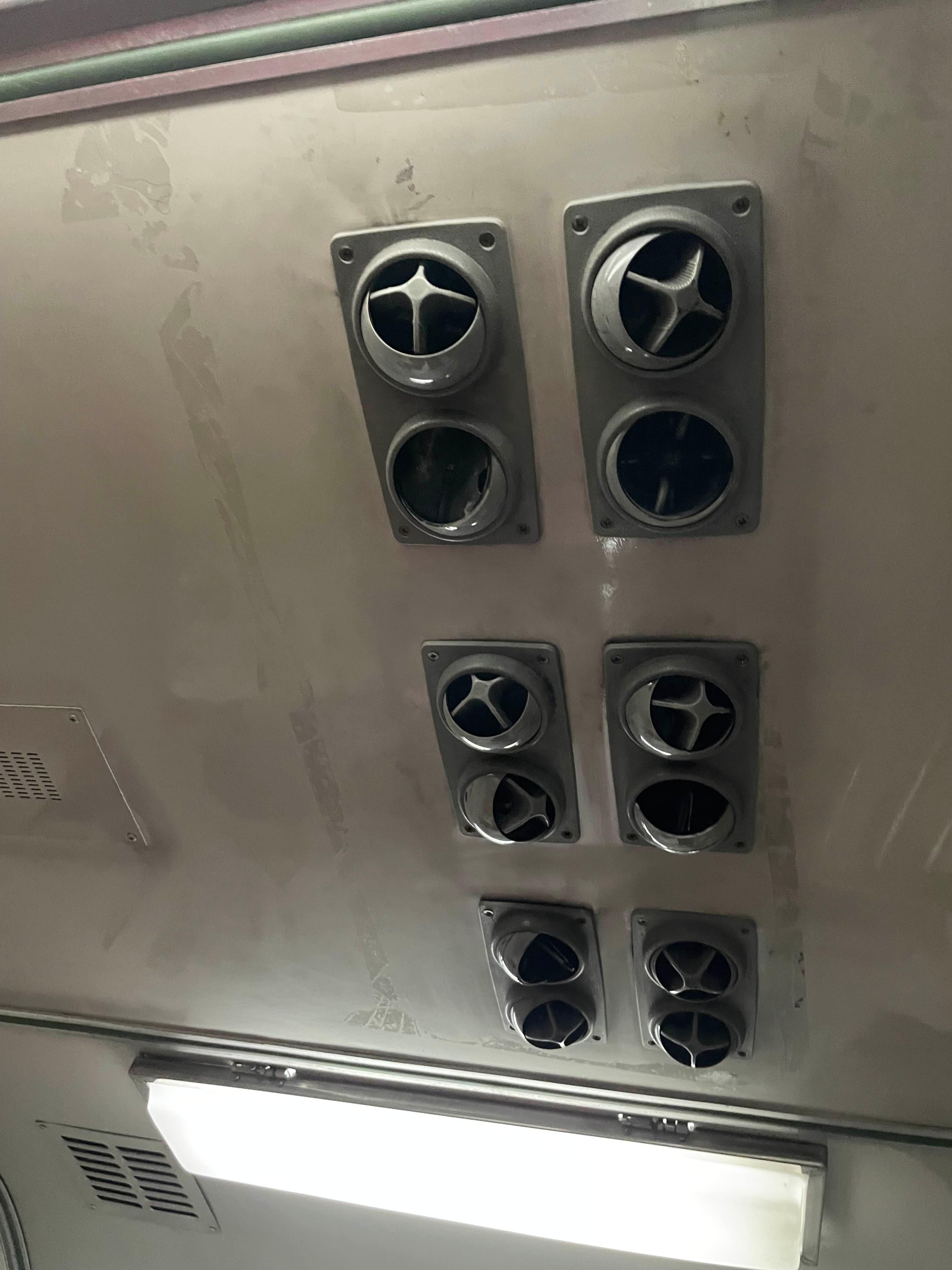 앗!! 그리고... 나만 에어컨 바람이 강하다고 느낀 게 아닌 것 같다. 기존에 탑승했던 사람들이 통풍구 주변에 테이프 자리가 있는 거 보면, 바람이 강해서 테이프로 막은 흔적들이...