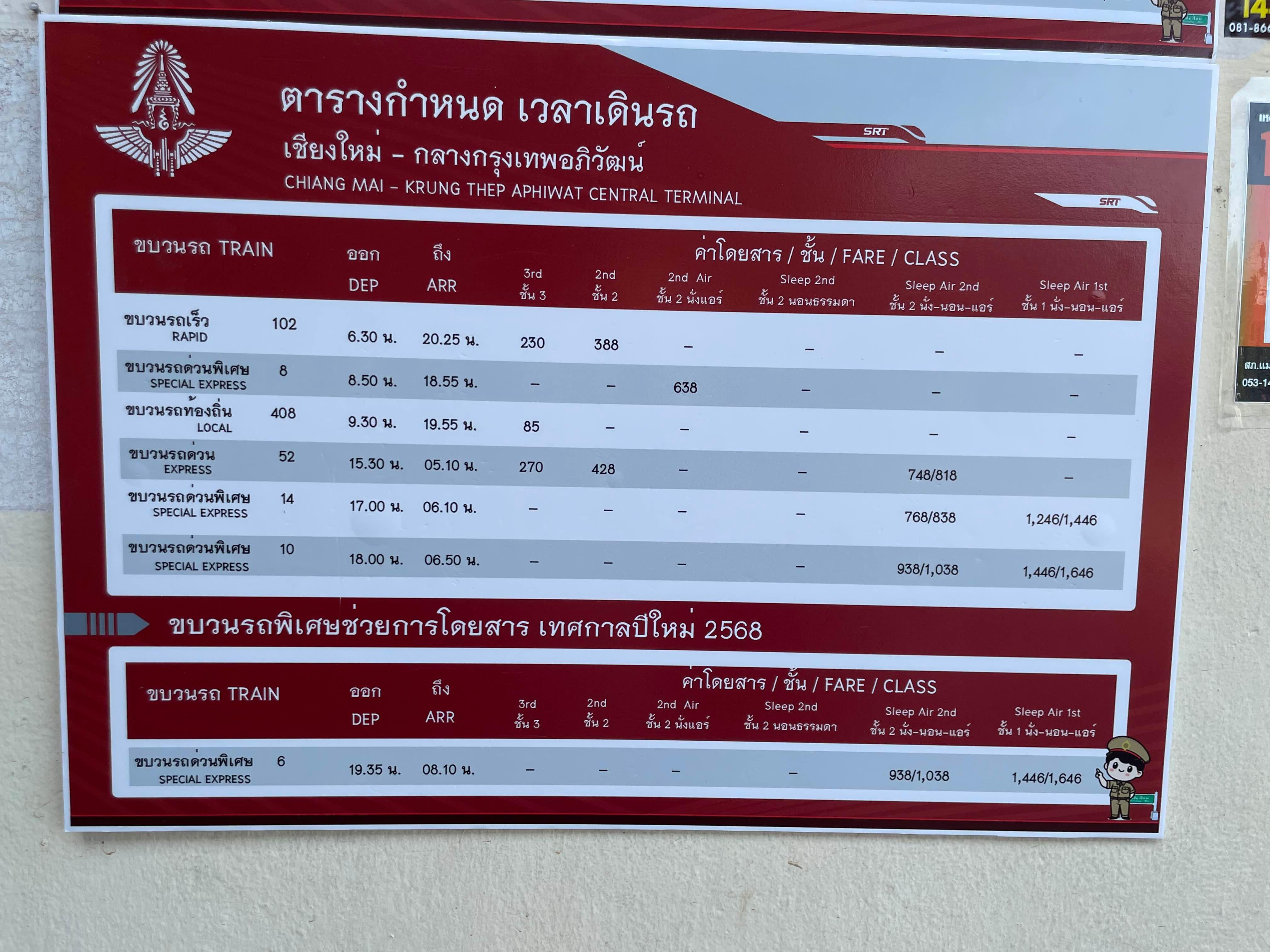 방콕에서 치앙마이로 이동하는 기차 편!!