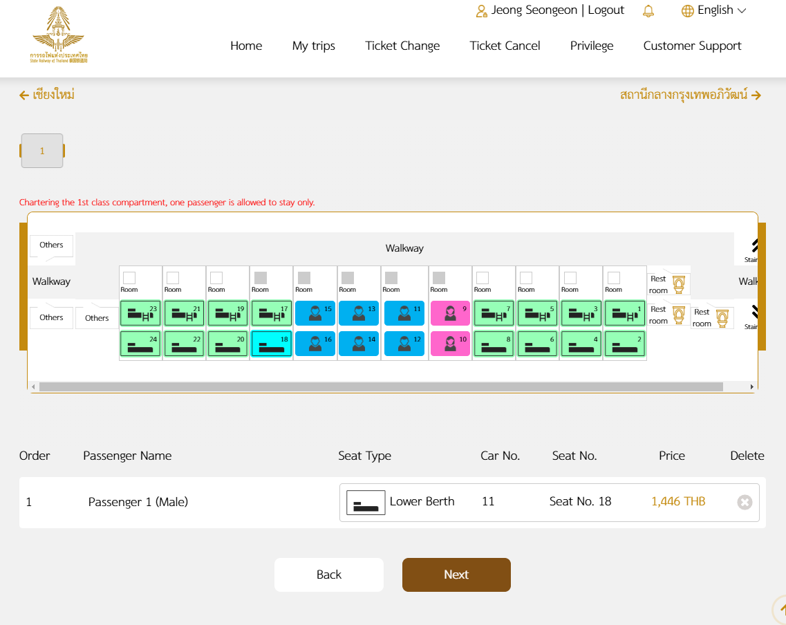 1등석은 1칸만 운행한다. 그리고, 평소에는 좌석으로 이용하고... 저녁에는 침실로 개조하는 2등석은... 대략 3~4칸 정도 운행하는 거 같다.