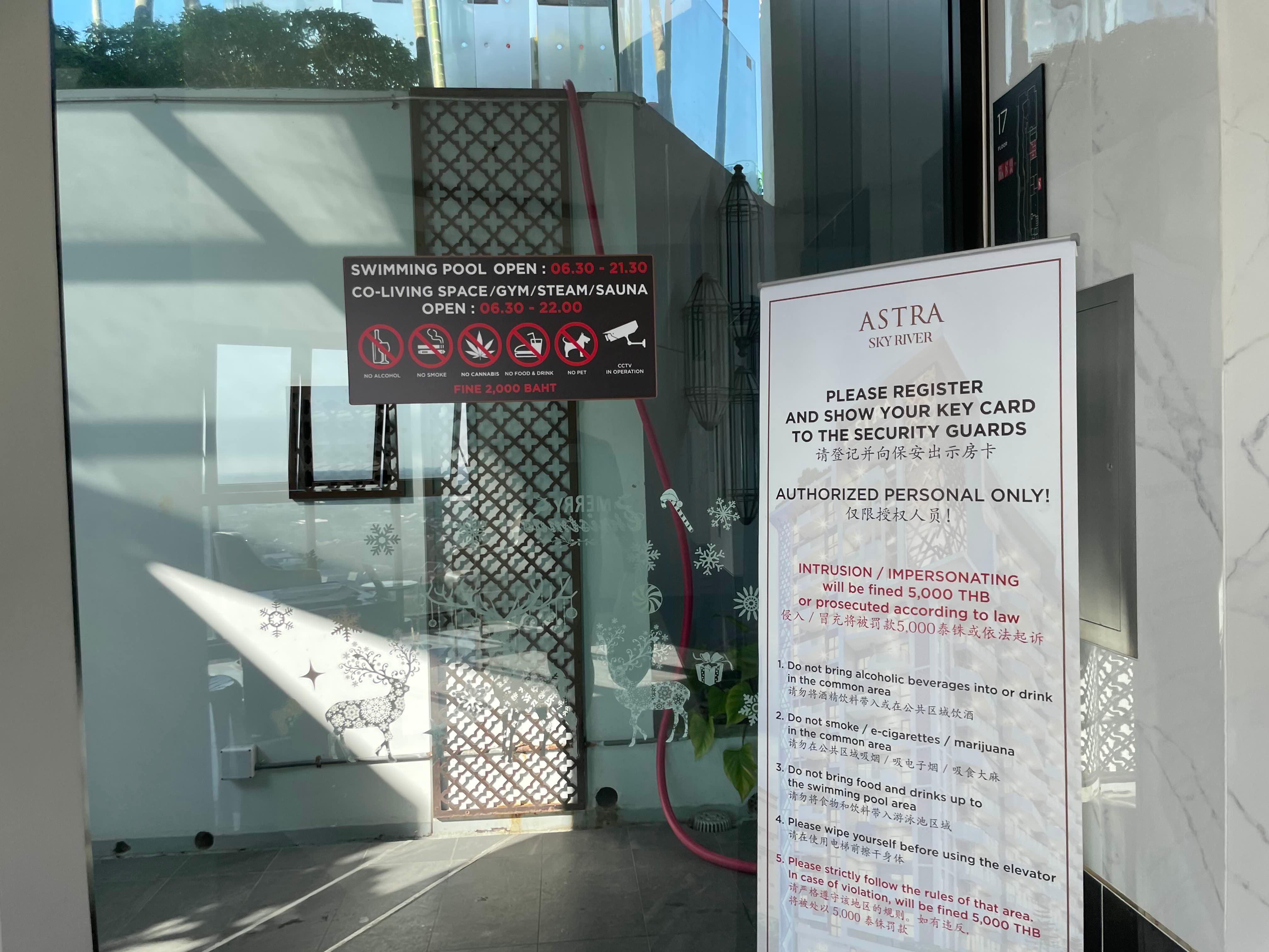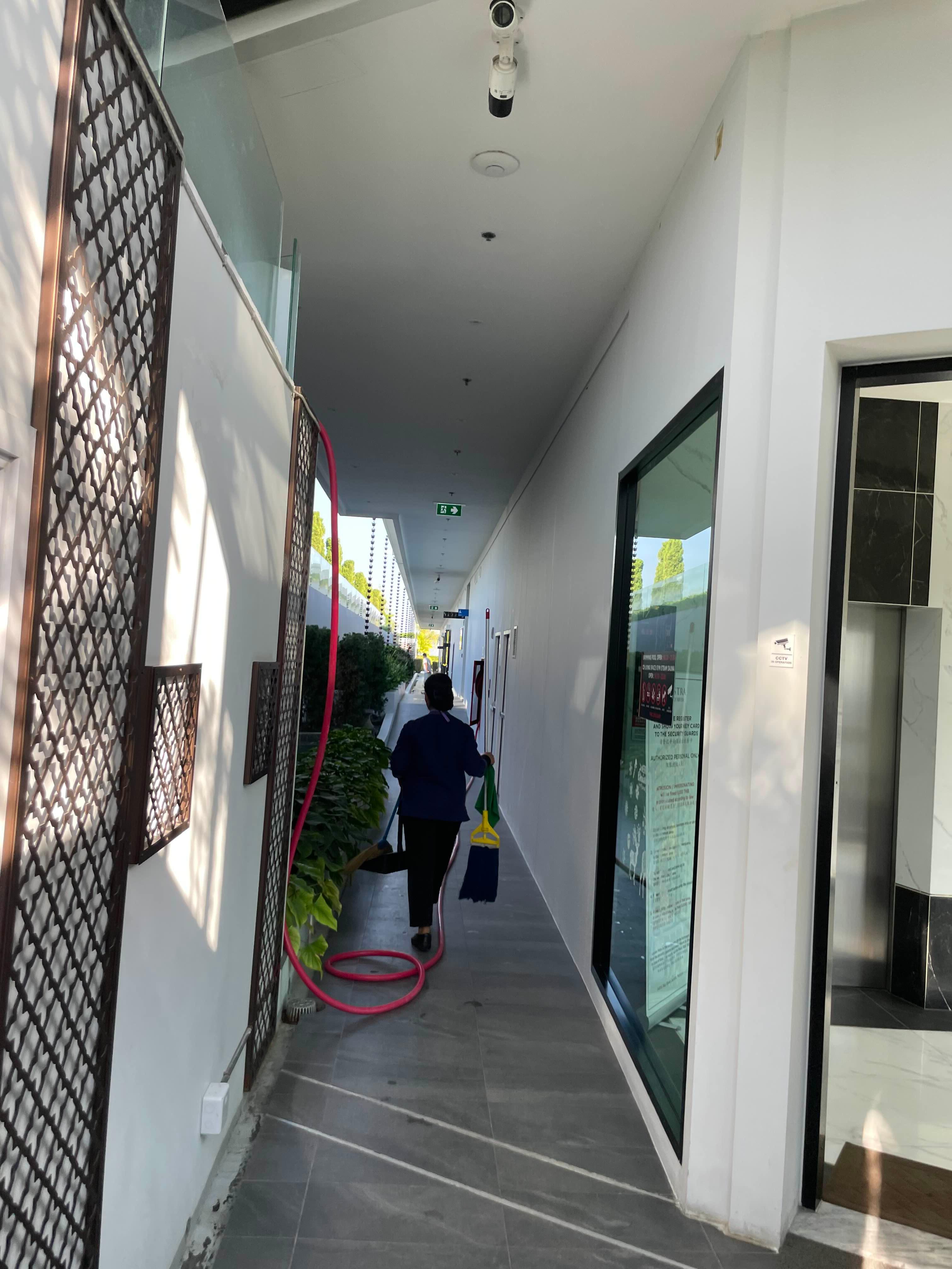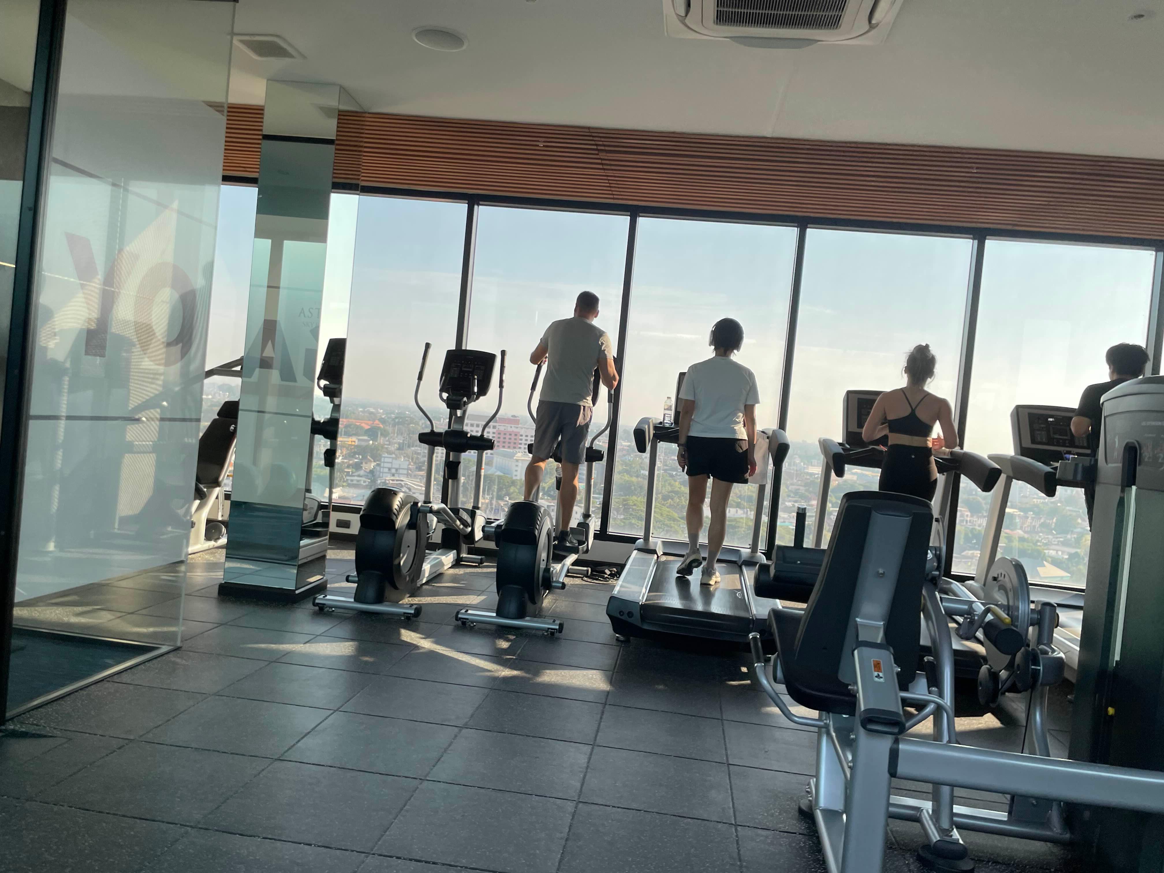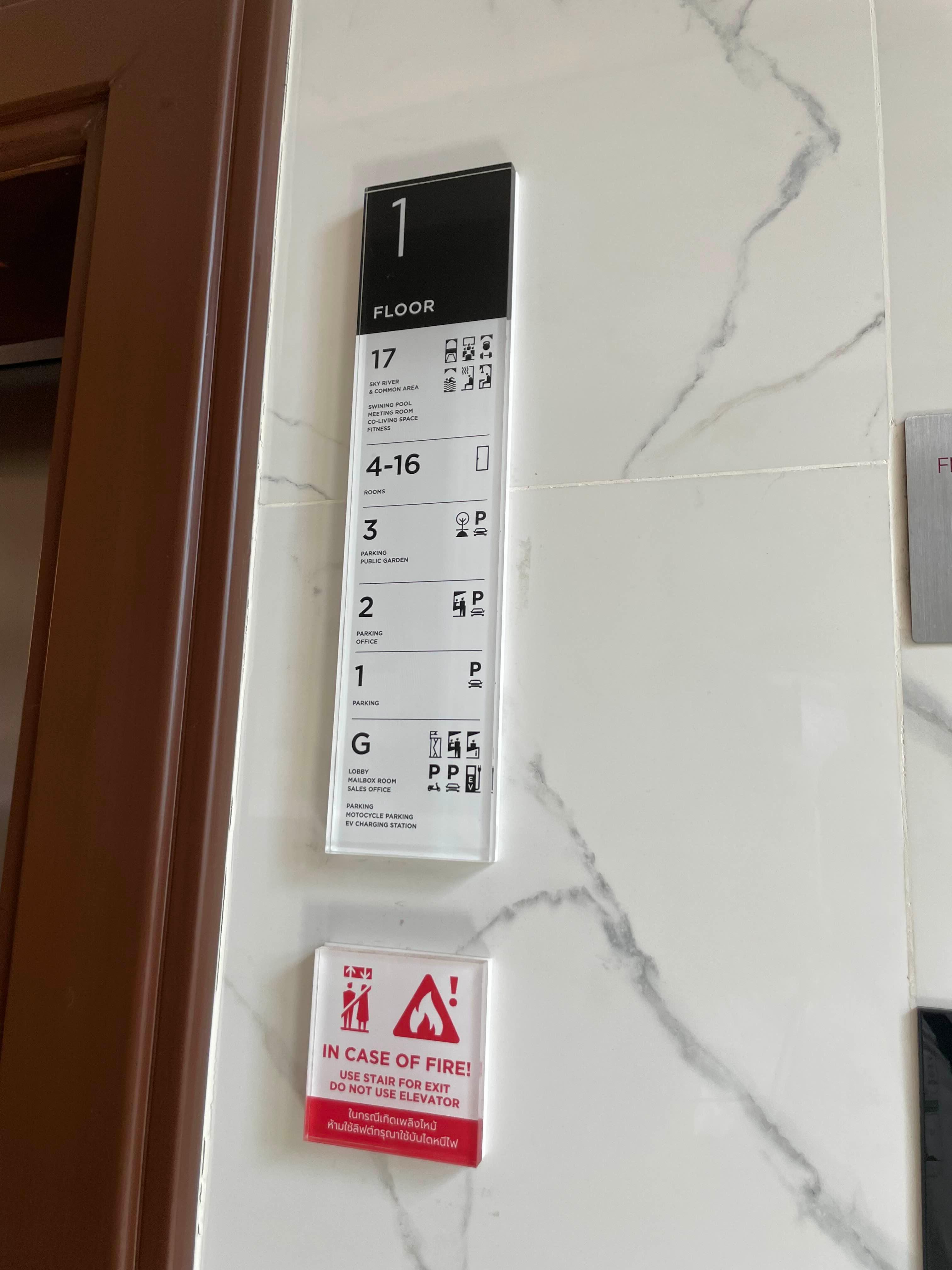 숙소는 G층은 로비와 주차장이고 1~3층은 주차장 그리고 4~16층은 객실, 마지막 17층은 공용공간으로 수영장, 헬스장, 사우나 등이 있다.