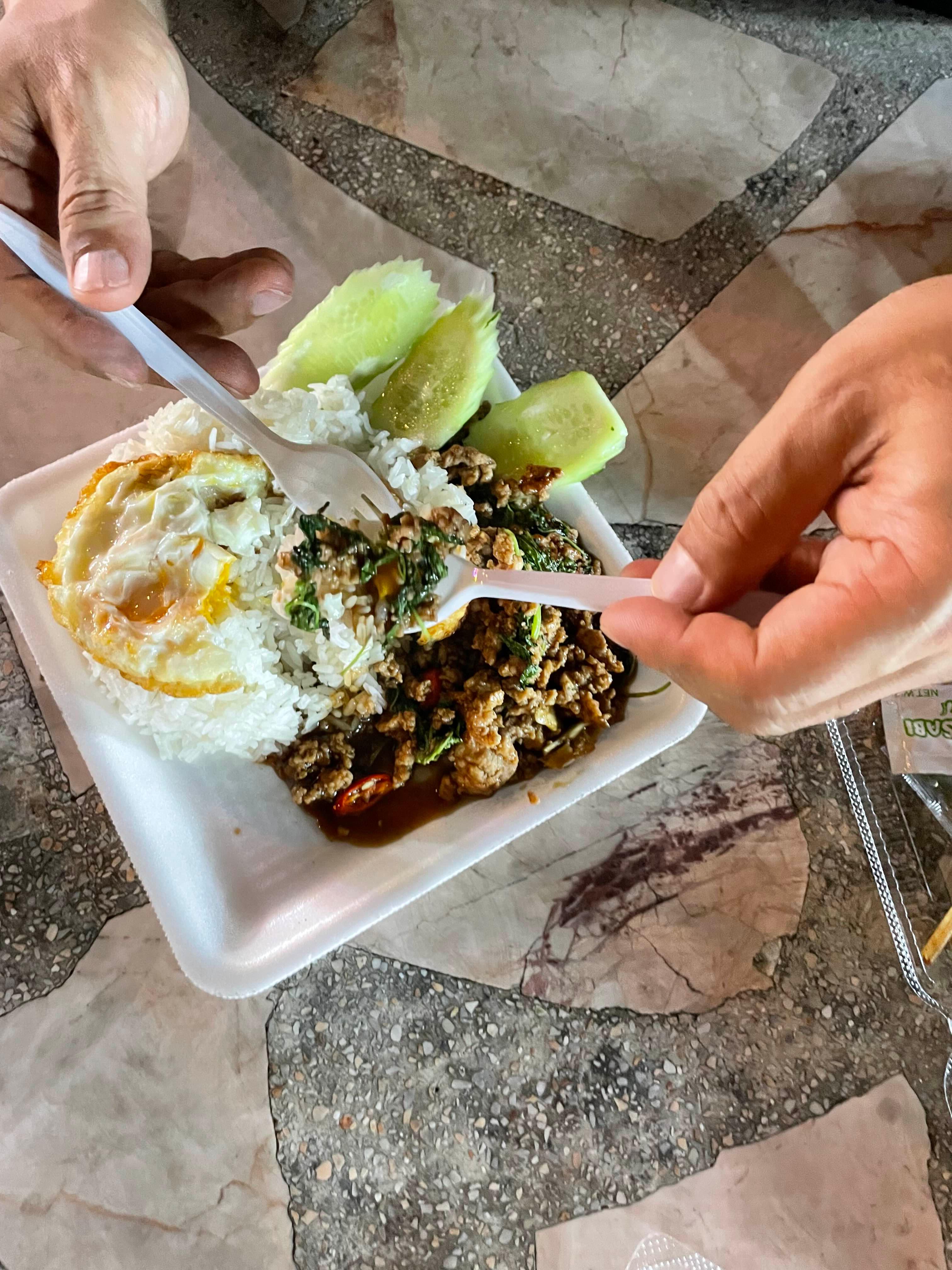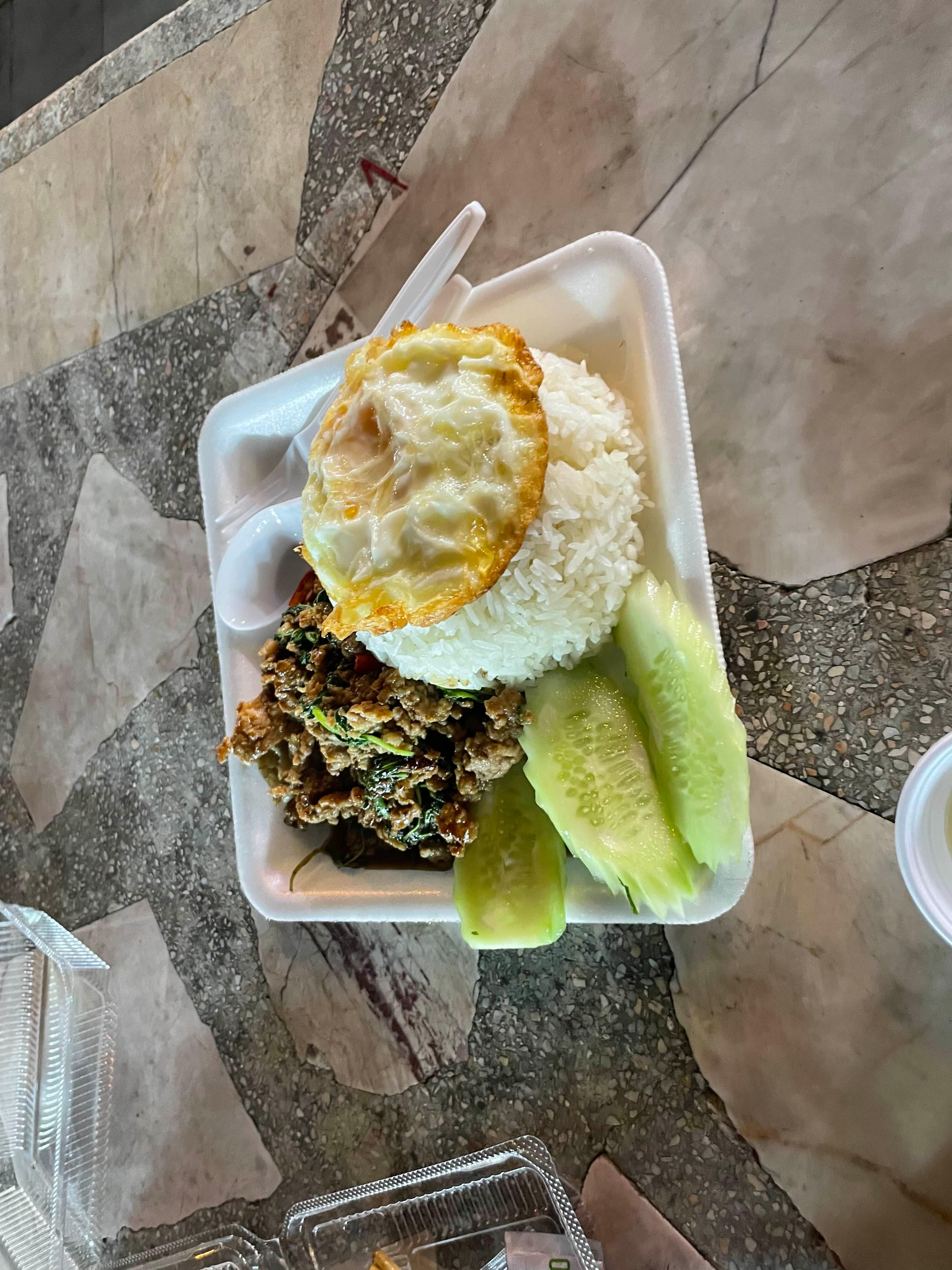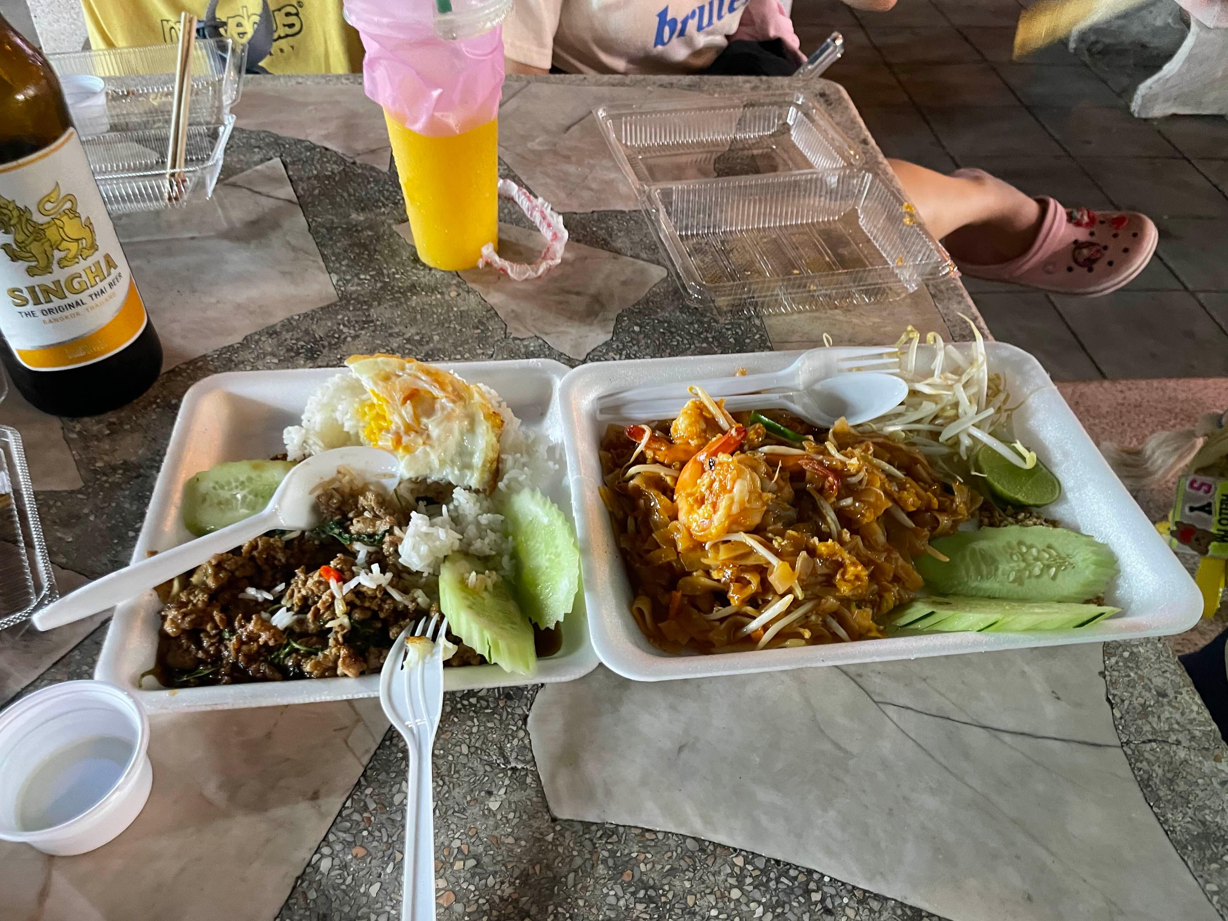 팟끄라파오 무쌉으로 돼지고기 덮밥에 팟타이 하나씩 주문해 보았다.