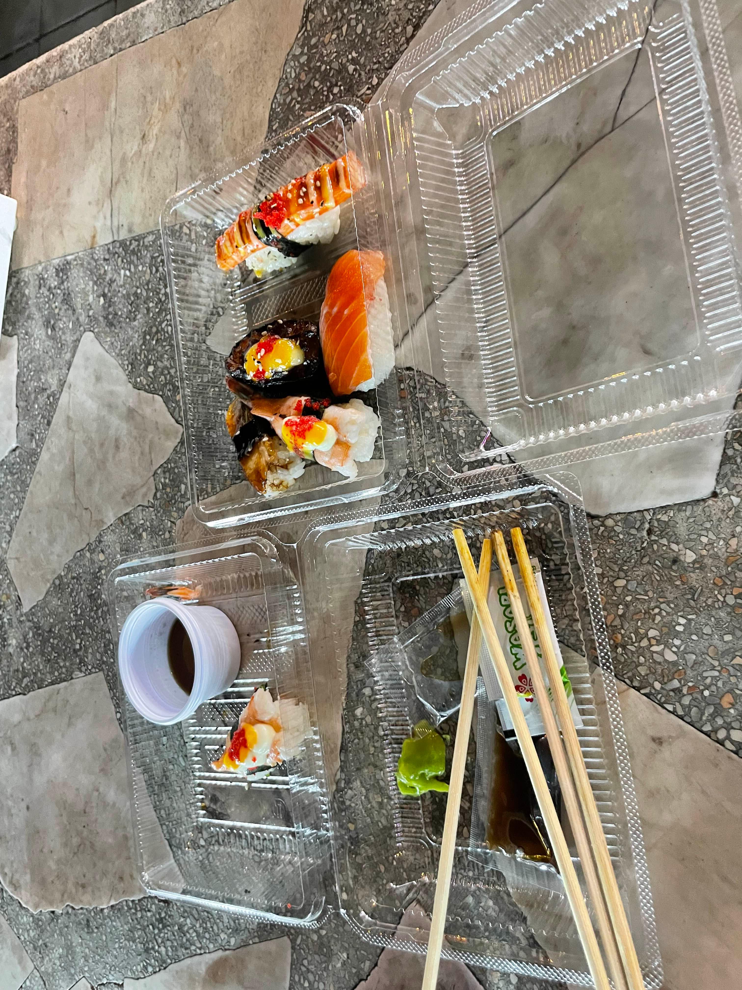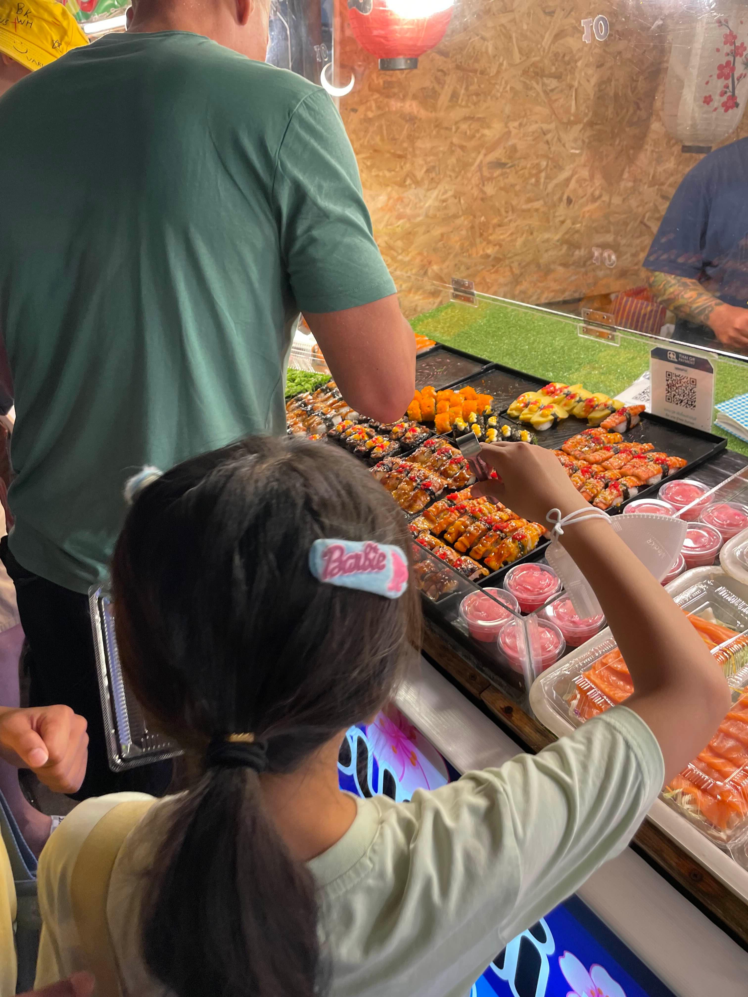 아이들이 좋아하는 초밥으로 몇 개 담고~