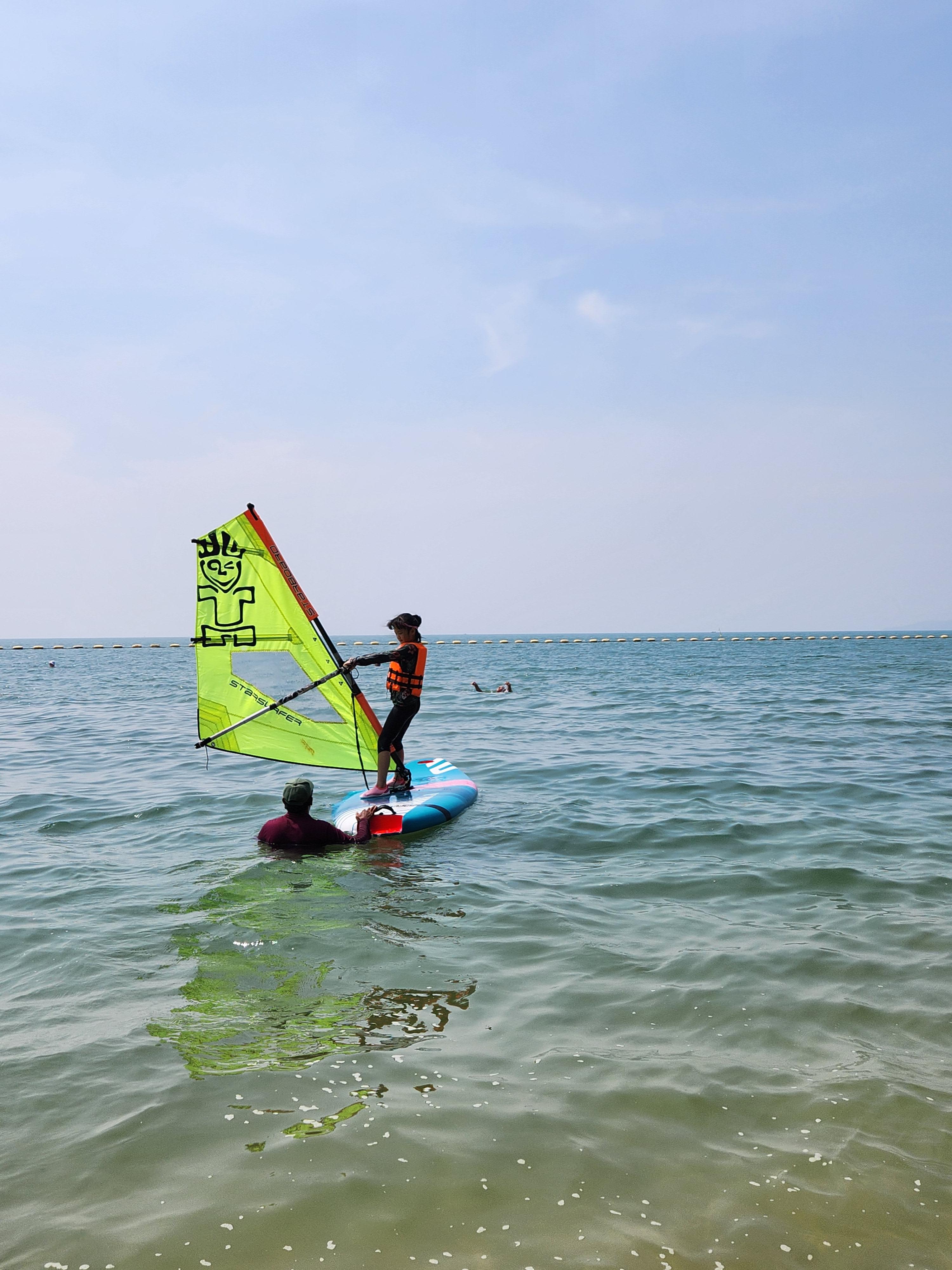 우리는 아이들 2명에 나까지 총 3명 윈드서핑!!