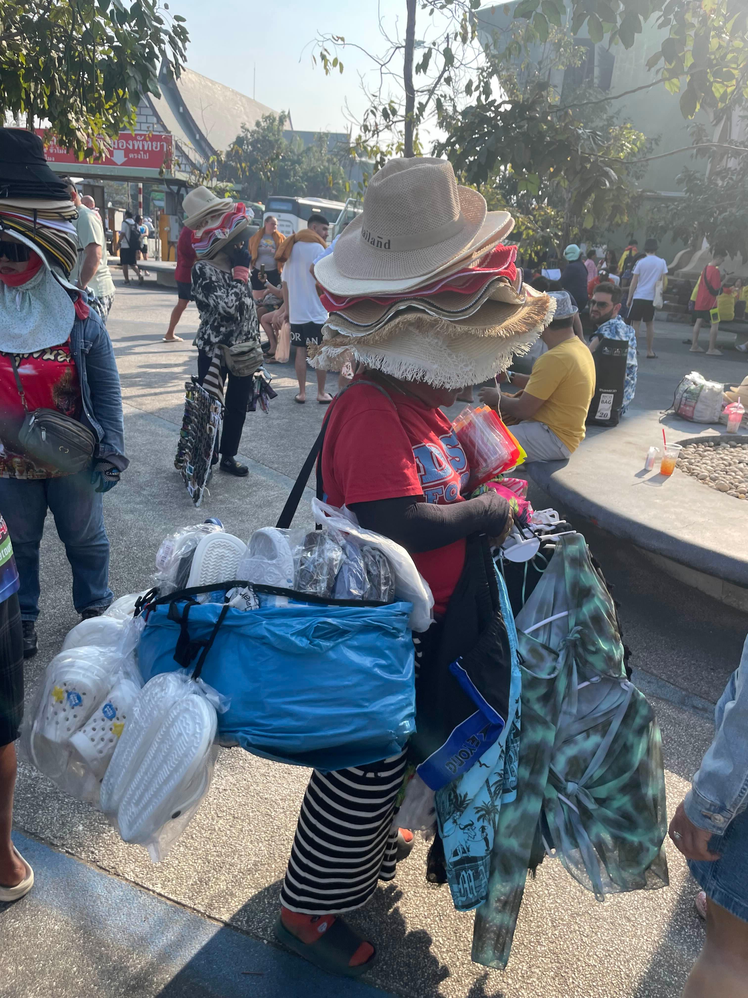 샌들과 모자를 판매하는 상인분! 모자를 물어보니... 300밧, 할인을 요청하니.. 200밧... 구입을 안 한다.