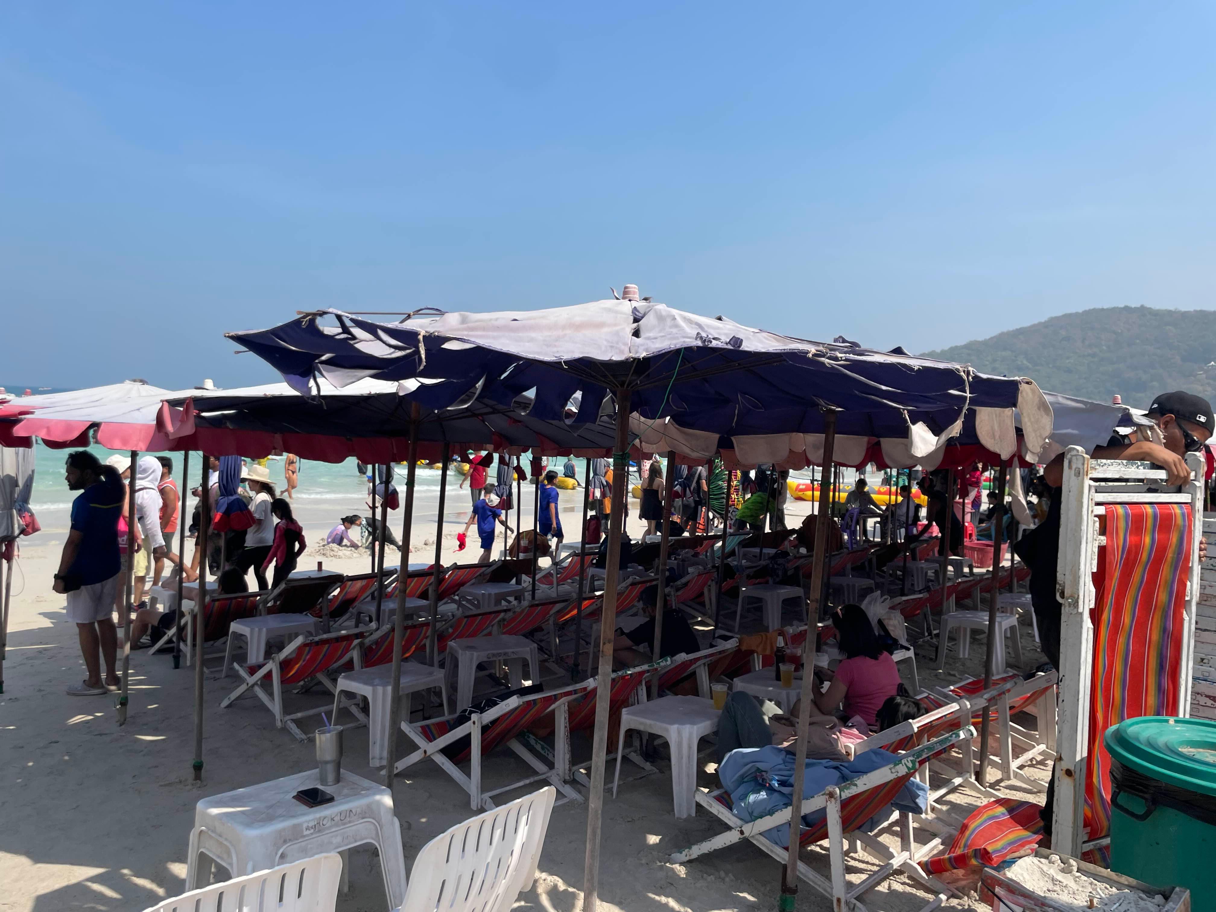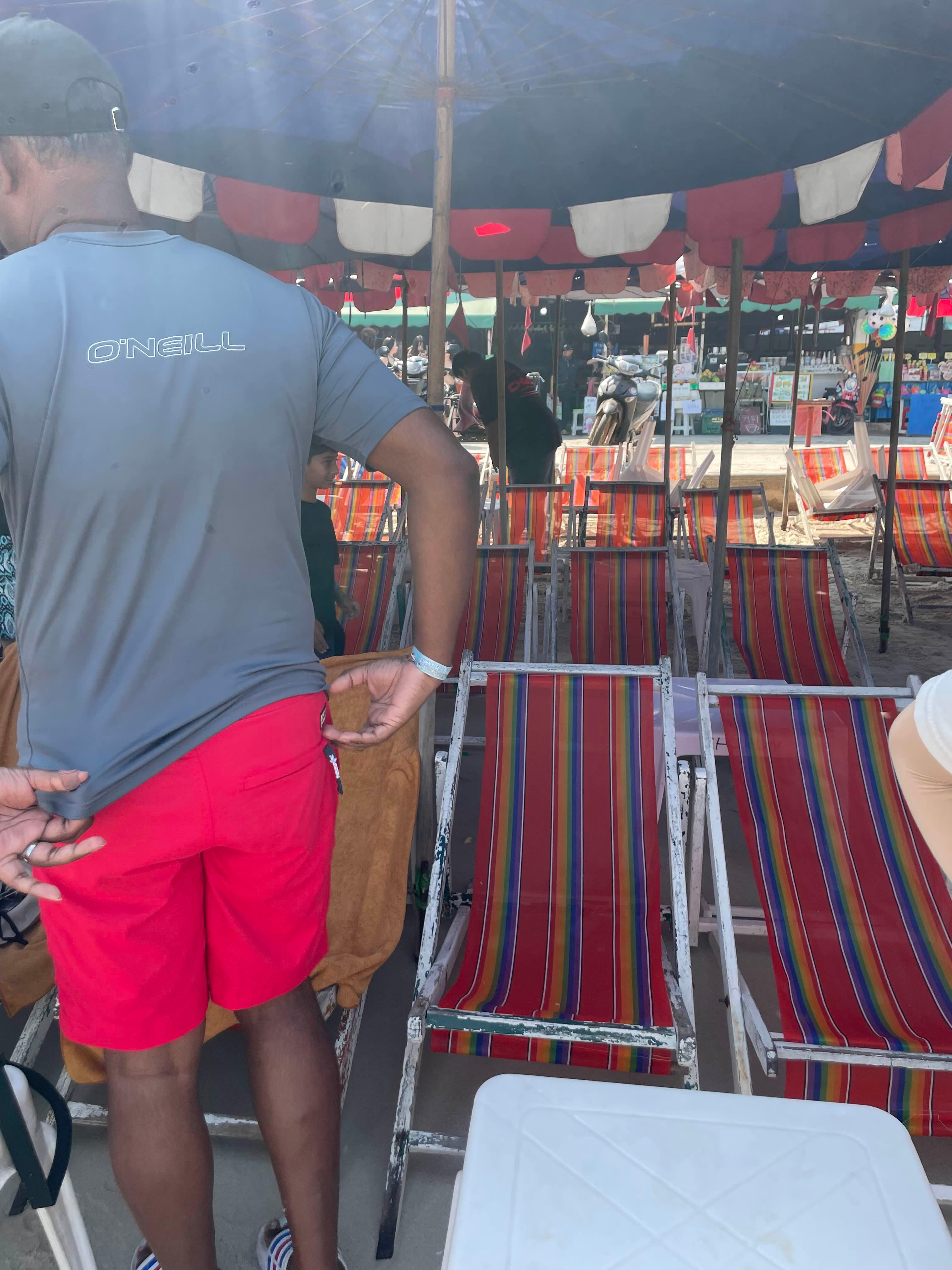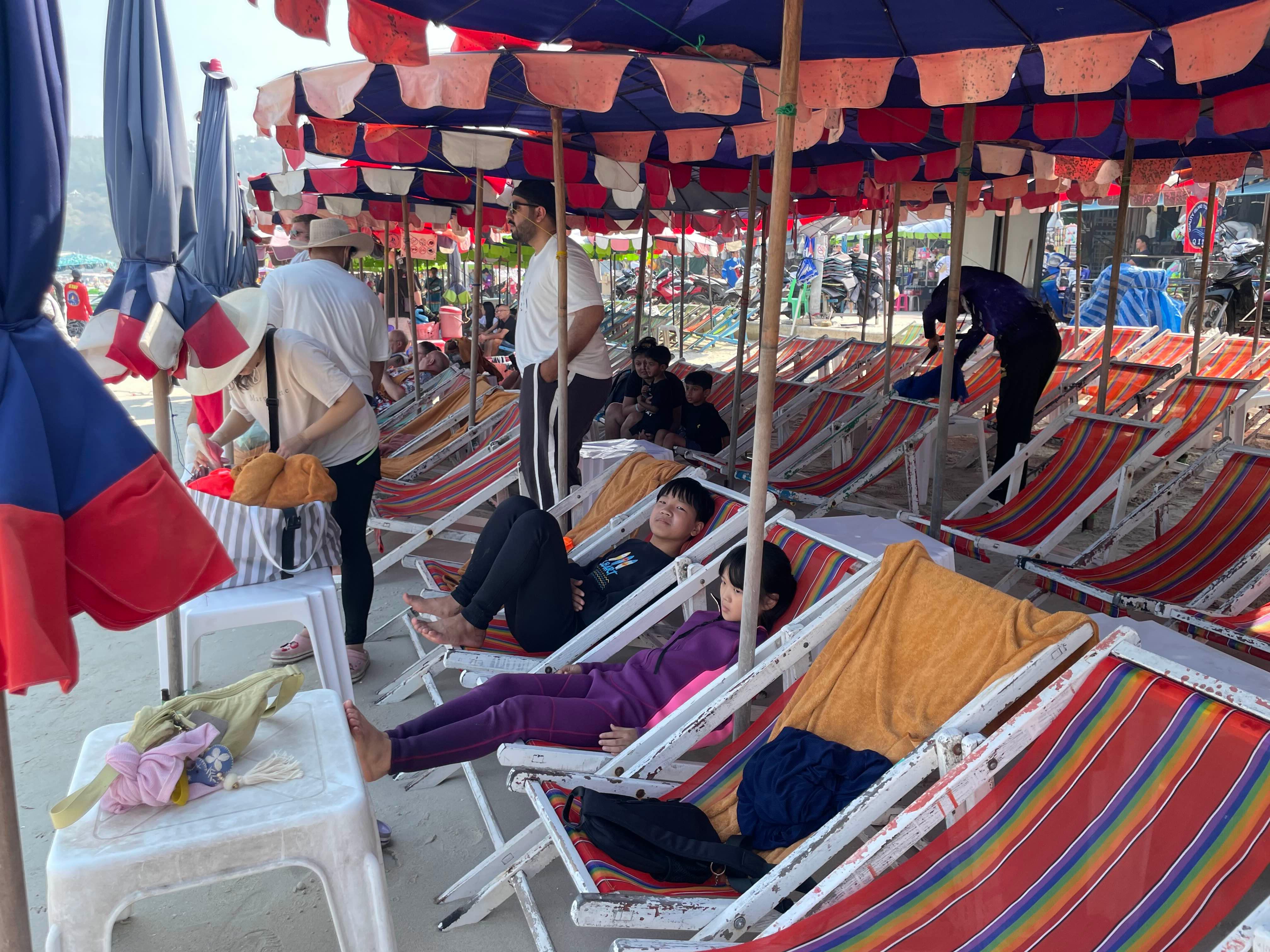 1인 1선 배드가 지급된다. 우리는 해변의 바로 앞으로 자리를 잡고서!!