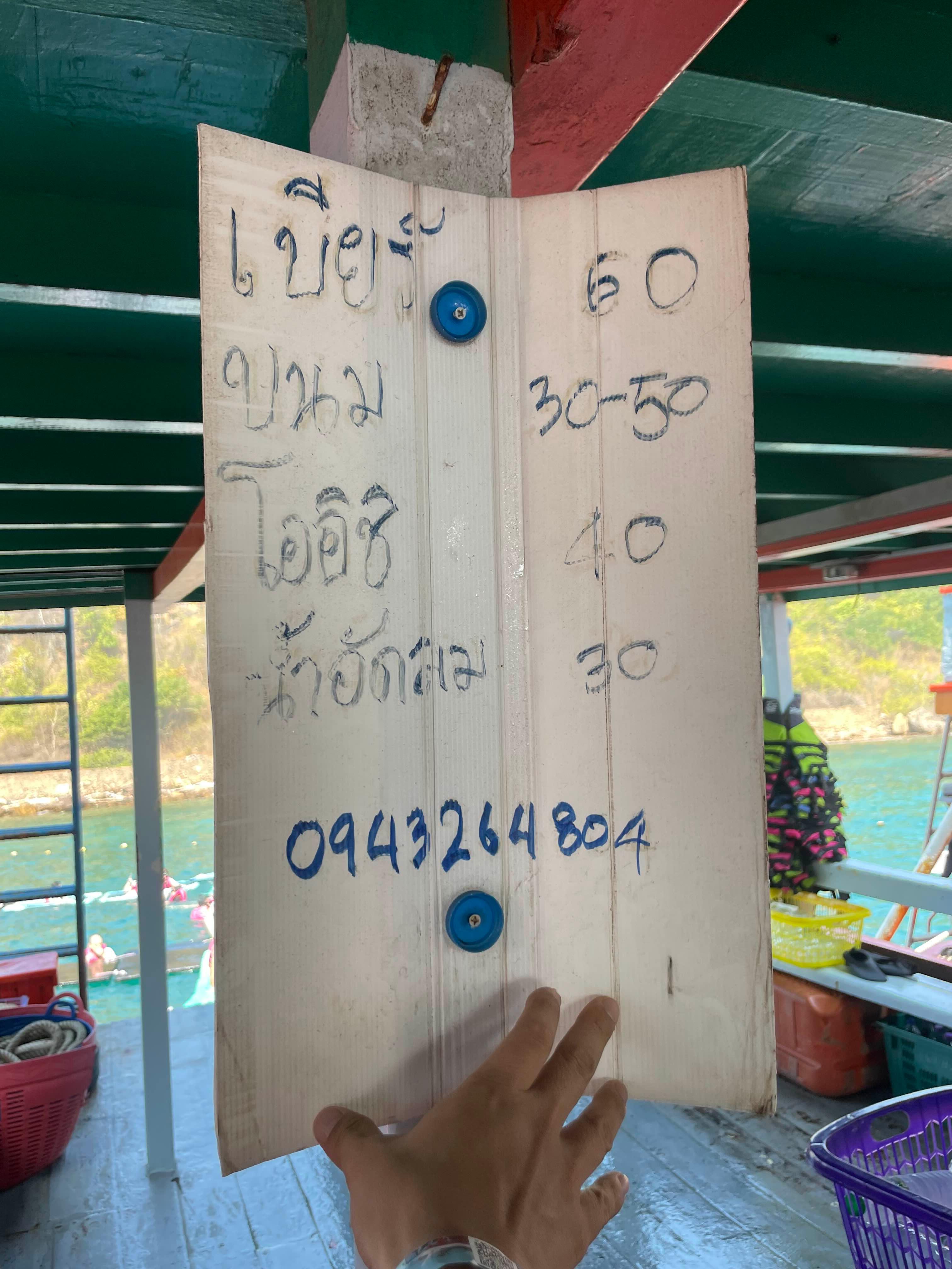 섬에 들어가면 더 비싸다고 한다. 섬에는 500밧?ㅎㅎ 암튼 구입 안 하고~~ 출발!ㅎㅎ